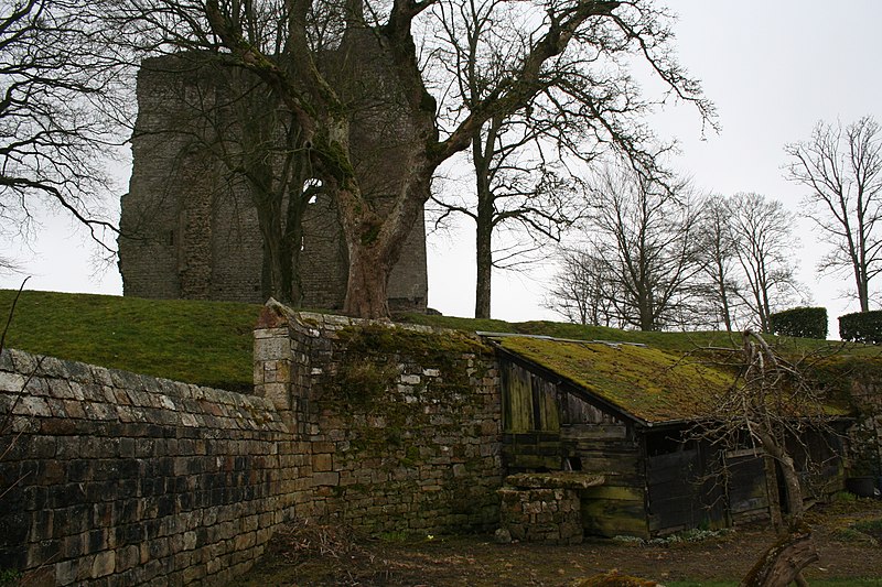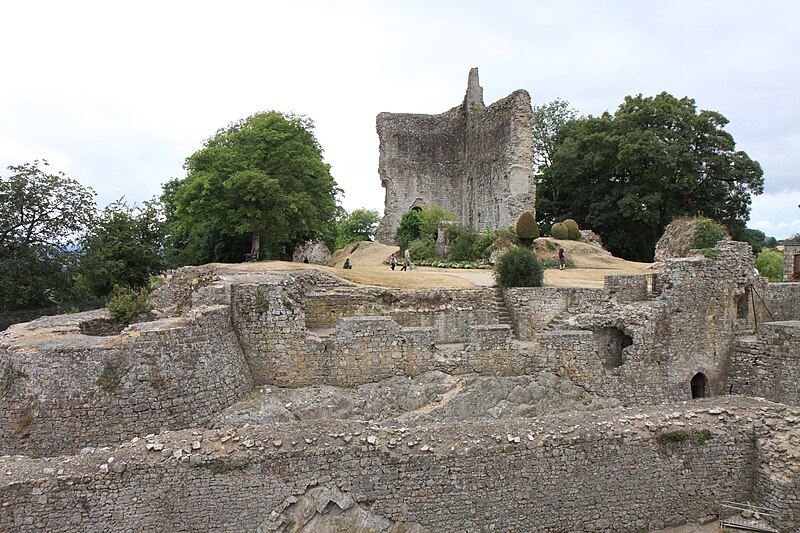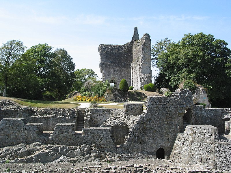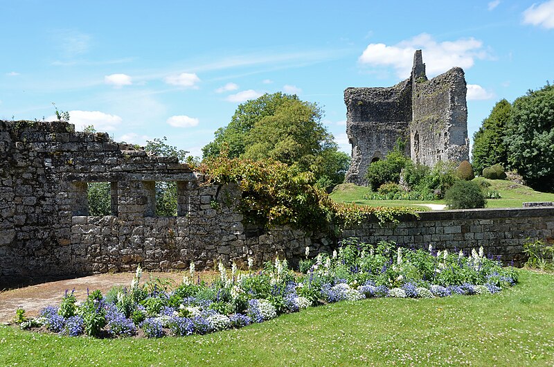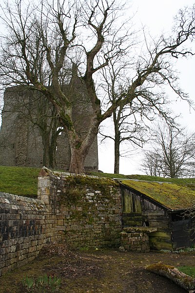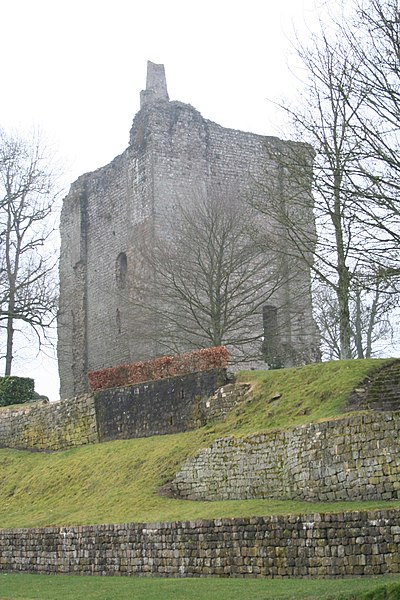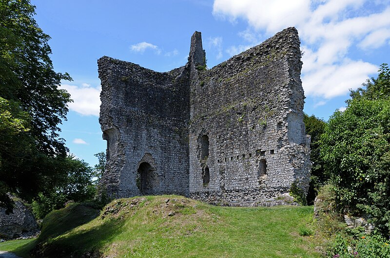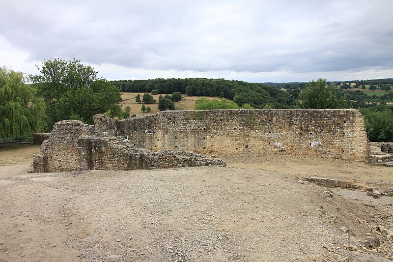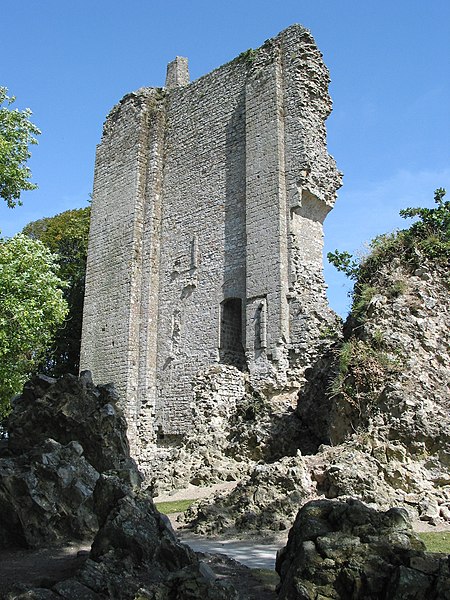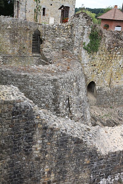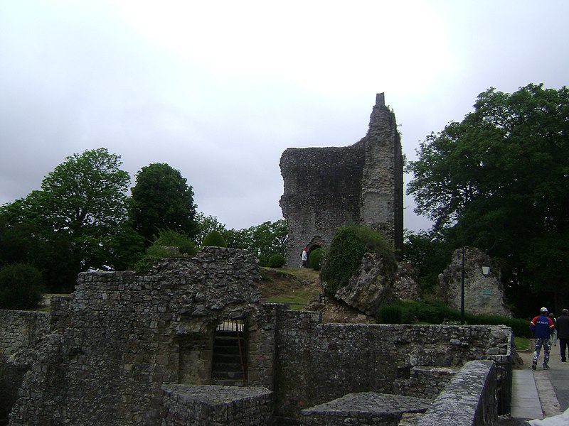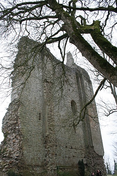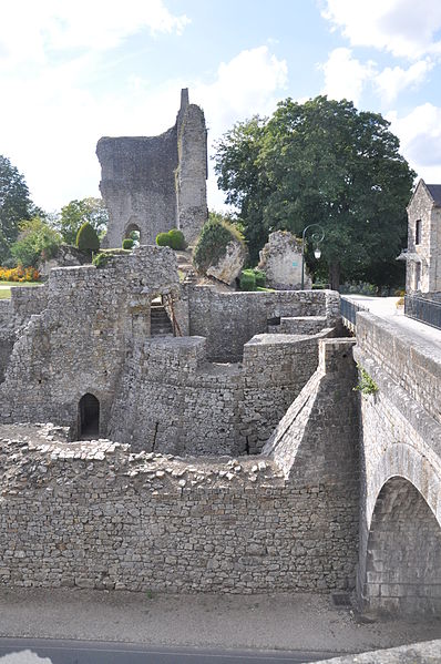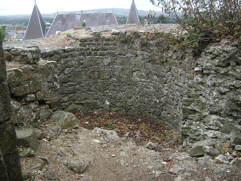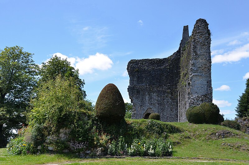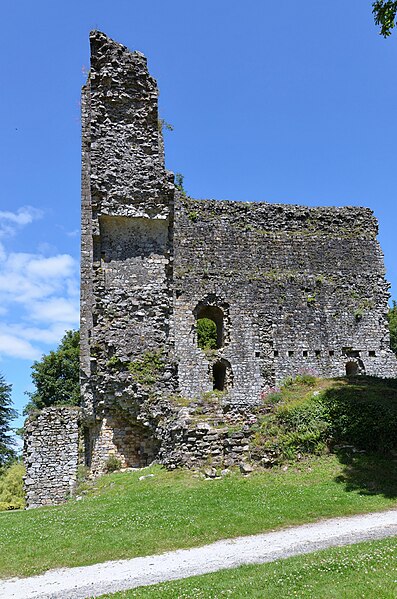 Le château de Domfront, aujourd'hui en ruine, occupe l'extrémité ouest d'une crête de grès dominant la cluse de la Varenne de plus de 70 mètres et commandant les marches méridionales du duché de Normandie. Ses vestiges se dressent sur le territoire de l'ancienne commune de Domfront, dans le département de l'Orne, au sein d'un parc public libre d'accès situé à 400 mètres au nord‑ouest de l'église Saint‑Julien. Au début du XIe siècle fut édifiée une première fortification principalement en bois, qui attira les populations voisines et favorisa la fondation de la ville. Le donjon, reconstruit vers 1120 et élevé en grand appareil roman, forma l'un des plus imposants de Normandie ; il subsiste aujourd'hui deux pans nord et est, conservés sur une hauteur de vingt‑huit mètres avec des murs d'environ trois mètres d'épaisseur. À proximité subsistent les restes d'une chapelle castrale de style roman, la chapelle priorale Saint‑Symphorien, ruinée probablement lors du démantèlement du château. Entre 1289 et 1304, Robert II d'Artois fit édifier les murailles, le pont‑levis et l'essentiel des casemates ; l'enceinte est comprend notamment deux tours du XIe siècle, un chemin casematé, deux tours polygonales formant la tête du pont‑levis et un fossé. Un tronçon du mur d'enceinte nord est conservé avec une tour, une poterne pourvue d'un mâchicoulis, une bretèche, un fossé et le rempart qui reliait l'ensemble à l'enceinte urbaine. Le château a été l'enjeu d'innombrables luttes : il a subi treize sièges au cours de son histoire, impliquant des acteurs tels que Geoffroy Martel, Guillaume le Conquérant, Henri Beauclerc, Philippe Auguste, des troupes bourguignonnes et anglaises, ainsi que des factions protestantes. Propriété de seigneurs normands puis des Plantagenêt, il fut lié à des personnages illustres — Aliénor d'Aquitaine y séjourna et y reçut Domfront en douaire, Aliénor de Castille y naquit, et Henri II y tint des assemblées et remania la place. En 1204, dans le cadre de l'annexion de la Normandie, Domfront passa aux mains de Philippe Auguste puis connut plusieurs changements de seigneurie entre familles royales et seigneuries locales. Des rénovations au XIVe siècle renforcèrent la forteresse, qui résista notamment aux attaques du duc de Bourgogne en 1412. Au cours des guerres de Religion, le donjon fut brièvement pris par des capitaines protestants puis repris après bombardement ; Gabriel Ier de Montgommery s'y rendit en 1574 et fut ensuite livré à la justice royale. Henri IV imposa des démolitions et Sully ordonna le démantèlement du château en 1608, démolition qui fut réalisée en 1610. Le site comporte, autour du donjon, les vestiges d'un logis et des casemates souterraines du XIIIe siècle, ainsi que les restes de l'enceinte de la citadelle flanquée de tours qui dominait le fossé séparant le château de la ville. Les ruines font l'objet de restaurations menées depuis 1984 par l'Association pour la restauration du château de Domfront. Les ruines du donjon sont classées au titre des monuments historiques (liste de 1875) et l'enceinte avec ses remparts, tours, bretèches, casemates et les chapelles Sainte‑Catherine et Saint‑Symphorien est protégée par arrêté du 18 février 1986 ; l'enceinte de la ville bénéficie d'un classement distinct par arrêté du 13 octobre 1988.