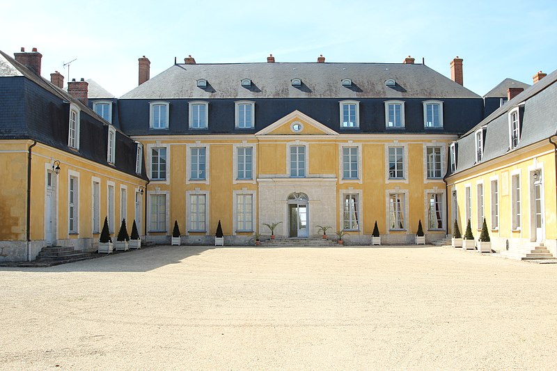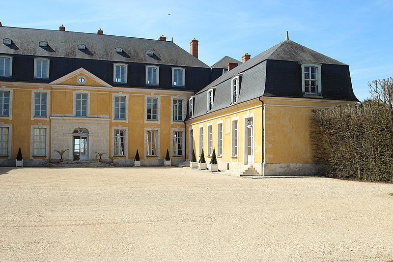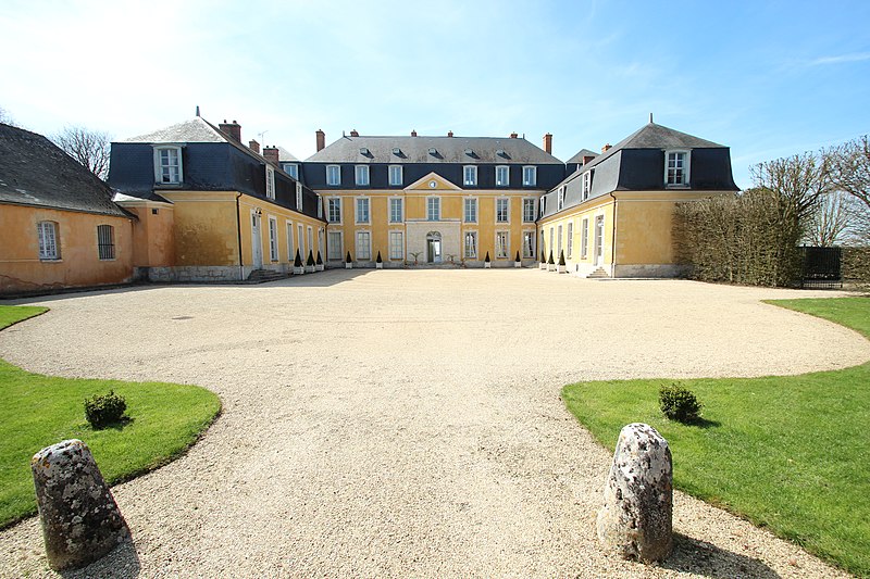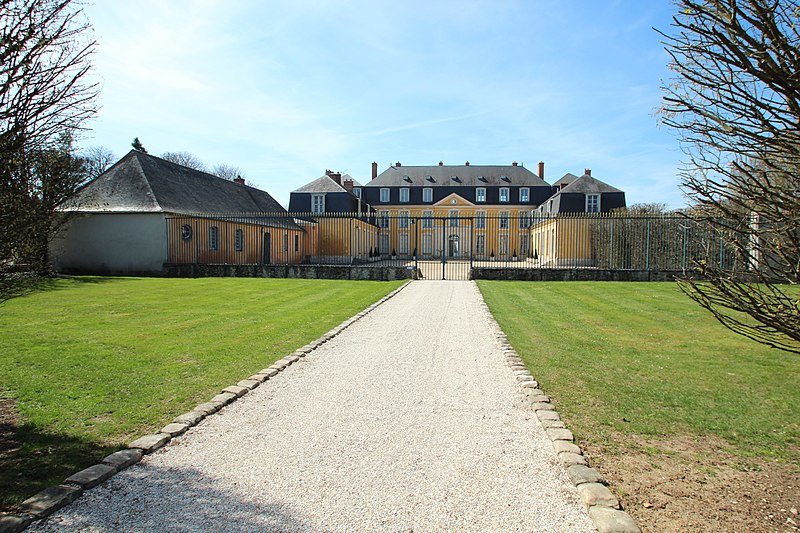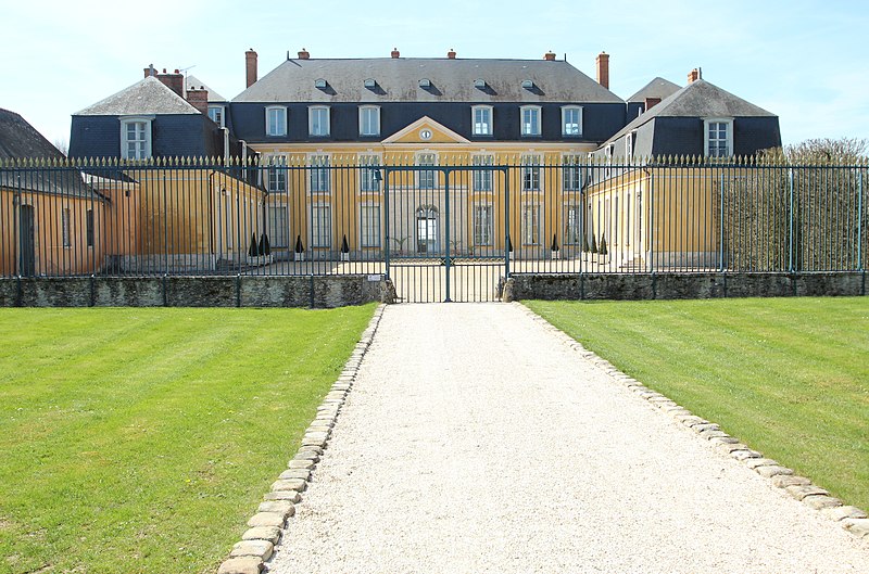 Le château de Dommerville est situé à Angerville, à soixante-six kilomètres au sud-ouest de Paris, dans le département de l'Essonne en Île-de-France. Il a été construit entre 1777 et 1782. Édifié pour le marquis Charles Philippe Louis de Hallot (1709-?), lieutenant général des armées du roi, il passe en 1789 à sa cousine, la comtesse de Valon, puis au fils de celle-ci. En 1807, la propriété appartient à Donatien-Marie-Joseph de Rochambeau (1755-1813), général de l'armée napoléonienne, puis en 1810 au comte Jean-François de Ferrières de Sauvebœuf, avant d'être transmis à son fils Louis Adolphe. En 1869, un cultivateur transforme le château en ferme. Didier Poisson en devient propriétaire en 1963, puis la SCI de Dommerville prend la suite en 2002. Inscrit à l'inventaire des monuments historiques depuis le 28 mars 1977, le château a fait l'objet d'une importante restauration entre 1995 et 1999 : le second étage, sous les combles mansardés et disparu depuis plus d'un siècle, y a été restitué à l'initiative de Didier Poisson, puis les travaux se sont poursuivis sous le propriétaire suivant. Le château est aujourd'hui habitable et est loué pour des réceptions privées, principalement des mariages. Des ressources complémentaires sont disponibles dans la base Mérimée, sur le site de la mairie d'Angerville et sur le site officiel de la SCI du château.
