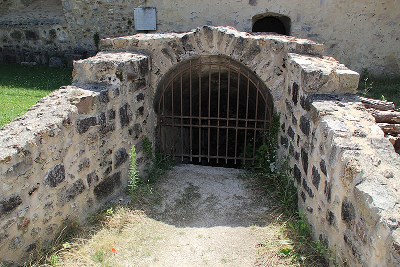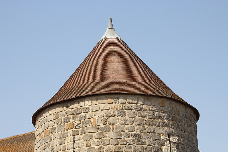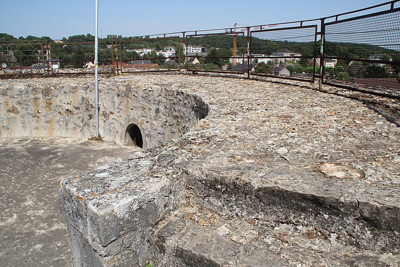 Ce donjon était entouré d'un fossé annulaire et desservi par deux ponts‑levis ; le premier étage abritait une salle commune circulaire de six mètres de diamètre sous une voûte à croisée d'ogives haute de 8,45 mètres. Cette salle disposait d'une cheminée à pilastre, d'un four, d'un moulin à bras et d'un puits profond de 10,50 mètres, et pouvait être divisée par un plancher pour doubler la surface destinée à la garnison. Un escalier rampant intégré à la muraille menait à une chambre supérieure voûtée et munie d'une cheminée, puis un escalier en vis conduisait à une salle de guet et aux combles surmontés d'un clocher.