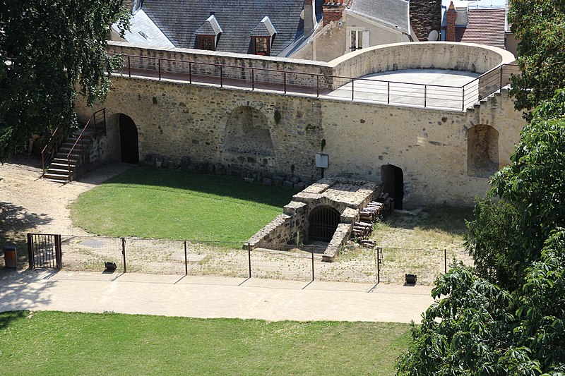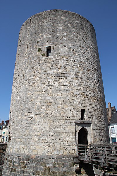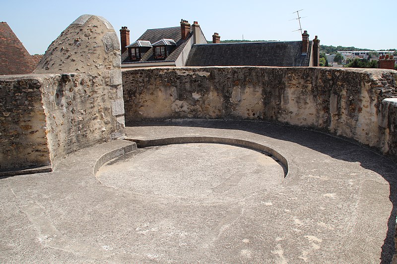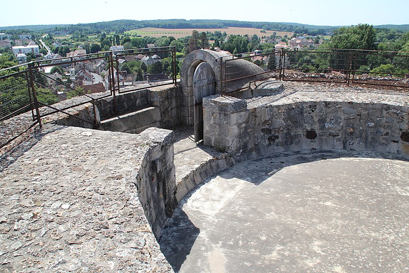 Les courtines, épaisses de 3,75 mètres et hautes d'environ dix mètres, protégeaient la cour intérieure où se trouvaient une chapelle dédiée à Jean‑Baptiste, un logis en U et une terrasse couverte à l'est. Le donjon, pièce maîtresse élevé par Philippe Auguste autour de 1220, avait à l'origine environ trente mètres de hauteur depuis le fond des fossés, un diamètre de treize mètres soixante et des murs de 3,75 mètres d'épaisseur. Aujourd'hui sa hauteur est d'environ vingt‑cinq mètres depuis les fossés et dix‑huit mètres depuis la cour ; ses soubassements sont en grès taillé et l'assise en calcaire de Beauce.