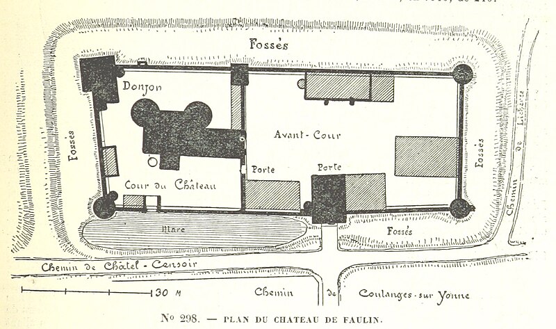 Le domaine du château de Faulin, situé au pied d'une colline boisée à Lichères-sur-Yonne (Yonne), comprend le château et sa basse-cour ceints par une enceinte rectangulaire. Cette enceinte, d'environ 90 m sur 32 m et autrefois entourée de fossés, est cantonnée de trois tours circulaires, d'un donjon et d'une tour‑escalier de plan carré. La partie droite forme la basse‑cour, accessible par une poterne munie d'un pont‑levis et de machicoulis, et abrite plusieurs communs. La partie gauche, à peu près carrée, est défendue par un haut donjon carré flanqué d'une guette et par une tour ronde qui protège une ancienne poterne murée du côté de la vallée. Au centre de la cour noble se trouve le petit logis seigneurial, autrefois isolé, composé d'un corps de logis défendu par deux grosses tours rondes côté colline et d'une tourelle carrée renfermant l'escalier sur l'autre face. Les baies, divisées par des croisées de pierre, présentent de fines moulures et plusieurs ouvertures du rez‑de‑chaussée ont conservé des barreaux de fer extérieurs terminés par des tiges imitant des fleurs de lys. On remarque aussi plusieurs cheminées aux modénatures variées, la vis de l'escalier et une chapelle voûtée dans l'une des deux grosses tours. À l'intérieur, les cheminées se distinguent par leur qualité et la plupart des pièces conservent des plafonds à solives. Dans la tour, la chapelle offre un décor peint du début du XVIIe siècle consacré à l'enfance du Christ — annonciation, nativité, adoration des mages, présentation au temple — ainsi qu'au couronnement de la Vierge. Le château a gardé une partie du chemin de ronde qui conduit au donjon et la poterne porte la date de 1577. Le domaine, très intact, comprend des dépendances des XVIIe et XVIIIe siècles, des aménagements agricoles du XIXe siècle et un imposant colombier circulaire. Le site est mentionné pour la première fois au XIIIe siècle et appartenait alors aux Ascelin, seigneurs de Châtel‑Censoir. Le château actuel a été édifié à la fin du XVe siècle par la famille Le Bourgoing, originaire du Nivernais et présente sur le lieu depuis son acquisition en 1389 ; une branche, les Le Bourgoing du Faulin, conserva la demeure pendant trois siècles et plusieurs de ses membres occupèrent des charges à la cour des ducs de Nevers. Sous le Second Empire, il appartenait au marquis de Vogué. L'édifice a été classé au titre des monuments historiques en 1993. Le château de Faulin est par ailleurs connu pour apparaître dans le film La Grande Vadrouille.