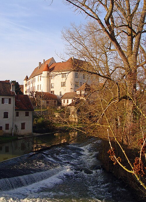 Le château de Fénétrange est situé dans la commune de Fénétrange, dans le département de la Moselle. Au XIXe siècle, son nom apparaît sous les formes « Château de Fenestrange » et « Château de Fénestrange », l'ancien s ayant progressivement disparu. Au Xe siècle, appelé château des Fénétrange-Malberg, il était une forteresse médiévale ceinturée de murs et de fossés. Les fossés pouvaient être remplis par l'eau de la Sarre en cas d'attaque, ce qui lui valut la réputation d'être imprenable. Après la mort de Jean VII de Fénétrange et l'extinction de la maison éponyme, le château passa, en 1467, aux maisons de Moers-Sarrewerden et de Neuchâtel. Il bénéficie d'une protection au titre des monuments historiques : les façades et les toitures sont partiellement inscrites, tandis que la chapelle et l'escalier hélicoïdal sont classés par arrêté du 13 décembre 1982. La cour du château, en forme de fer à cheval, est une des caractéristiques du site et résulte de travaux de reconstruction entrepris en 1766 par Dominique de Frimont. Son pavage reproduit la rosace au sol de la nef de la collégiale Saint-Remy de Fénétrange et porte, au centre, une plaque où figure le blason de la commune surmonté d'une couronne héraldique civile. L'escalier hélicoïdal, logé dans une ancienne tour et de forme en coquille d'escargot, est classé monument historique depuis 1982 et constitue un exemple d'escalier hélicoïdal présenté comme unique en Lorraine. La chapelle castrale, dite chapelle seigneuriale, est un édifice de style gothique élevé en 1584 à l'initiative de Diane de Dommartin et de son époux Charles Philippe de Croÿ, à la suite de la Réforme à Fénétrange.