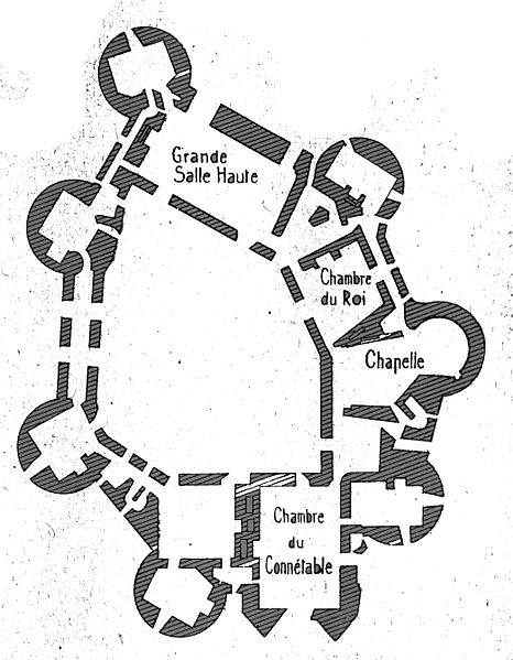 Le plan du site associe un châtelet d'entrée du XIIIe siècle, encadré de deux tours pentagonales à éperon, à la vaste motte et à la basse-cour dépourvue de donjon ; un puits occupe le centre de la cour. Au pied de la chemise, de fausses braies flanquées de tours semi-circulaires desservent un chemin de circulation ; les logis et communs adossés à la courtine ont été largement reconstruits ou transformés à la Renaissance. Le domaine de chasse historique, d'environ 250 hectares, correspond à l'actuelle forêt de Fère-en-Tardenois.