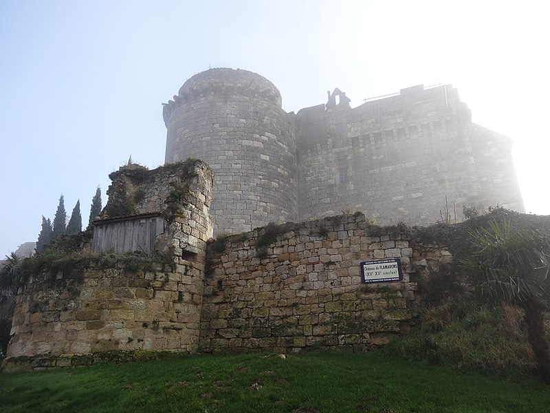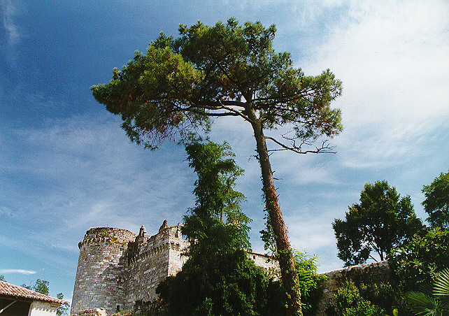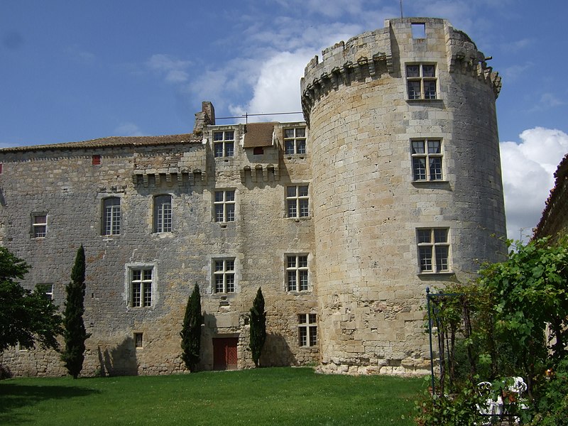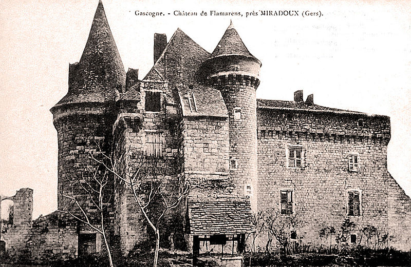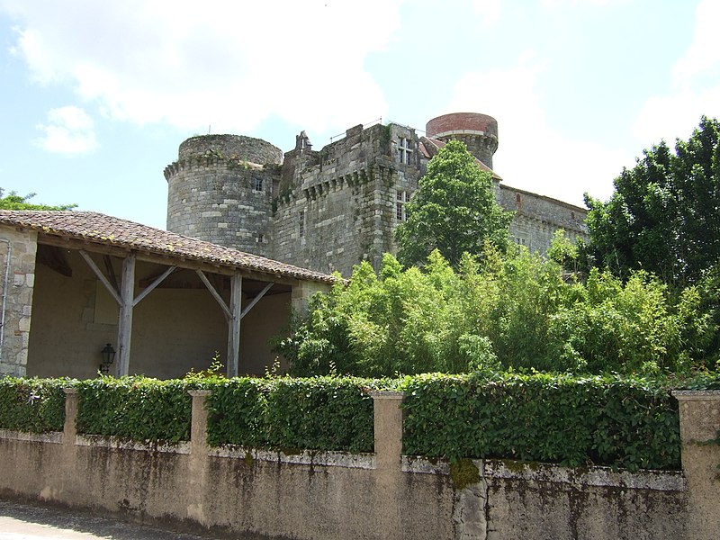 Le château présente aujourd'hui un corps de logis flanqué, à l'un des angles, d'une tour ronde coiffée d'un mâchicoulis. Une tour d'escalier faisait saillie sur la façade ouest. Un chemin de ronde, doté de mâchicoulis et de créneaux, couronne le sommet des murs et des tours. On distingue diverses étapes de construction : une partie du logis pourrait dater de la fin du XIIIe siècle ou du début du XIVe siècle, avoir été transformée au XVe et complétée au XVIe, tandis qu'une autre mention indique que la construction fut achevée en 1470. Le castrum est mentionné en 1289 et l'édifice est également attribué aux XIIIe ou XIVe siècles. La partie sud fut reconstruite à la fin du troisième quart du XVe siècle, à partir de 1469, par Jean de Cazanove pour Jean de Grosolles, tandis que la partie nord a été édifiée avant 1536 par Georges Dauzières pour Arnaud de Grossolles. Les fenêtres ont été transformées au XVIIIe siècle et de profonds remaniements intérieurs datent de cette même époque. Au rez-de-chaussée, un vestibule voûté ouvre sur un escalier à vis qui dessert les étages et les combles ; à droite du vestibule, une porte donne accès à l'office et à la cuisine. Au premier étage, cloisonnements, plafonds, cheminées et menuiseries du XVIIIe siècle ont modifié les dispositions primitives. Cette architecture constitue un exemple d'architecture militaire de Gascogne, marquée toutefois par l'influence des régions voisines du Quercy et du Périgord, probablement apportée par l'un des maîtres d'œuvre. Le château a été incendié par la foudre, a servi de carrière de pierre et a été partiellement détruit par un incendie en 1943.