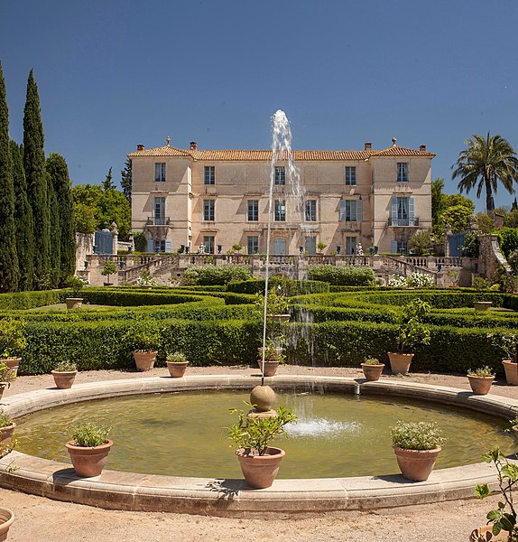 Le château, avec ses terrasses, ses statues, les grilles en fer forgé, le jardin avec ses bassins, les allées plantées, le parc et l'orangerie (cad. DK 20, 23, 25, 28, 29, 30, 133) : classement par arrêté du 23 avril 1986 - Le domaine (à l'exception des parties classées), y compris le sol des parcelles telles que délimitées sur le plan annexé à l'arrêté, notamment les espaces boisés y compris l'allée de platanes d'accès au nord-ouest, l'allée de cyprès au nord longeant l'avenue Albert-Einstein et les bosquets, ainsi que les façades et les toitures des bâtiments, notamment des communs à l'ouest et de la maison du jardinier à l'est (à l'exception du clapier ajouté) et, en totalité, le puits à noria et son bassin-réservoir y compris son réseau hydraulique (cad. RE 31 (accès), 32 (vigne nord), 34 (terre avec allée boisée au nord-est), 35 (comprenant le château et sa terrasse supérieure classés, avec maison du jardinier et puits), 37 (communs à l'ouest), 39a, 40 (vigne au sud), 41 (vigne à l'est), 42, 49 (vigne au sud-est)) : inscription par arrêté du 19 décembre 2013