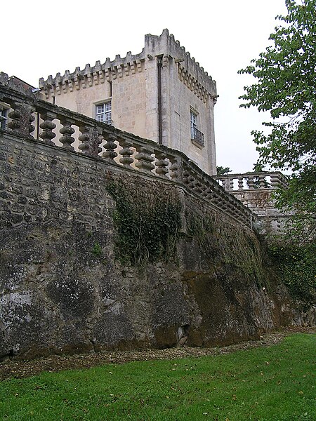 Le château de Fleurac conserve des vestiges d'un édifice médiéval, mais son aspect actuel provient d'une reconstruction engagée au début du XVIIe siècle. Certaines sources évoquent une présence humaine sur le site depuis le XIe siècle (acte de donation de 1098) et attribuent parfois une origine aux XIIIe ou XVe–XVIe siècles, ce qui témoigne d'une longue évolution. Le toponyme Fleurac, formé sur le nom gallo‑romain Florius et le suffixe -acum, laisse penser à l'existence d'une villa dont l'emplacement n'a pas été retrouvé, peut‑être sous le château. Un village appelé Floyrac est attesté sur les deux rives de la Charente, tandis que la rive sud, où se dresse le château, est restée non morcelée, signe d'une propriété seigneuriale continue. De la forteresse médiévale subsistent principalement des éléments de la partie basse et la trace d'un fossé défensif creusé dans le roc, jamais mis en eau. Le fief a appartenu successivement à des familles locales — Neuillac, Noilhac, Livenne — puis, par mariage, aux Baudouin, qui le possédaient déjà à la fin du XVe siècle. Le château fut fortement endommagé pendant les guerres de religion, mais il connut aussi des embellissements au XVIe siècle, notamment une galerie d'arcades au nord‑ouest. Le partage de la succession de Renée de Puyrigaud en 1612 permit la reconstruction des résidences familiales ; Léon Baudouin fit rebâtir Fleurac, tandis que Charles Chesnel entreprit la construction d'un château à Cherves. La physionomie actuelle date de cette campagne du début du XVIIe siècle : corps de logis central flanqué de deux pavillons en légère saillie, couronnement de créneaux posés sur des mâchicoulis, toitures à faible pente, et deux étages de vastes terrasses bordées de balustrades. Ces caractéristiques illustrent un type charentais de demeure à crénelage ornemental, inspiré, selon les observateurs, du modèle du château‑Chesnel près de Cognac, et comparable à d'autres réalisations régionales. La douve taillée dans le roc est longée de balustres du XVIIe siècle installés à partir de 1614. Des restes de moulurations gothiques, remaniées, demeurent dans les baies de la façade nord et évoquent l'art de la fin du XVe ou du début du XVIe siècle ; au XVIIIe siècle, des réaménagements introduisirent notamment un grand salon orné de gypseries. Au XIXe siècle, la façade sud sur cour reçut des moulurations néo‑gothiques au‑dessus des ouvertures. Inscrits à l'inventaire supplémentaire des monuments historiques le 8 juillet 1988 figurent le couronnement, les balustrades, le salon doré de style Louis XV et l'escalier monumental de la Renaissance. Fleurac resta dans la famille Baudouin jusqu'en 1695, puis passa à Jean‑Louis Guiton du Tranchard ; il tomba ensuite en ruine sous l'administration de son héritier Hélie, entraînant une mise en location judiciaire en 1749 et des expertises en 1750 décrivant l'état d'abandon. À la fin du XIXe siècle, le comte Jean‑Baptiste Henri de La Laurencie fit apposer ses armes dans un vitrail du grand escalier ; le domaine passa ensuite par legs dans sa famille. Le château fut vendu en 1940 à la société Gnome et Rhône, revendu en 1946, puis acquis en 1998 par Michel‑Alexandre et Bénédicte Mahy, qui entreprennent sa restauration, l'ouvrent à la visite et mènent un projet de restitution des parcs et jardins en vue d'obtenir le label « Jardin remarquable ». Les terrasses du côté nord‑ouest, d'environ 250 m2 chacune, offrent une perspective sur la vallée de la Charente et participent à la mise en scène paysagère du lieu.