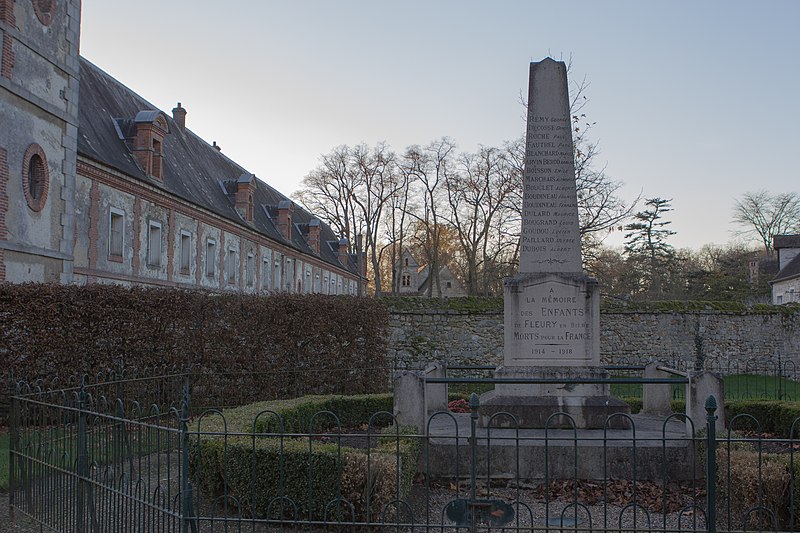 Le château de Fleury-en-Bière se situe dans la commune de Fleury-en-Bière, en Seine-et-Marne. En 1550, Côme Clausse acquiert la terre de Fleury, puis celle de Courances en 1552, et entreprend la construction d’un nouveau château qui reviendra ensuite à son fils aîné Henri. Le parc est réaménagé en 1769 par Jean-Baptiste Chaussard, architecte du roi (1729-1818). Jérôme d’Argouges fait remanier le château entre 1770 et 1782. Au début du XXe siècle, la comtesse de Béhague le fait restaurer par l’architecte Rahir entre 1910 et 1914, puis le donne à son neveu Hubert de Ganay ; le mobilier est vendu aux enchères à la galerie Georges Petit à Paris les 5 et 6 décembre 1927 et/ou les 6, 7 et 8 mai 1928. Depuis lors, la propriété appartient à la famille de Ganay. Le monument fait l’objet de classements au titre des monuments historiques par arrêtés des 17 décembre 1947 et 5 octobre 1951. On relève, parmi les éléments du site et de sa documentation photographique, la façade du château, le porche d’entrée, une tourelle, un pavillon d’angle, des dépendances et l’église.