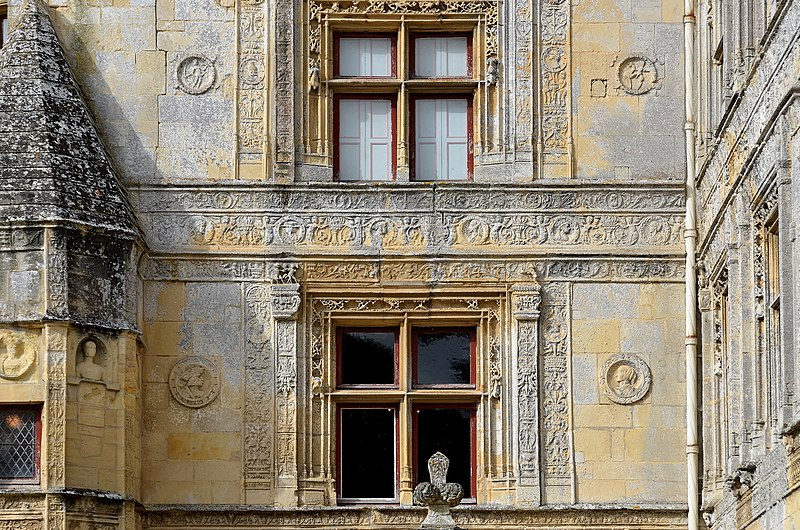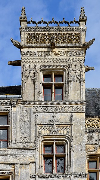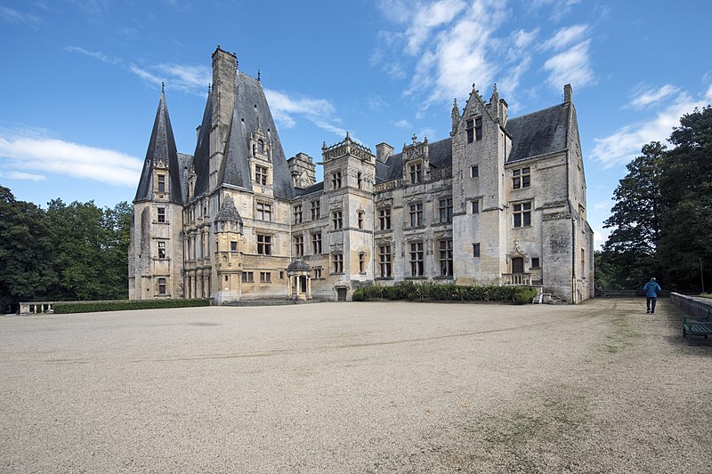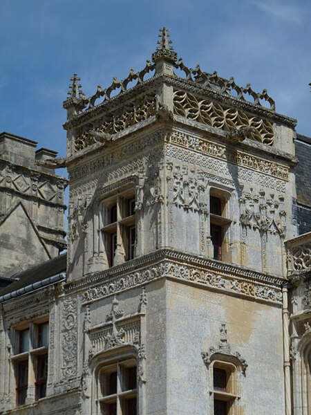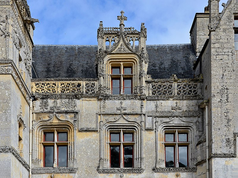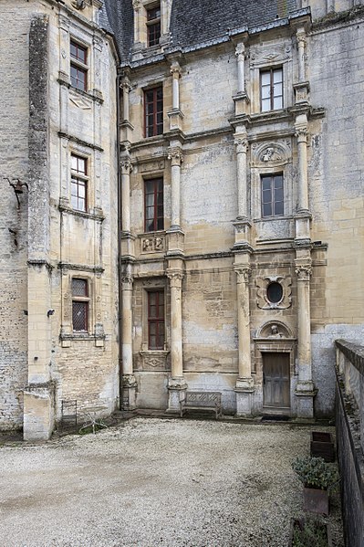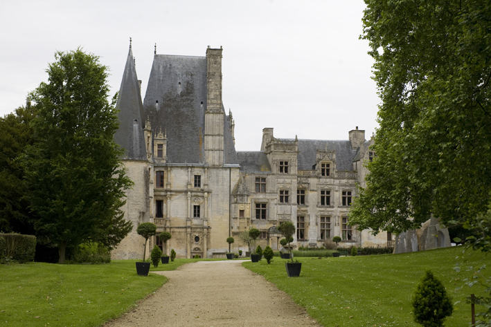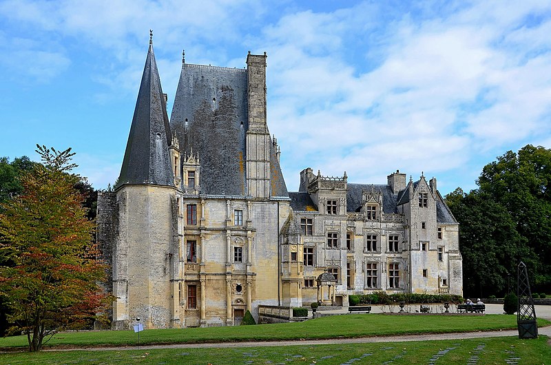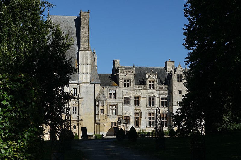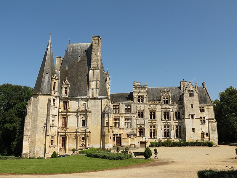 Le château de Fontaine-Henry, situé à Fontaine-Henry (Calvados, Normandie), est une demeure classée au titre des monuments historiques. Le site prend racine au début du second millénaire : une forteresse est attestée au XIe siècle et un nouvel édifice est élevé entre 1200 et 1220, dont subsistent la chapelle et des salles voûtées. Transmis par héritage depuis près de dix siècles et jamais vendu, le domaine a appartenu successivement à plusieurs familles, dont les Tilly, les d'Harcourt, les Morais, les Cornulier et enfin les d'Oilliamson, propriétaires actuels. Jeanne de Tilly apporta la seigneurie aux d'Harcourt par son mariage en 1374, et cette famille entreprit la reconstruction du château après la guerre de Cent Ans. Les principales campagnes de construction menées par Jean et Pierre d'Harcourt commencent vers 1480 et s'achèvent vers le milieu du XVIe siècle, conférant au château son aspect actuel. L'édifice se distingue par de nombreuses tours, une façade flamboyante richement décorée et des lucarnes ornées qui annoncent la transition entre gothique et Première Renaissance. La composition et l'abondance des ouvertures relèvent du style Louis XII et de la Première Renaissance, tandis que la seconde Renaissance se manifeste dans les parties achevées par Blaise Le Prestre. Le Prestre a notamment conçu un grand escalier droit et orné la façade ouest du gros pavillon d'une superposition régulière d'ordres et d'entablements inspirés de l'antique. Le gros pavillon quadrangulaire, coiffé de très hauts combles et dominé par une imposante cheminée, forme un pendant monumental aux façades Renaissance. L'ensemble, parfois qualifié d'écho des châteaux de la Loire en Normandie, reste un témoignage précieux de l'évolution du goût du gothique tardif au classicisme renaissant. La chapelle Notre-Dame-du-Val-Busnel, d'origine romane, est voûtée d'ogives depuis le XIIIe siècle et a été transformée au XVIe siècle pour créer deux niveaux de chapelle sous l'impulsion de Blaise Le Prestre. Son chevet conserve trois baies ogivales symbolisant la Trinité, et l'intérieur présente des stalles taillées dans la pierre ainsi que des éléments gothiques et Renaissance mêlés. À l'intérieur du château, les pièces forment aujourd'hui une enfilade au décor classique principalement composé de lambris, mais quelques décors anciens subsistent, comme le haut-relief représentant Judith et Holopherne qui surmonte une porte de l'escalier du pavillon de 1537. Le château, encore meublé et habité, renferme une importante collection de tableaux réunie pendant la Révolution par la famille Cornulier, parmi lesquels figurent des œuvres attribuées à Nicolas Mignard, Rubens, Le Corrège et Titien, ainsi qu'une collection de gravures de Van der Meulen. Un portrait réalisé par Hyacinthe Rigaud et un tableau de Nicolas Mignard représentant Louis XIV enfant figurent parmi les pièces remarquables. Au XIXe siècle, Henry de Carbonnel, marquis de Canisy, fit établir la galerie et la salle à manger et transforma les jardins en parc à l'anglaise ; ces aménagements furent ensuite hérités par la marquise de Cornulier puis par les d'Oilliamson. Au début du XXe siècle, le comte Pierre d'Oilliamson entreprit une restauration discrète, et le marquis Pierre-Apollinaire d'Oilliamson a depuis ouvert largement le domaine au tourisme avec un programme estival intitulé "Les enchantées". Le parc boisé, d'une superficie totale de 72 hectares répartie sur les communes de Fontaine-Henry, Bény-sur-Mer et Basly, comprend trois jardins historiques qui restituent l'évolution des jardins du Moyen Âge au XVIIIe siècle. Le jardin médiéval Notre-Dame, conçu selon les pratiques du XIIIe siècle, rassemble plantes médicinales, condimentaires, industrielles et ornementales autour d'un jardin de la Vierge; l'hortus conclusus, inspiré des XIVe–XVe siècles, propose un enclos méditatif avec fontaine et symboles religieux; la Gerbe du Parnasse, de style XVIIe siècle, relie la cour d'honneur au château et à la chapelle. Le parc est classé site naturel depuis l'arrêté du 24 août 1959. Le château, la terrasse avec son mur de soutènement, la chapelle et le puits ont été classés au titre des monuments historiques par arrêté du 22 novembre 2011, annulant en partie le classement antérieur de 1924.