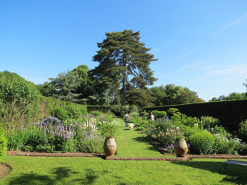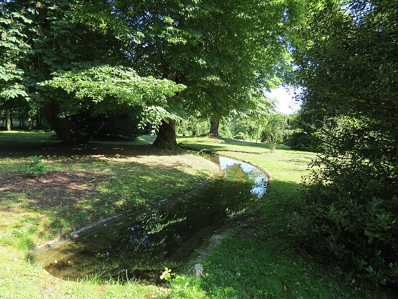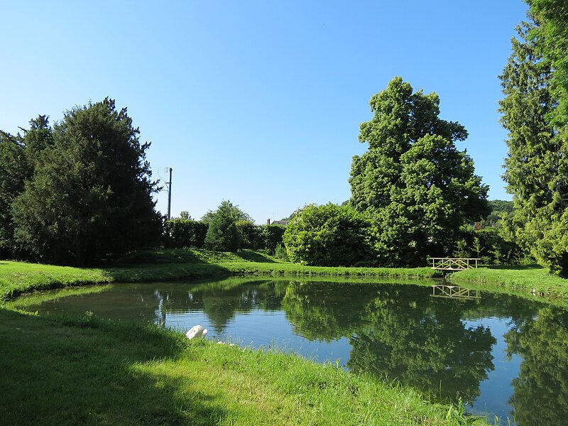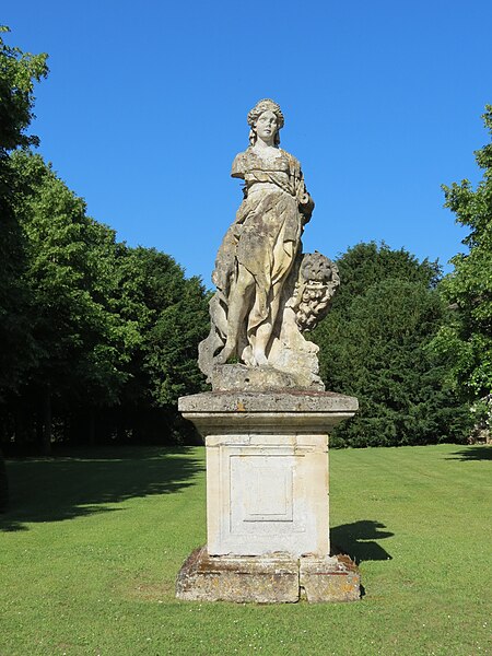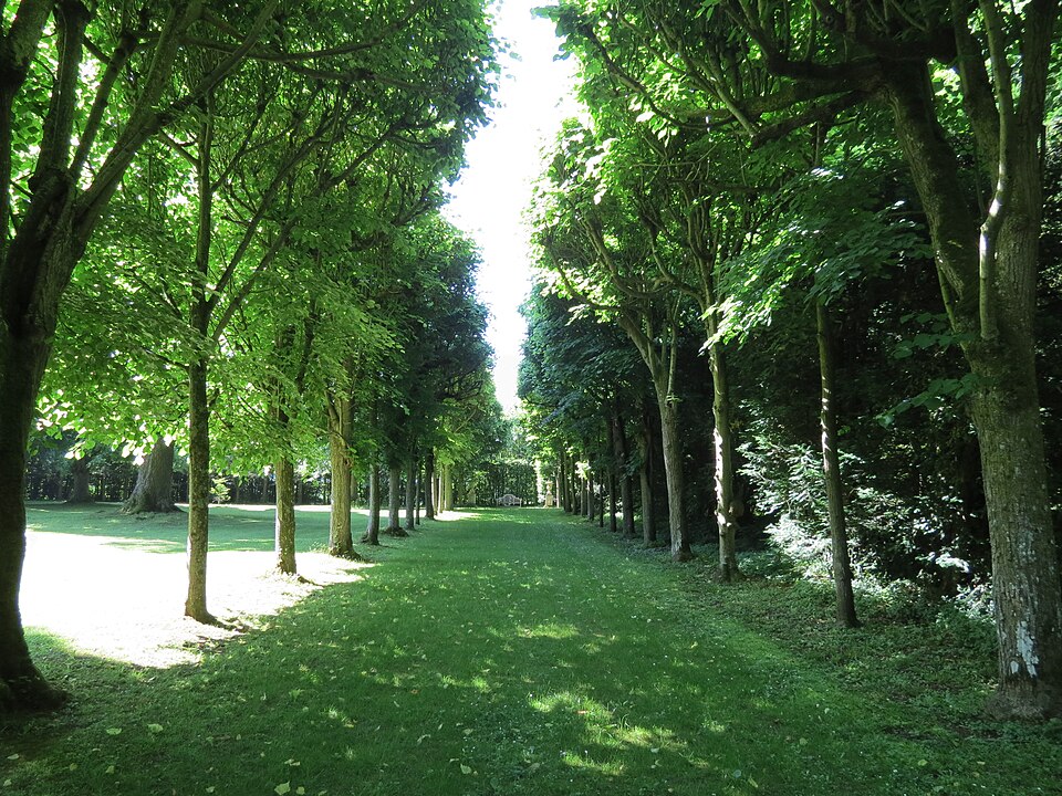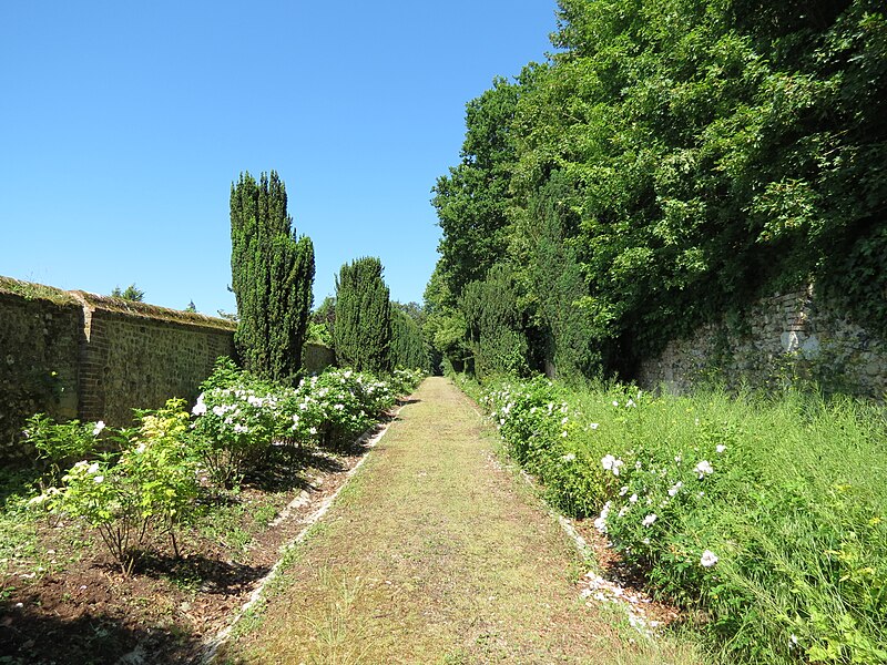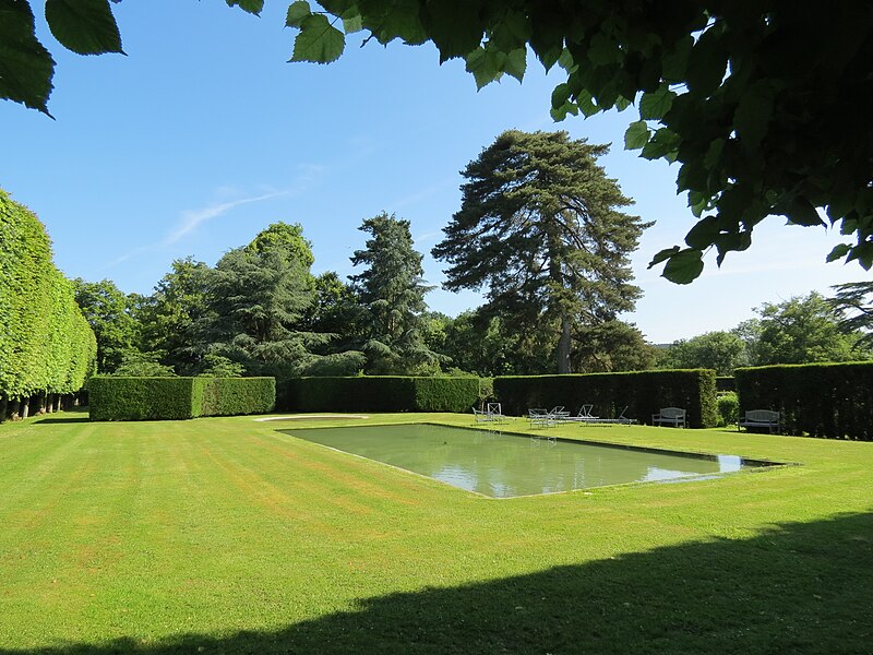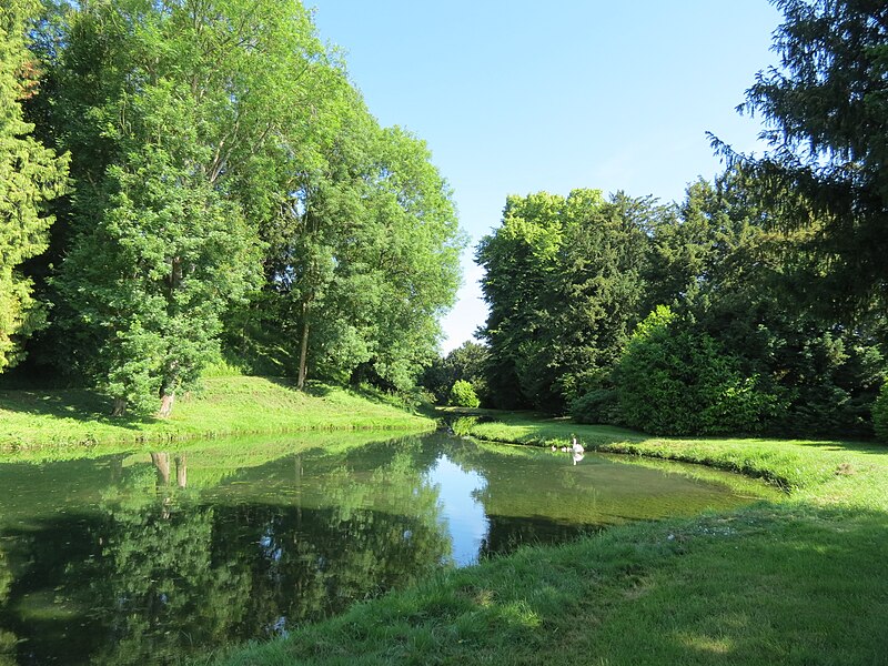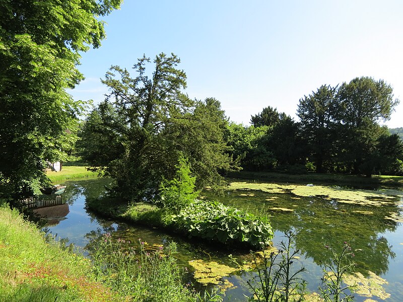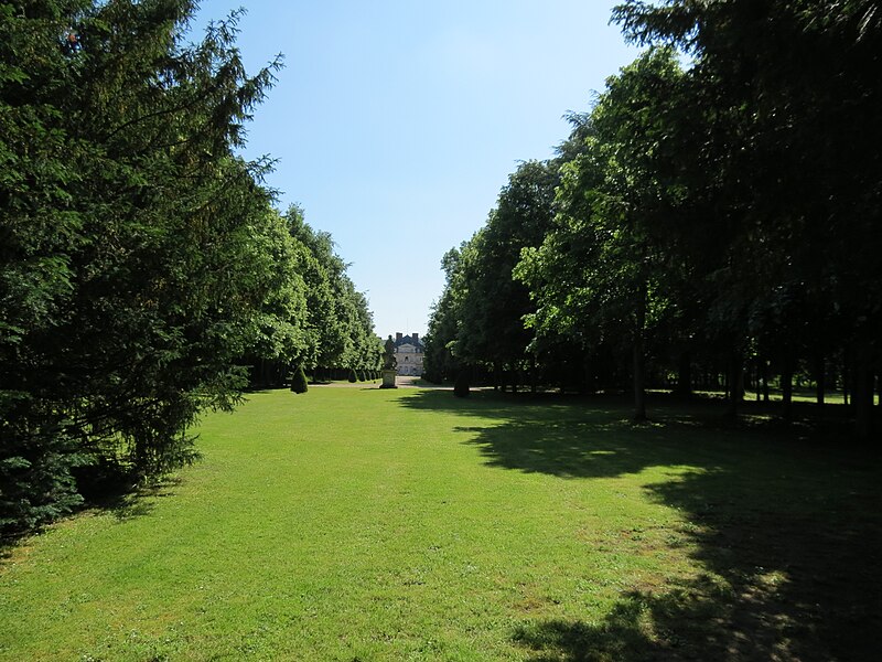 Parc : le parc de 12 hectares se divise en trois parties historiques. La section du XVIIIe siècle s'étend des entrées à la cour d'honneur et comprend allées bordées de tilleuls, ifs à l'italienne, hêtres bicentenaires, roses anciennes, persistants et conifères. La zone restaurée par Russell Page entoure le château, de la cour d'honneur à la grande charmille ; elle comprend deux bassins animés par des jets, des jardins de fleurs divisés en seize triangles, des haies d'ifs, de nombreuses vivaces et un cèdre du Liban du XVIIIe siècle. La partie du XIXe siècle, dite jardin romantique, est située en contrebas près de la chaumière et se compose d'un massif boisé parcouru de cascades dominant un étang, œuvre de Victor Crombez.