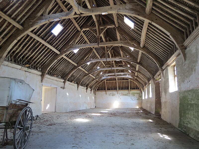 Le domaine comprend plusieurs dépendances contemporaines du château : conciergeries, communs, écuries, manège, chaumière, ancien presbytère et école ; le manège se distingue par sa charpente en forme de coque de bateau inversée. Les communs abritent aujourd'hui des salles consacrées à l'histoire du château et à la vie locale, l'ancien presbytère, construit à l'époque du Directoire, fut ensuite transformé en laiterie, et la chaumière d'agrément borde l'étang. Pendant la Seconde Guerre mondiale, des classes se tinrent dans les dépendances lorsque les écoles voisines étaient bombardées ; une salle de classe y est reconstituée.