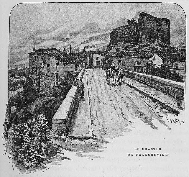 Le château de Francheville est un ancien château fort fondé au XIIe siècle dont les ruines se dressent sur la commune de Francheville, dans le département du Rhône (Auvergne-Rhône-Alpes). Les vestiges sont inscrits au titre des monuments historiques par arrêté du 12 juillet 1982. Ils occupent un rocher dominant le vallon de l'Yzeron, dans le bourg à l'ouest de Lyon, position militaire privilégiée au carrefour de plusieurs routes et d'anciennes voies romaines. L'archevêque de Lyon Renaud de Forez fit édifier le Vieux Château entre 1175 et 1200 ; le fief fut tenu par un châtelain nommé par les archevêques et son mandement s'étendait jusqu'à Oullins et Saint-Genis-Laval. En 1476, Charles de Bourbon nomma Guillaume de Quincampoix châtelain de Francheville. Une procédure judiciaire de 1514 décrit le château dans un mauvais état : absence de pont-levis, bretèche effondrée, murailles et toitures détériorées, tour-prison et chapelle en ruine, citerne et murs dégradés, et corps de logis écroulé depuis plusieurs années. En 1884, une demande de démolition des restes émanant du maire ne fut pas suivie d'effet. À partir de 1990, des travaux de renforcement du socle rocheux ont été entrepris. Le château se présente comme une enceinte polygonale sur un plan centré ; il subsiste principalement un donjon ruiné aux deux tiers, perché au sommet d'un escarpement rocheux, ainsi que des fragments du mur est, une tour ouverte à la gorge et environ la moitié des murs sud et nord. Les constructions sont faites de moellons de granit grossier liés par un mortier à base de sable et de petits graviers. À l'intérieur, la hauteur des murs varie entre 6 et 8 mètres tandis qu'ils dominent l'extérieur d'une dizaine de mètres ; leur épaisseur s'échelonne d'environ 1 mètre dans les parties rectilignes à 2 mètres au niveau de la tour. On remarque encore une fenêtre et une niche revêtue de briques. Les images disponibles montrent le site depuis le pont sur l'Yzeron, un pan de mur, la tour avec sa fenêtre et la rivière Yzeron au pied du château.