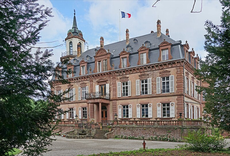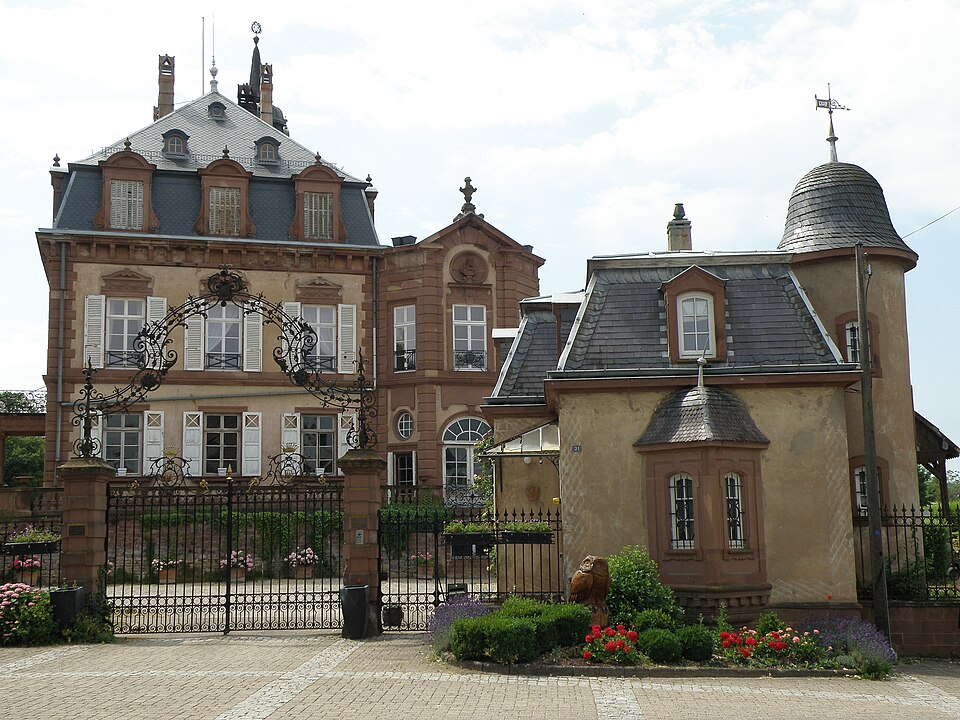 La famille Eckbrecht de Durckheim tenait en fief le village de Frœschwiller de l'évêque de Strasbourg depuis le XIVe siècle. Le château, accolé à l'église, est connu par deux dessins de la première moitié du XIXe siècle réalisés par Straus-Durckheim ; il se présentait alors comme un corps principal flanqué de deux tours, avec des dépendances accessibles par une porte percée dans un corps de passage, et un jardin et un parc à l'arrière. Vers 1850, Ferdinand de Durckheim, cousin des Durckheim-Montmartin et alors préfet du Haut-Rhin, racheta la propriété et fit reconstruire le château en une grande villa rectangulaire dotée d'un balcon porté par des piliers sur le mur-gouttereau. En 1890, Albert de Durckheim le fit transformer et agrandir par l'architecte von Seidl, qui ajouta un toit brisé avec lucarnes à frontons et une tour coiffée d'un belvédère. Un second bâtiment d'habitation fut élevé à côté du corps principal et relié par un passage à l'étage, porté par un arc surbaissé ; les dépendances portent les armoiries de la famille et la date 1891. La propriété échut ensuite à Eugénie Haniel, qui se remaria avec le comte de Holnstein, et le château fut vendu à ses propriétaires actuels après la Seconde Guerre mondiale. L'édifice fait l'objet d'un classement au titre des monuments historiques depuis 2009.