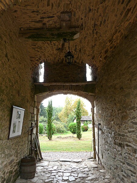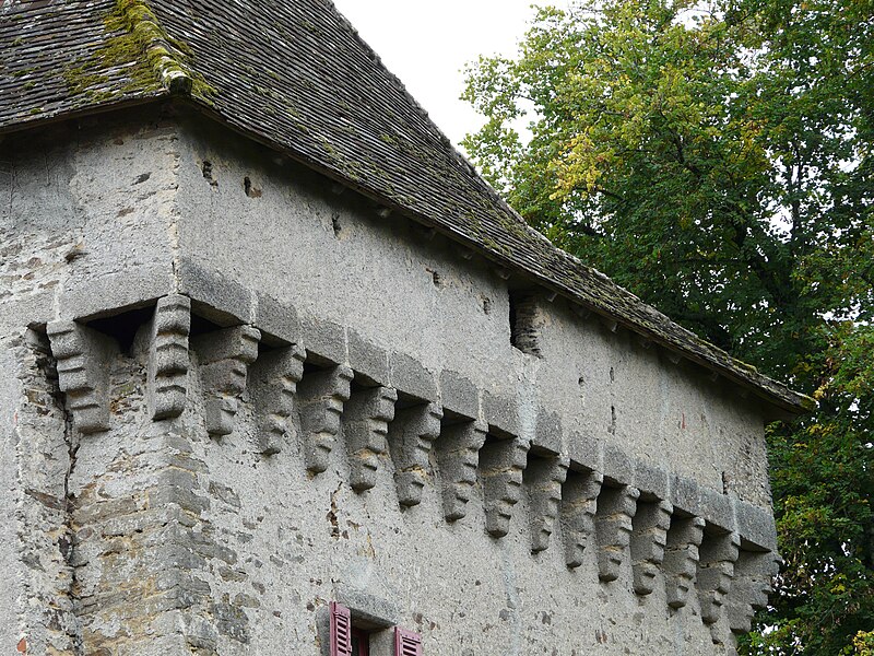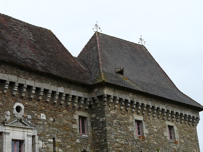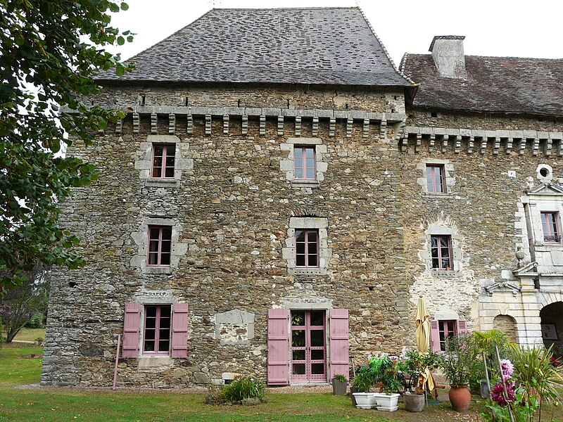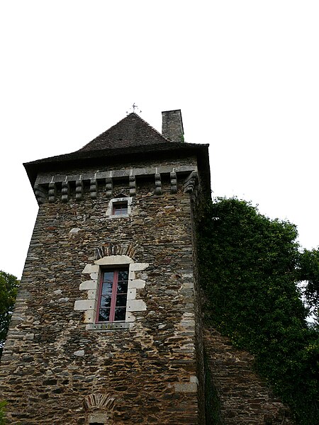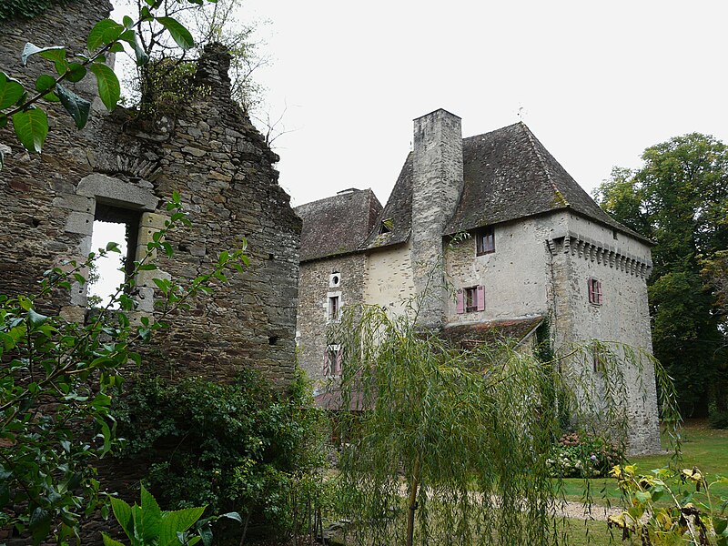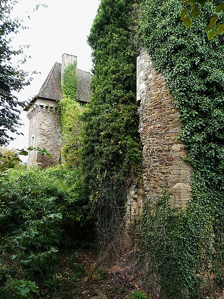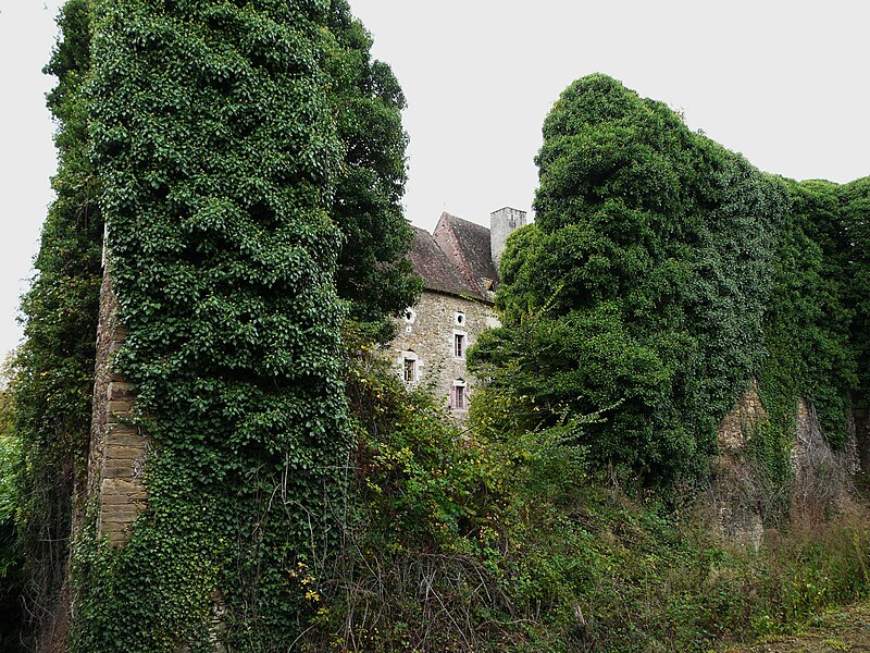 Le château de Frugie, propriété privée, se situe à Saint-Pierre-de-Frugie (Dordogne), en Périgord vert, à environ 100 mètres au sud‑ouest de l'église du bourg. Protégé au titre des monuments historiques depuis le 21 mars 1968 pour ses façades et sa toiture, il se présente aujourd'hui sous la forme de deux lignes de bâtiments encore visibles au début du XXIe siècle. Un logis au sud‑ouest est encadré de deux tours massives rectangulaires, couronné de mâchicoulis vers l'extérieur ; au nord‑est subsistent des ruines recouvertes de lierre, précédées d'une douve sèche et, côté intérieur, des vestiges de la chapelle dont le portail date du XVIIe siècle. À l'origine, l'ensemble formait un quadrilatère dont les côtés nord‑ouest et sud‑est ont disparu ; une vaste cour fermée par de hautes murailles s'inscrivait alors dans une ceinture de remparts flanqués de cinq tours rondes, et le château s'élevait au centre, entouré de fossés. L'édifice médiéval était composé de quatre pavillons carrés reliés par autant de tours, tous crénelés et percés de fenêtres étroites, de meurtrières et d'embrasures pour arme à feu. Un porche voûté et crénelé ouvrait sur la cour ; l'accès à la porte principale se faisait autrefois par un pont‑levis, aujourd'hui supprimé lors du comblement des douves. Une tour dite de Saint‑Jacques flanquait l'aile de la porte principale ; cette tour, l'aile et le pavillon correspondant ont été détruits par un incendie au XVIIe siècle. Près du puits, un orifice dans la cour, selon la tradition, communiquait avec des souterrains. Le château actuel, bâti aux XVe et XVIe siècles, succède à un repaire fortifié du haut Moyen Âge qui avait été ruiné par les guerres de Cent Ans. L'entrée du logis sud est ornée d'un portail de style Louis XIII, et l'un des éléments encore visibles est la mâchicoulis de la tour ouest ; on trouve également, parmi les vestiges, les ruines du bâtiment nord‑est et celles de la chapelle. Enfin, il est attesté que Hélie d'Arlot de Frugie, chevalier et seigneur de Frugie, y est décédé le 18 avril 1672.