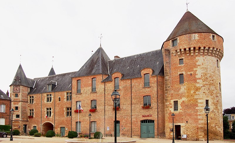 Le château de Gacé, ancien château fort, se dresse au cœur de la commune de Gacé dans l'Orne, en Normandie. Il apparaît dès l'époque mérovingienne et a été reconstruit à partir du XIVe siècle pour défendre la vallée de la Touques. On y situe le séjour d'Hugues Capet lors du siège d'Exmes aux environs de 944. Le premier seigneur connu est Raoul de Gacé. Aux XIIe et XIIIe siècles, la seigneurie passe successivement aux familles de Sablé puis de Meullent, avant d'aboutir à la famille de La Ferté-Fresnel au XIVe siècle. Jean II et Jean III de La Ferté-Fresnel firent reconstruire la forteresse très endommagée pendant la guerre de Cent Ans. Vers 1414, le château passe dans la famille d'Estouteville par mariage. Tombé aux mains des Anglais, il fut repris en 1445 par le grand-oncle du futur Henri IV. De cette période d'occupation date la grosse tour ouest, dite tour Talbot, nommée d'après un capitaine anglais. En 1449 commence la construction de deux tours rondes en briques qui flanquent l'entrée ; les travaux furent repris en 1489 après une interruption. Au XVIe siècle est édifiée la façade nord donnant sur la place, et des transformations sont opérées au XVIIe siècle sur la façade sud-ouest. À la veille de la Révolution, le château appartient à Anne-Charles-François de Montmorency-Luxembourg ; il sera vendu comme bien national après son émigration. Pendant la Révolution, une partie de la façade est est démolie par les habitants puis reconstruite au XIXe siècle en briques. Le château présente un plan quadrangulaire avec un pavillon central en saillie et s'appuie sur une grosse tour de défense du XIVe siècle. Cette tour, couronnée de mâchicoulis, est percée de meurtrières et coiffée en poivrière ; elle est construite en damiers de calcaire et de grès ocre dit « roussier ». Les deux tours rondes de l'entrée sont en briques et cerclées d'étroits bandeaux de pierre ; elles précédaient un pont-levis et surveillaient le porche central en arc surbaissé. La place a subi de nombreuses attaques au cours de la guerre de Cent Ans, ce qui explique les remaniements défensifs et les reconstructions successives. Aujourd'hui, le château abrite les services municipaux de Gacé ainsi qu'un petit musée consacré à la Dame aux camélias, Marie Duplessis. L'édifice est partiellement inscrit au titre des monuments historiques ; ses façades et toitures sont inscrites par arrêté du 6 mai 1968.