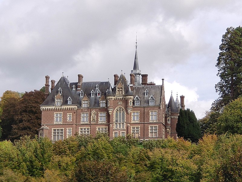Le domaine de Gaillefontaine, situé route de Paris sur le rebord du plateau dominant la vallée de la Béthune en Pays de Bray (commune de Gaillefontaine, Seine‑Maritime, Normandie), conserve une motte castrale qui témoigne de l'importance du site sur l'ancienne frontière entre la Normandie et le nord du domaine royal. En 1800, le domaine fut acquis par Adélaïde Dechaux, veuve du général Hoche. Au XIXe siècle, il fut aménagé pour le marquis Ernest‑Gabriel des Roys, époux de Jenny Hoche, fille de la générale. À partir de 1867 commença une importante campagne de travaux : de 1867 à 1877, l'architecte Pini réalisa un parc à l'anglaise et les communs ; de 1881 à 1899 l'architecte Bir aménagea le logis et ses abords immédiats dans un esprit néo‑gothique. La chapelle funéraire de la famille Des Roys, située hors du parc, fut achevée en 1903. À l'intérieur du logis, une galerie est ornée de peintures murales de Godon datées de 1899. Le château, demeure du XIXe siècle, est construit en pierres, briques et ardoises et présente des références aux esthétiques néo‑gothique et néo‑Renaissance. Propriété privée non ouverte à la visite, l'ensemble du domaine, ses chapelles funéraires, ses éléments bâtis et son assise foncière sont classés au titre des monuments historiques par arrêté du 1er février 2001.