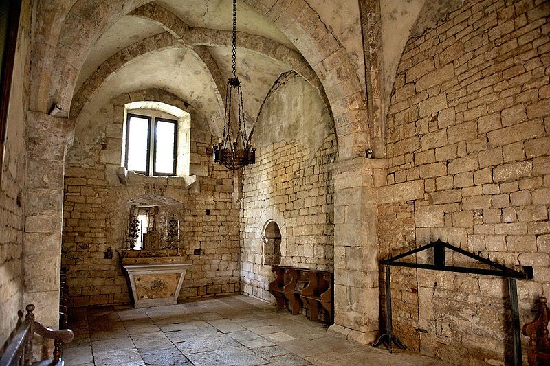 De la maison forte primitive subsistent des éléments intégrés au palais ducal, notamment un vaste cellier et une chapelle basse du XIIIe siècle, où se mêlent influences romanes et gothiques ; les tours flanquant l’entrée, réutilisées au XIVe siècle, attestent aussi de cette phase ancienne.