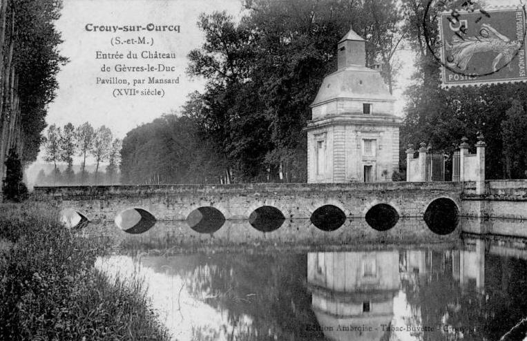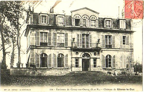 Le château de Gesvres-le-Duc, anciennement appelé château de Tresmes, est un édifice partiellement en ruines situé à Crouy-sur-Ourcq, en Seine-et-Marne, en Île-de-France, à environ 22 km au nord-est de Meaux et proche des limites des départements de l'Oise et de l'Aisne. La seigneurie, devenue comté puis duché, porta d'abord le nom de Tresmes, puis celui de Gesvres. Au Moyen Âge, la seigneurie passa dans les familles de Bracque, de Montmorency, d'Aunoy et des Baillet ; en 1577 Charlotte Baillet apporta Tresmes en dot à Louis Potier, marquis de Gesvres, secrétaire d'État sous Henri III et Henri IV. Par lettres du roi Henri IV datées de janvier 1608, Tresmes fut érigée en comté en leur faveur. D'après une gravure de Claude Chastillon vers 1610, le château comprenait alors quatre corps de bâtiments disposés en carré autour d'une petite cour intérieure, cantonnés à chaque angle par un pavillon et entourés de grands jardins réguliers et de douves. Leur fils René Potier succéda comme comte de Tresmes ; il obtint l'érection du comté en duché-pairie par lettres de Louis XIV en novembre 1648, entérinées par le Parlement de Paris le 11 décembre 1663. Vers 1660, René Potier fit renouveler le château par l'architecte François Mansart. Louis XIV autorisa en juillet 1670 la commutation du nom du duché de Tresmes en duché de Gesvres, le nom de Gesvres étant porté dans la famille Potier. Selon un dessin de la collection Gaignières daté de 1711, le château présentait un plan en U avec un corps de logis central cantonné par deux pavillons, deux ailes en retour prolongées chacune par un pavillon plus élevé ; il était implanté sur un vaste terre-plein maçonné en grès, entouré de douves en eau et de parterres. Le dessin mentionne aussi une grande allée, dite « tapis vert », reliant les douves à une petite butte de cinq mètres de hauteur et offrant, au loin, la vue sur les collines environnantes. La titulature du duché se transmit au sein de la famille Potier : René Potier fut suivi par Léon Potier (mort en 1704), puis par François Bernard Potier (décédé en 1739), ensuite par François Joachim Bernard Potier (1692-1757) qui mourut sans postérité, puis par son frère Louis Léon Potier (1695-1774) et enfin par Louis Joachim Paris Potier de Gesvres (1733-1794), dernier titulaire de la branche, qui ne quitta pas la France et fut guillotiné pendant la Terreur sans laisser de descendance. Vers 1810, le château fut démoli, sans doute par la « bande noire », et une maison d'habitation de style XIXe fut reconstruite sur l'emplacement ; les photographies anciennes montrent qu'il ne s'agit pas d'une partie du château disparu. Un plan du domaine daté de 1824 décrit l'ensemble des allées, douves, étangs et bois et présente un plan masse sensiblement comparable à l'état actuel. Au XXe siècle puis au XXIe siècle, le domaine est quasi à l'abandon ; subsistent notamment les douves, le pont qui les franchit et l'un des pavillons d'entrée construit en pierre. Par arrêté du 24 septembre 1975, le pavillon d'entrée subsistant (cad. 1971 E 576) a été classé ; les douves avec leurs ponts ainsi que le portail d'entrée et sa grille (cad. 1971 E 564, 569, 577) ont été protégés, le portail et la grille ayant fait l'objet d'une inscription par le même arrêté.