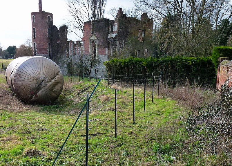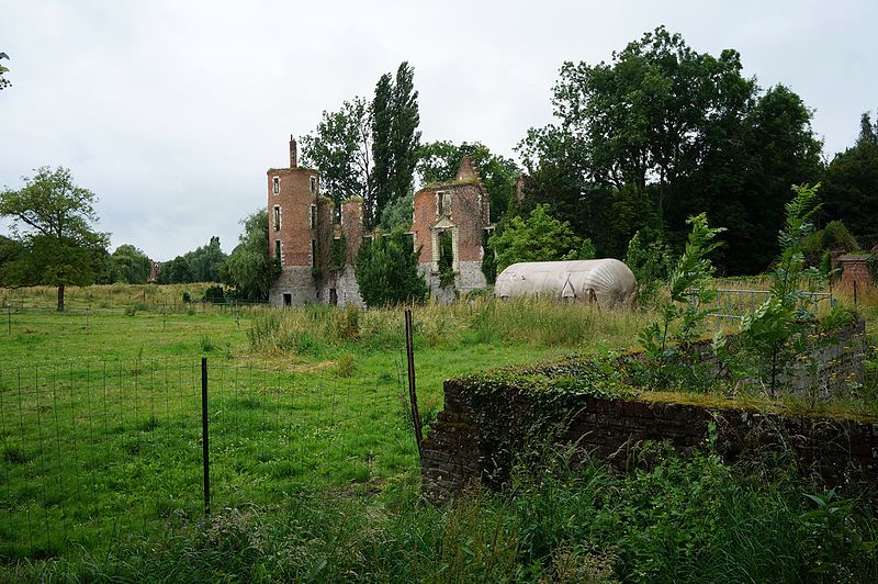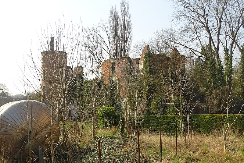 Le château de Gœulzin, situé au centre du village de Gœulzin (Nord) sur une terrasse voisine de l’église, est inscrit au titre des monuments historiques depuis le 3 août 2007. Il apparaît pour la première fois dans les sources en 1310 et existait déjà à la fin du XIIIe siècle ; incendié sous Philippe le Bel, il fut rebâti par Enguerrand de Gœulzin. Conçu à l’origine comme une maison-forte, il occupait une plate-forme rectangulaire bordée de larges douves et complétée par une basse-cour trapézoïdale occupée par des bâtiments agricoles. La Sensée, dérivée pour alimenter les douves et irriguer les terres, joue un rôle essentiel dans le dispositif hydraulique du site. Le château faisait partie d’un ensemble d’ouvrages défensifs aux confins de la Flandre, de l’Artois et du Hainaut et conserva cette fonction jusqu’aux destructions qu’il subit aux XVIe siècle. Brûlé à deux reprises au XVIe siècle, il fit l’objet de campagnes de reconstruction qui se poursuivirent au siècle suivant. Au début du XVIIe siècle, Charles-Albert de Longueval, comte de Bucquoy, fit rebâtir le château sur les soubassements en grès de l’ancien manoir, remplaçant les constructions antérieures par des bâtiments en brique et pierre ornés de pignons à pas-de-moineaux. La seigneurie passa ensuite à la famille de Pronville puis, au XVIIIe siècle, à Pierre Taffin ; son fils Jean-Charles-Louis Taffin fit édifier en 1763 une tour abritant une glacière et un colombier et fit reconstruire l’église en 1771. La tour glacière-colombier, de conception originale, est protégée aux monuments historiques ; elle perdit sa fonction avec l’apparition de la glace artificielle au XIXe siècle et fut abandonnée. Des travaux importants aux XVIIIe et XIXe siècles ont modifié les façades, le parc et le réseau d’irrigation, et une galerie néogothique provenant d’un couvent de Metz fut remontée sur la cour. Au XIXe siècle, la régularisation du réseau hydraulique et l’aménagement d’une pièce d’eau alimentée par la Sensée complétèrent la partie paysagère du parc. Pendant la Première Guerre mondiale, le château fut occupé par les troupes allemandes, pillé et laissé à l’abandon ; son état de ruine date essentiellement de cette période. Après la guerre, les douves furent asséchées sur trois côtés et les dépendances furent fragmentées en propriétés distinctes. Le bâti conservé présente un plan en L issu des transformations du XVIIe siècle : le corps sud, cantonné de deux tours rondes coiffées de poivrières, s’appuie sur un fort soubassement en grès percé d’ouvertures, tandis que la longue aile nord comporte des travées irrégulières et des tourelles octogonales qui abritaient des escaliers. Les façades mêlent briques rouges et pierre blanche en chaînages et encadrements, avec lucarnes, frontons curvilignes et pignons à pas-de-moineaux ; certaines parties, dont des toitures et des éléments de terrasse, se sont effondrées. Les communs, qui occupent une grande partie de l’ancienne basse-cour, sont aujourd’hui divisés entre deux propriétaires : M. et Mme Serge Nal possèdent la partie sud transformée en habitation principale, et M. et Mme Éric Dupire détiennent la partie nord et la tour glacière-colombier. La propriété actuelle regroupe 3,5 hectares sur les 25 hectares historiques, comprenant notamment un bois de chasse de deux hectares et la majeure partie de l’étang de Gœulzin ; le manoir de l’ancien pavillon de chasse est devenu une habitation composée d’un rez-de-chaussée et d’un étage avec tour centrale. Les vestiges du château, témoins du passage d’une fortification médiévale à un château de plaisance marqué par des influences françaises et flamandes, justifient sa protection au titre des monuments historiques.