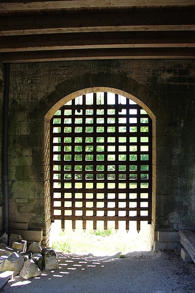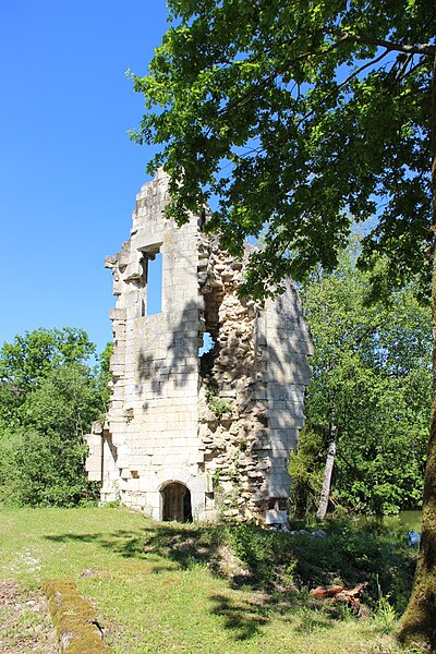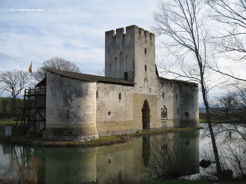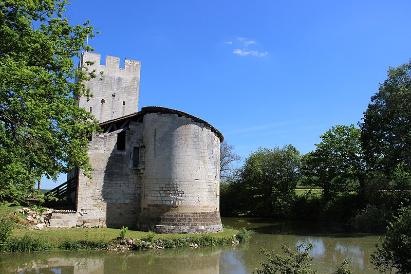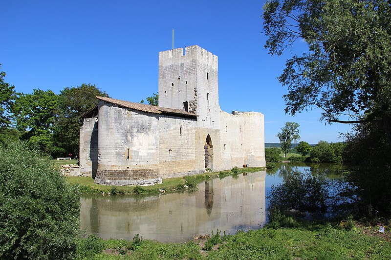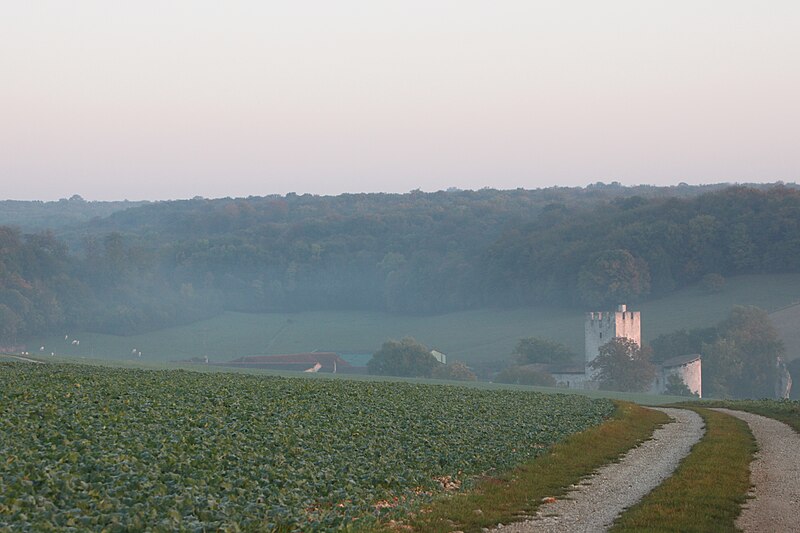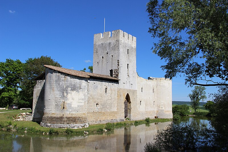 Le château de Gombervaux est une maison forte du XIVe siècle, située près de Vaucouleurs (Meuse) en Lorraine, dans la région Grand Est. Il a été édifié entre 1338 et 1357, probablement par Geoffroy de Nancy, sur un emplacement lié par la légende à un château des « quatre fils Aimond ». Dominant un quadrilatère flanqué de quatre tours rondes, l’ensemble est parcouru par un imposant donjon-porche qui compte cinq niveaux et une terrasse sommitale. La porte principale présente un arc en tiers-point doublé d’un arc en plein cintre et des rainures verticales attestent l’existence d’une herse aujourd’hui reconstituée. La porte sur cour ouvre sous un arc en plein cintre ; des cheminées moulurées, des fenêtres à coussiège et un conduit de fumée double témoignent des aménagements intérieurs. Le sommet du donjon comporte neuf créneaux et la façade extérieure porte trois écus sculptés représentant les maisons de Myon, des Salles et du Hautoy. Sous le logis sud-ouest, une salle voûtée trapézoïdale repose sur six arcs-doubleaux et des salles circulaires ou voûtées subsistent dans les tours, percées d’archères et dotées de vestiges de cheminées et de latrines. Le site est entouré de douves alimentées par trois sources ; leur niveau était réglé par une vanne dont le trop‑plein s’écoulait dans le fossé dit « de Gombervaux ». Une partie du château a servi de carrière de pierres aux habitants des villages voisins, ce qui a contribué à son état de ruine avant sa sauvegarde.
