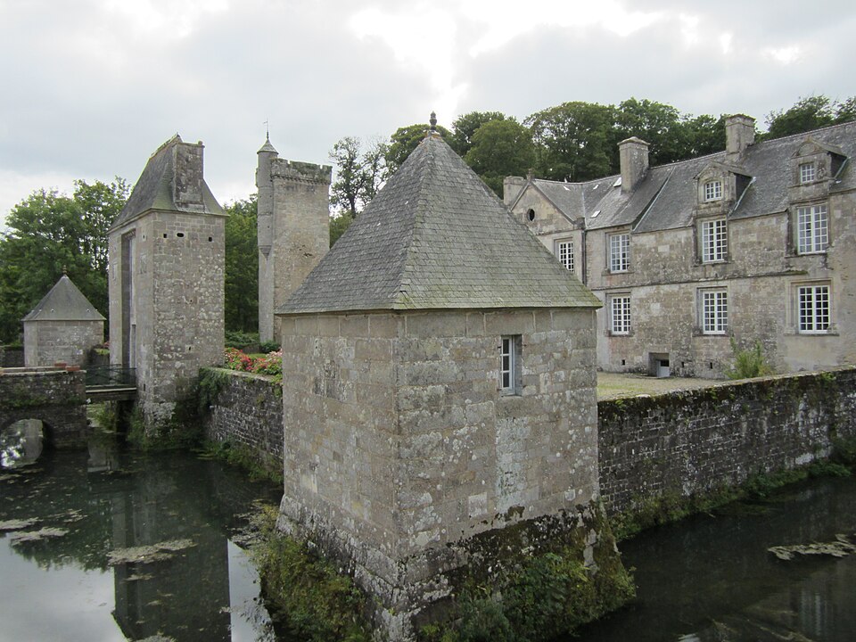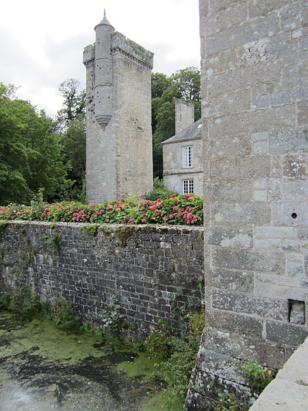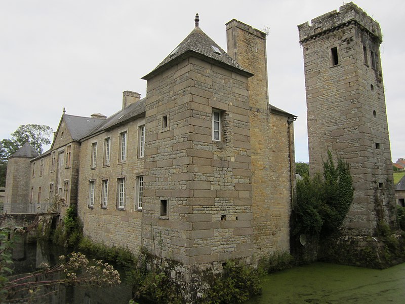 Le château de Gonneville est un ancien château fort de la commune de Gonneville, dans le département de la Manche, partiellement inscrit au titre des monuments historiques. Il s’élève dans le creux d’un vallon boisé, à l’ouest de l’église Saint‑Martin, au cœur du village dit de l’Église, dans la commune nouvelle de Gonneville‑Le Theil. Daté des débuts du XIVe siècle, l’édifice a été reconstruit aux XVIe et XVIIe siècles puis remanié au XIXe siècle. Le nom de Gonneville est attribué, selon la tradition, à un Viking nommé Gunulf et le lieu formait le centre de la seigneurie relevant de la baronnie de Néhou. La seigneurie est attestée dès le début du Xe siècle par une donation de Richard de Saint‑Sauveur à son fils Néel ; Néel II perdit plus tard la baronnie au profit du duc Guillaume le Bâtard qui la donna à Baudoin, comte de Meules, dont la descendance porta ensuite les titres de Reviers et de Vernon. Aux XIIe et XIIIe siècles la famille de Reviers‑Vernon détenait le château ; Jean sans Terre y séjourna à plusieurs reprises en 1194 et en 1203 avant de quitter définitivement la Normandie. Aucun vestige de cette première forteresse n’est visible aujourd’hui. Un nouveau château fut élevé au début du XIVe siècle par Richard de Courcy ; subsistent du château de cette époque deux tours datées de 1331, un donjon carré du XIVe siècle et la poterne d’entrée. Par alliances la seigneurie passa aux Malesmains puis à la famille de Rohan qui la conserva pendant plusieurs générations. Pendant la guerre de Cent Ans, alors que la Normandie était occupée, Robert de Montauban abandonna le château et ses biens furent attribués à un chevalier anglais avant d’être rendus à sa famille après 1450. Au début du XVIe siècle la seigneurie eut plusieurs propriétaires, Catherine de Rohan la vendit en 1527 à Jean de la Guette dont les biens furent saisis en 1555 ; sa femme Marie Saligot échangea ensuite la châtellenie et devint propriétaire. En 1559 Marie Saligot donna la seigneurie à Olivier de Pirou et la famille de Pirou fit édifier, dans la seconde moitié du XVIe siècle, le corps principal du château et la poterne. Jean de Pirou, fidèle au roi pendant les guerres de Religion, vit son château assiégé sans succès par les Ligueurs ; François de La Cour, chef des assiégeants, fut tué en décembre 1592. Charlotte de Pirou, héritière, apporta le château aux Jallot de Beaumont par son mariage et Charles Jallot poursuivit la remise en état ainsi que l’édification des communs bordant l’avant‑cour. La seigneurie passa ensuite aux du Mesnil‑Eury qui firent élever le marquisat et aménagèrent la façade est du vestibule en 1727, puis par héritage aux de Berruyer au XVIIIe siècle ; Jean‑Nicolas de Berruyer émigra en 1792, les biens furent déclarés nationaux et dispersés, et les grilles et la rampe furent transformées en piques. En 1794 l’entrepreneur Antoine Daumas s’installa après achat mais fit faillite ; en 1814 le tribunal rendit le château aux deux filles de l’ancien châtelain qui le revendirent en 1842 à Mme Lambert, laquelle détruisit une partie de l’enceinte en 1846 en cherchant un trésor. En 1849 la propriété fut acquise par Mme Doynel de La Sausserie, marquise de Chivré, dont le mari fit restaurer les destructions ; la famille de Chivré conserva le château jusqu’en 1954, date à laquelle les demoiselles de Chivré le cédèrent en viager au baron Nadalh de Barthes de Montfort et à son épouse Régine d’Elbée, qui entreprirent des travaux de restauration et de modernisation et s’installèrent définitivement en 1983. La chapelle Saint‑Jean du château était desservie par le curé de Gonneville qui percevait pour ce service des offrandes et des rentes comparables à celles de sa cure. Le château présente un plan en vaste quadrilatère ceinturé de douves encore en eau ; il est précédé d’une avant‑cour bordée de communs datés de 1641, à rez‑de‑chaussée surmonté d’un grenier et pourvus de lucarnes ovales. Du château médiéval subsiste le donjon carré crénelé haut de 17 mètres, pourvu de mâchicoulis et d’une échauguette en encorbellement du XVIIe siècle abritant un escalier, ainsi que deux tours cylindriques partiellement arasées dans le parc. L’accès se fait par un châtelet des XIVe et XVIe siècles, anciennement muni d’un pont‑levis ; le corps de logis du XVIIIe siècle est flanqué de deux tours d’angle et l’entrée se signale par un pavillon à porche, colonnes et fronton triangulaire. Des destructions opérées au XIXe siècle ont entraîné la disparition de courtines, mais sur la façade ouest figurent encore les armes des Jallot et des Bellefonds, ainsi que les armes des Pirou sur le linteau du donjon et à l’intérieur du logis. Dans la cuisine se trouve un potager central à onze feux du milieu du XIXe siècle transformé en radiateur, une cheminée gothique et une porte intérieure en calcaire de la fin du XVIe siècle de style gothique. Les façades et toitures du château, y compris les deux pavillons d’angle et les restes de l’ancien château (poterne, donjon, cinq tours), ainsi que les façades et toitures des communs, la boulangerie, le fruitier et les douves avec leur pont, sont inscrits au titre des monuments historiques par arrêté du 27 septembre 1972. Depuis sa fondation le domaine a appartenu à de nombreuses familles — trente‑cinq propriétaires issus de dix‑sept familles — parmi lesquelles figurent notamment les Saint‑Sauveur, Reviers‑Vernon, Courcy, Malesmains, Rohan, Montauban, Pirou, Jallot, Mesnil‑Eury, de Berruyer et de Chivré. En 1940 Mme de Chivré, voyant le château réquisitionné, jeta l’argenterie dans les douves ; en 1996 on y découvrit trente‑huit pièces du Second Empire et, en 1997, une équipe de tournage retrouva un couvercle de soupière en argent gra