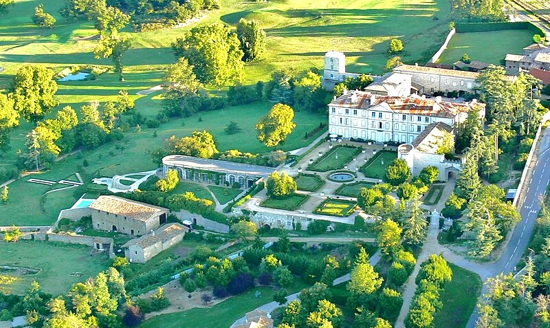 Le château de Gourdan se situe à Saint‑Clair, en Ardèche, à 70 km au sud de Lyon, 45 km de Valence et 4 km d'Annonay. Il est inscrit au titre des monuments historiques depuis le 30 août 1967. Le château actuel a été bâti en 1777 pour remplacer un vieux manoir dont subsiste une aile sud‑est avec une tour ronde, dite « aile de la tour médiévale ». Autrefois, le domaine était considérable : écuries, remises et dépendances témoignent d'un important personnel, environ une quinzaine de personnes pour le service du château, et au début du XIXe siècle il comprenait dix fermes couvrant plus de 1 000 hectares. L'architecte du nouveau bâtiment s'est inspiré des modèles en vogue au XVIIIe siècle et a ménagé des perspectives en intégrant les constructions dans un parc prolongé par un bois servant d'écran végétal. Par sa disposition, son allure et son parterre à la française, Gourdan rappelle les bastides construites autour d'Aix‑en‑Provence et constitue un spécimen rare dans le nord de l'Ardèche, où les autres châteaux sont plutôt féodaux ou datent du XIXe siècle. Le corps principal en L comprend deux ailes ; l'une, de style classique, présente deux niveaux au‑dessus d'un rez‑de‑chaussée, les hauteurs d'étage décroissant pour assurer l'harmonie de l'ensemble. La légère avancée centrale, coiffée d'un fronton et percée de trois fenêtres à chaque étage, renforce les traits classiques du bâtiment. Au rez‑de‑chaussée, une enfilade de salons ornés de parquets dits de Versailles et de boiseries témoigne du caractère de résidence d'agrément et de lieu de réception du château. L'autre aile, probablement datée du début du XVIe siècle, est un vestige de l'ancien manoir ; elle abrite une petite chapelle castrale, un pressoir, un tinal et un chai important où le vin du domaine était produit et conservé jusqu'en 1977. Le parterre à la française, établi sur une terrasse artificielle, confère au château une grande partie de son charme avec ses broderies de buis, ses rosiers et ses caisses à orangers en saison ; cette terrasse est aménagée au‑dessus d'un lavoir et de vastes réservoirs conçus pour alimenter les jardins en eau, recueillant les sources de la colline et les eaux de pluie des toitures. L'orangerie, construite en 1832 et longue de 45 mètres sur 8, pouvait abriter l'hiver une centaine de caisses d'orangers et de camélias. Derrière le château, la cour d'honneur, de caractère plus sévère, est délimitée par les écuries et des remises destinées aux attelages. Plus au nord, l'aile dite de « la Tour Carrée », probablement du XIXe siècle, comprenait, outre la tour vraisemblablement utilisée comme observatoire, une serre chaude, une grande glacière et un chenil. Ces bâtiments dominent le Petit Parc, qui abritait, avant la tempête de 1999, des cèdres majestueux. Le Grand Parc, d'environ trente hectares et entouré de murs, est aujourd'hui aménagé en golf de 18 trous et ne fait plus partie du domaine depuis 1985. Dans le prolongement de l'orangerie, une série de bassins à la provençale a été créée en 2002 dans le Petit Parc. La seigneurie de Gourdan appartint à partir du XIVe siècle à la famille du Peloux, influente dans la région d'Annonay et active pendant les guerres de Religion, notamment par Nicolas du Peloux, gouverneur du marquisat d'Annonay. En 1605, Marguerite du Peloux, héritière du domaine, apporta Gourdan à la famille de Vogüé par son mariage avec Louis‑Guillaume de Vogüé. Pierre de Vogüé entreprit d'importants travaux à partir de 1751 ; neveu du maréchal de Villars, il transmit la seigneurie à son cousin Félix de Vogüé (1714‑1784), qui acheva les agrandissements vers 1780. À la mort de Félix en 1784, le domaine passa à son neveu Eugène de Vogüé (1777‑1854), qui fut président du conseil général et membre de la chambre des pairs en 1828. Pendant la Révolution, le château fut préservé grâce aux interventions de la veuve de Félix et de la mère d'Eugène. Son petit‑fils Eugène‑Melchior de Vogüé, romancier et membre de l'Académie française, vendit la propriété en 1869 à de grands industriels de la région d'Annonay, reflet de l'essor économique local au XIXe siècle. Le château est aujourd'hui une propriété privée : les écuries sont louées pour des réceptions et trois gîtes ruraux ont été aménagés dans l'aile de la Tour Carrée.