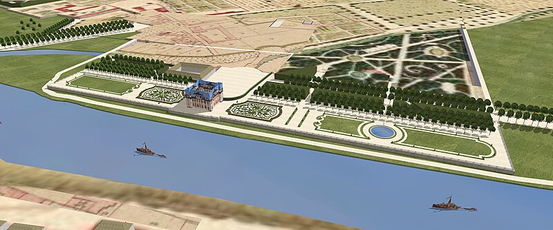Les jardins, modestes en superficie, tiraient leur attrait de la présence de la Marne au pied du château. Une terrasse monumentale d'environ 380 mètres, agrémentée de parterres et d'un bassin, organisait la promenade, et une allée menait à l'ouest à un pavillon belvédère dit "Kiosque à la Turque", qui offrait une vue sur la boucle de la Marne. Aujourd'hui le château-mairie est entouré de végétation, contraste avec l'aspect dégagé qu'il présentait au XVIIIe siècle.
