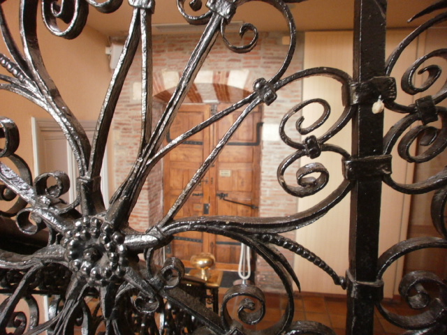 L'édifice, relevant de l'époque Louis XIII, présente un corps de bâtiment en U s'ouvrant sur une large allée qui mène à la route nationale. Sa façade, au fond, se compose de trois arcades surmontées de fenêtres très simples. À droite, une porte en pierre sculptée donne accès à un escalier à la française dont la rampe en fer forgé est ornée d'une grille d'influence espagnole.