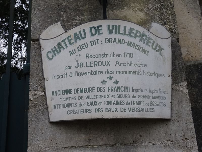Un manoir, peut‑être construit à la fin du XVIe siècle, a été détruit ; l'orangerie, établie vers 1720, incorpore des matériaux de ce manoir. En 1598 Thomas de Francini, fontainier d'Henri IV, s'installe à Villepreux et acquiert le domaine de Grand'Maisons. Le domaine passe ensuite à son fils François — qui collabore avec Le Nôtre à Versailles — puis à Pierre François de Francini. À l'issue d'échanges fonciers liés à la création de la « plaine de Versailles », Pierre François retrouve la seigneurie de Villepreux en 1706, élevée en comté l'année suivante.