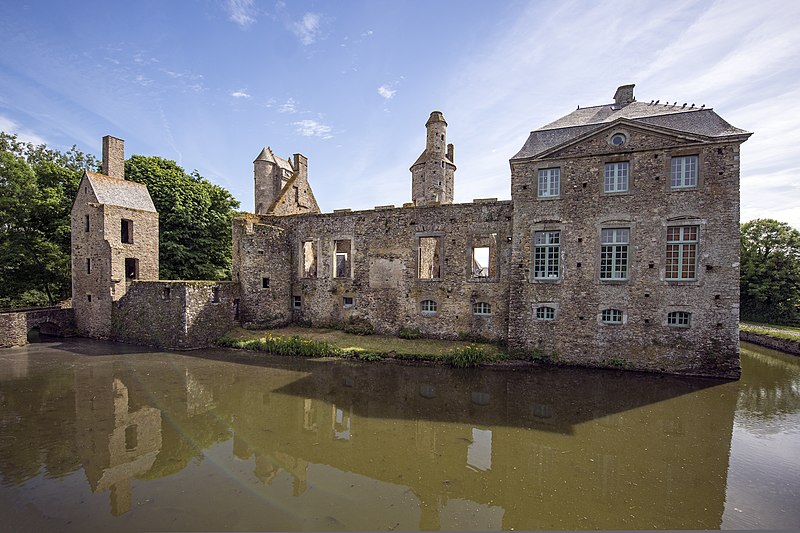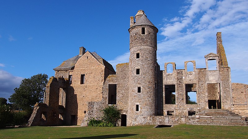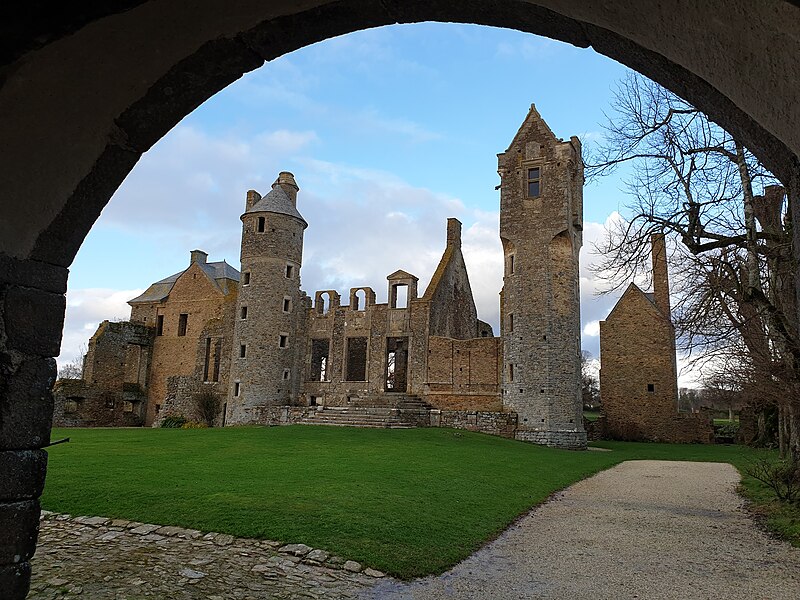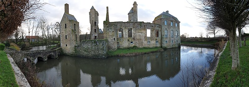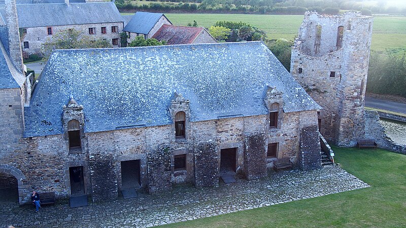 Le logis seigneurial, formé aux XVe et XVIIe siècles entre la tour ronde et la tour à la Fée, comportait à l'origine trois étages et une quinzaine de pièces ; son rez-de-chaussée est percé de larges fenêtres et le premier étage de lucarnes en plein cintre. La tour ronde, datée du XVe siècle, conserve un aspect médiéval et est surmontée d'une tourelle de guet. La tour à la Fée, de base octogonale et coiffée d'un toit en bâtière, est soutenue au sommet par quatre trompes et décorée de balustrades et de gargouilles. Des caves situées au pied de la tour ronde présentent des voûtes en arc surbaissé pour deux d'entre elles et une voûte d'arêtes reposant sur un pilier central pour la troisième.
