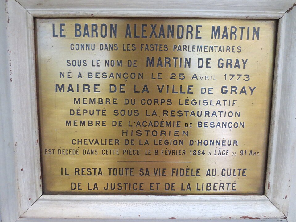 Le château de Gray, situé à Gray (Haute‑Saône, Bourgogne‑Franche‑Comté), est un ancien château fort dont subsistent principalement la tour d'entrée fortifiée et les murs d'enceinte datés du XIIIe siècle. Des sources anciennes, notamment la chronique de l'abbaye de Bèze, évoquent une construction au XIe siècle, établie sur un précédent castrum carolingien. Le monument connaît plusieurs destructions au cours du Moyen Âge : il est signalé détruit en 1192 puis de nouveau en 1227 sur l'ordre du comte Othon II de Bourgogne. Reconstruit en 1248 pour servir de résidence à Hugues de Chalon, il reçoit en 1266 une chapelle dédiée à sainte Élisabeth. L'édifice est incendié en 1324 lors d'un incendie de la ville ; vers 1333 le comte Eudes IV entreprend son relèvement et Jean Moingin, maître des œuvres de maçonnerie, est attitré en 1336 : la tour dite du Parvis paraît remonter à cette période. Pillé et endommagé en 1477 par des soldats de Louis XI, le château voit sa chapelle détruite puis relevée à la fin du XVe siècle. Après la conquête française, le château fort, en ruine, passe dans le domaine royal puis est mis en vente le 16 janvier 1698 et acquis par Louis Fabry de Moncault. Entre 1699 et les premières décennies du XVIIIe siècle, Moncault entreprend la transformation de l'enceinte en résidence de plaisance en conservant les sous‑sols plus anciens : réparations de maçonnerie en 1699, aménagement d'un jardin et terrassement en 1700, agrandissement du corps principal en 1702. Une inscription date des travaux sur la tour du Parvis au 6 avril 1740 ; d'autres interventions concernent le bâtiment principal entre 1777 et 1783 sous le comte de Provence. Vendue comme bien national en 1796, elle est cédée la même année à Alexandre François Martin ; la chapelle est détruite entre 1796 et 1817. Au cours du XIXe siècle on entreprend des travaux sur les façades et les décors intérieurs ; entre 1817 et le cadastre récent, les écuries, le logement du jardinier et les communs disparaissent, et une remise est reconstruite contre le mur d'enceinte à la fin du XIXe siècle. Louis Revon, maire de Gray, revend l'édifice à la ville en 1901 pour y établir le musée Baron‑Martin, ouvert en 1903 dans le palais reconstruit dans l'enceinte. Le château a été le siège des gouverneurs de la Franche‑Comté jusqu'en 1668. La tour d'entrée est classée au titre des monuments historiques depuis le 20 décembre 1916 ; les caves voûtées sont inscrites depuis le 24 octobre 1988 et les murs d'enceinte depuis le 13 septembre 1991.