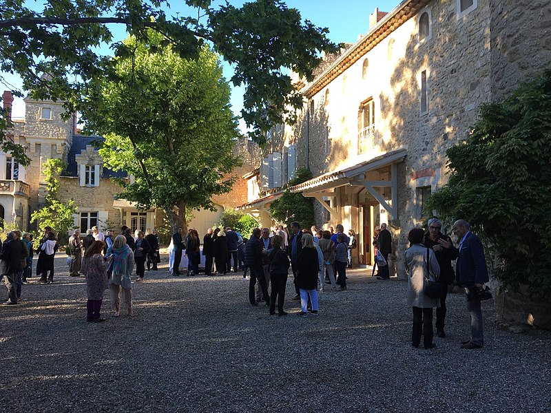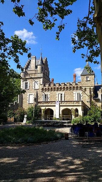 Situé à la limite nord de la plaine biterroise et des premiers contreforts montagneux, à Laurens (Hérault), le château de Grézan occupe un ancien terroir agricole qui fut le siège d'une commanderie hospitalière de l'ordre de Saint-Jean de Jérusalem, fondée au XIIe siècle. Transformé au XIXe siècle en domaine viticole, il fut repris entre 1820 et 1888 puis entièrement remodelé en 1890 par Gabriel de Mirepoix, qui confia les travaux à l'architecte Louis Garros. Garros regroupa les bâtiments d'exploitation, le logis des maîtres et les communs autour d'une grande cour principale, et enferma l'ensemble dans une vaste enceinte néo-médiévale à l'aspect fortifié, pourvue de créneaux, d'un corps d'entrée et de tourelles. Le traitement des élévations emprunte au néo-gothique anglais pour les corps d'habitation, tandis que la décoration sculptée réemploie des éléments anciens en référence à la commanderie. Le parc, dessiné dans le cadre de la conception générale, fait partie intégrante du projet. Dans la série des châteaux liés à la prospérité viticole du biterrois à la fin du XIXe siècle, Grézan se distingue par l'ampleur et l'originalité de son programme. L'ensemble, de taille considérable et ceint de remparts crénelés, est parfois qualifié de « forteresse de fantaisie ». Les façades et toitures de tous les bâtiments, ainsi que le parc (cotes D2 693 à 695, 1112 à 1114, 1125 à 1127, 1161 à 1163 au cadastre), sont inscrits au titre des monuments historiques depuis le 22 juillet 1993. Le domaine comprend notamment une cour intérieure, une statue de Jeanne d'Arc, une grande tour, une façade remarquable et une entrée principale.