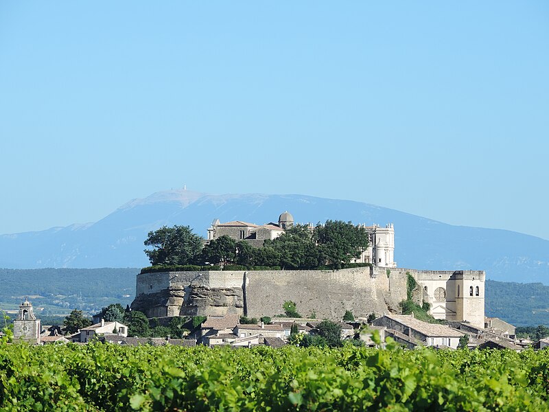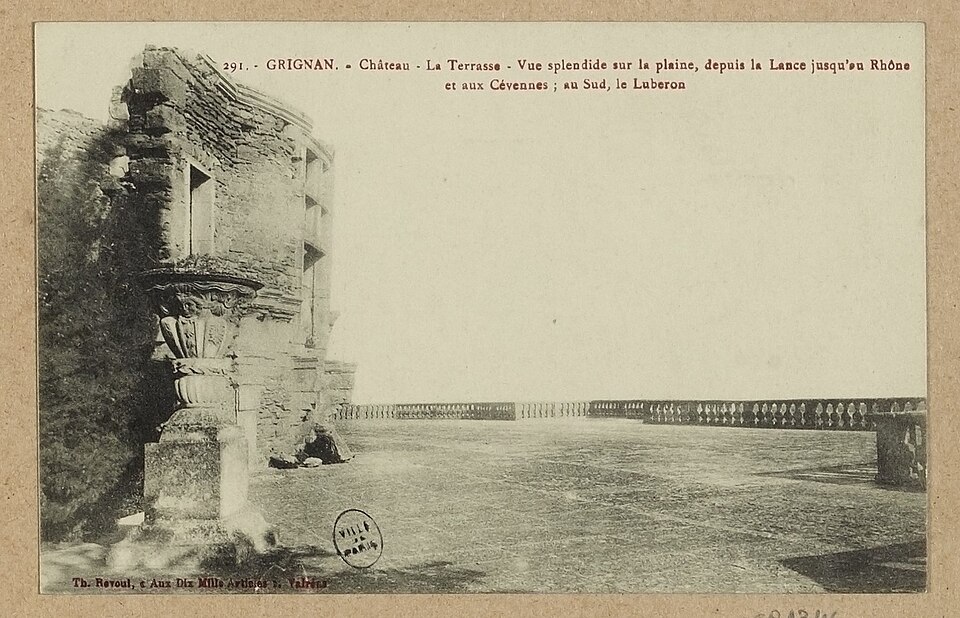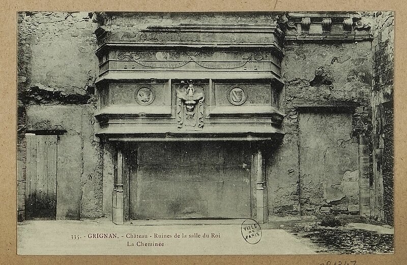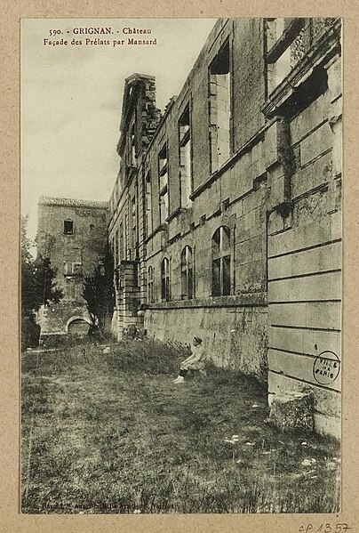 Le site de Grignan occupe d'abord un domaine agricole gallo‑romain devenu dépendance de l'évêque de Die. Une fortification est attestée dès le Xe siècle et un château bâti vers l'an 1000 a depuis disparu ; l'enceinte en grand appareil pourrait dater du courant du XIe siècle. Dès 1106 la présence du château favorise le regroupement des habitations et une enceinte castrale est probablement édifiée au XIIe siècle. Dans la seconde moitié du XIIe siècle les Adhémar de Monteil s'implantent progressivement ; une branche cadette, les Adhémar de Grignan, détient la seigneurie en 1239. Pour assurer la sécurité de leurs terres, les seigneurs obtiennent en 1257 du comte de Provence le statut de terre adjacente de Provence, avec privilèges et autonomie fiscale et judiciaire. La seigneurie devient une baronnie à la fin du XIIIe siècle et, au XIVe siècle, les défenses des portes sont renforcées ; en 1410 les habitants de Grignan sont exemptés du service de garde de nuit au château. Aux XIIIe et XIVe siècles, les Adhémar font édifier l'ouvrage d'entrée, la nouvelle chapelle Saint‑Romain et une partie du logis seigneurial, puis renforcent l'ouvrage d'entrée et la poterne à la fin du XIIIe ou au début du XIVe siècle. Entre la fin du XVe et le début du XVIe siècle, Gaucher Adhémar fait doubler en profondeur le logis seigneurial, ajoute une galerie reliée par un escalier droit à la chapelle et aménage de nouveaux appartements. Louis Adhémar poursuit au XVIe siècle la transformation du château : le maître‑maçon Anthoine Soysson est associé aux travaux, la cour du puits est réalisée vers 1540‑1545 et la terrasse qui couvre l'église est contemporaine de ces aménagements. La façade sud dite « François Ier » est entreprise au milieu du XVIe siècle ; la façade méridionale, construite entre 1551 et 1558, reprend un vocabulaire Renaissance entre deux tours médiévales réaménagées. Au XVIIe siècle des percements classiques sont ouverts sur l'aile sud et, entre 1684 et 1693, l'aile dite des prélats est édifiée pour Jean‑Baptiste, archevêque d'Arles, et Louis‑Joseph, évêque de Carcassonne, Florent Loiseleur figurant parmi les maîtres‑maçons. Madame de Sévigné séjourne à trois reprises au château et y meurt le 17 avril 1696 ; elle est inhumée dans la collégiale Saint‑Sauveur. Aux XVIIe et XVIIIe siècles le château est adapté aux besoins résidentiels ; les propriétaires Félix du Muy n'y effectuent que peu de modifications, hormis la suppression du pont‑levis. À la Révolution le château subit une destruction systématique à partir de 1793‑1794 : la toiture et de larges portions de la grande façade sont abattues et les matériaux vendus aux enchères, tandis que le mobilier est dispersé. En 1794 le domaine est restitué au général du Muy mais demeure en ruine et fait l'objet de pillages. À partir de 1838 Léopold Faure engage des consolidations et des restaurations, notamment sur le châtelet d'entrée, et entreprend des consolides en style néo‑gothique et la création d'une tour au nord‑ouest. Au début du XXe siècle le comte Boniface de Castellane puis son cousin Raymond dispersent des éléments architecturaux ; Marie Fontaine, propriétaire de 1912 à 1937, finance ensuite une importante restauration des ruines de 1913 à 1920 sous la direction de l'architecte J.-F. Julien, à l'exception des ruines de la chapelle Saint‑Romain et de l'extrémité nord de l'aile des prélats. Les restitutions menées sous l'impulsion de Marie Fontaine et de Mgr Meffre cherchaient une grande fidélité documentaire, mais certaines reconstitutions, notamment de la façade sud, ont été critiquées par des analyses ultérieures. Le château conserve des éléments remarquables, comme la tour Sévigné et des vestiges Renaissance, et a été protégé par des inscriptions et classements successifs (éléments inscrits en 1947, inscription du château, du parc et des terrasses en 1987, classement d'éléments supplémentaires en 1993). Le rez‑de‑chaussée de l'ouvrage d'entrée a été aménagé pour l'accueil du public en 1992 et le site présente aujourd'hui des pièces et collections au visiteur.