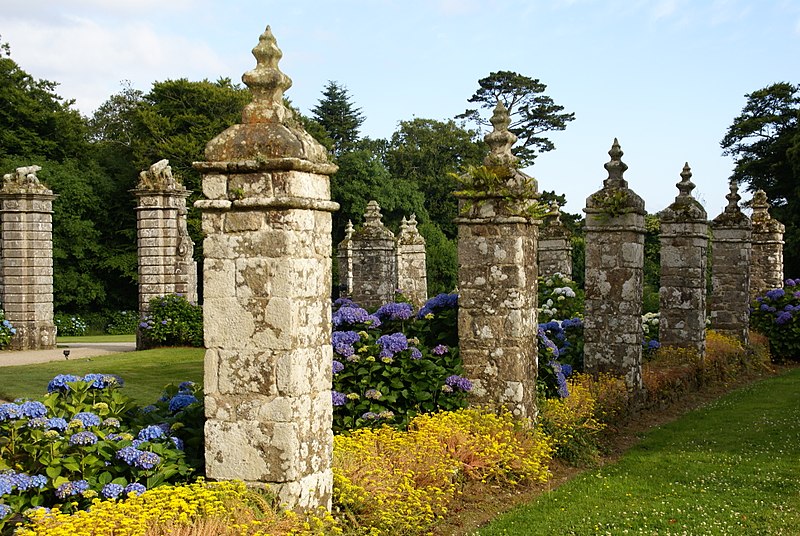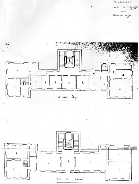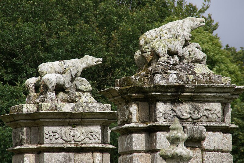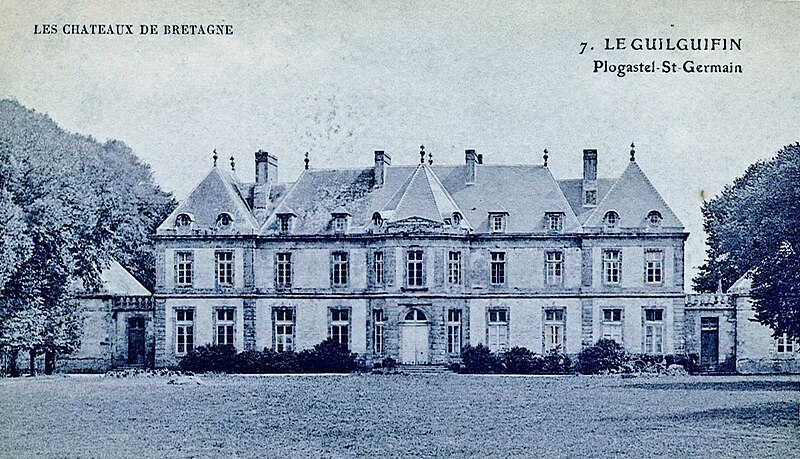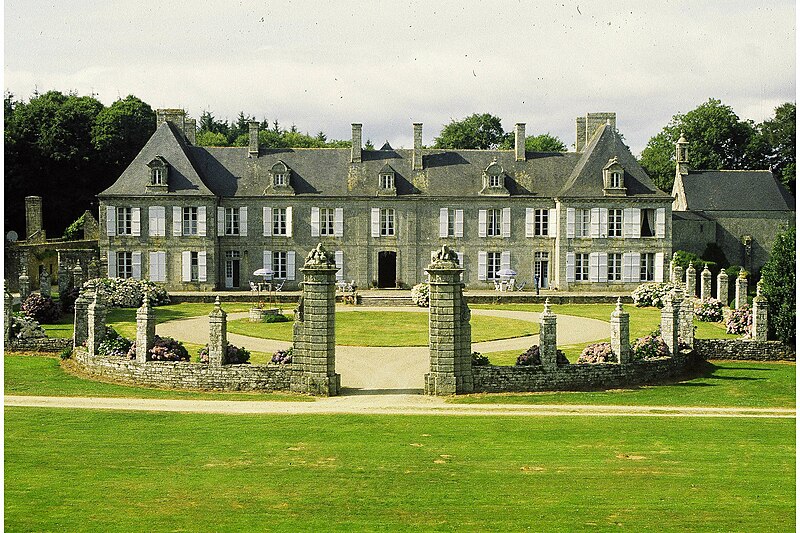 Le château et le parc, à savoir : les façades et les toitures du logis, l'escalier intérieur et sa rampe en fer forgé, les deux salons de part et d'autre du hall d'entrée (grand salon et salle à manger) ; les façades et les toitures des communs et de la chapelle (cour nord) ; la cour d'honneur avec sa clôture (cour sud) , ainsi que le pigeonnier, la fontaine, le bassin et le pédiluve à chevaux situés dans le parc (sud-est) , le jardin clos de murs à l'est du logis, les allées formant la patte d'oie avec leurs abords boisés à savoir l'allée sud-est jusqu'à la fontaine, l'allée est jusqu'aux vestiges archéologiques inclus, les allées sud, sud-ouest et ouest jusqu'au chemin périphérique desservant le hameau de Kernévez, le tapis vert et ses deux clôtures, l'allée d'arrivée au château y compris les deux piliers d'entrée placés en bordure de la route départemantale n° 784 jusqu'au hameau de Véloury et Le Cosquer, l'allée ouest en cours de reconstitution, la parcelle boisée au nord du château y compris le mur nord longeant la route nationale et les vestiges archéologiques qu'elle contient (cad. B 748, 750, 812, 96, 81, 82, 177, 178, 180, 181, 209, 210, 602, 609, 726, 732, 734, 739, 741, 743, 791, 793, 795, 797, 809, 813, 15, 20, 22, 28, 70, 71, 73 à 76, 85, 86, 93, 176, 545, 727, 733, 735, 744, 792, 794, 796, 811, 814, 829, 830, 831, 833, 100, 789, 21, 29, 798, 34, 31, 606, 608) : inscription par arrêté du 7 août 2002
