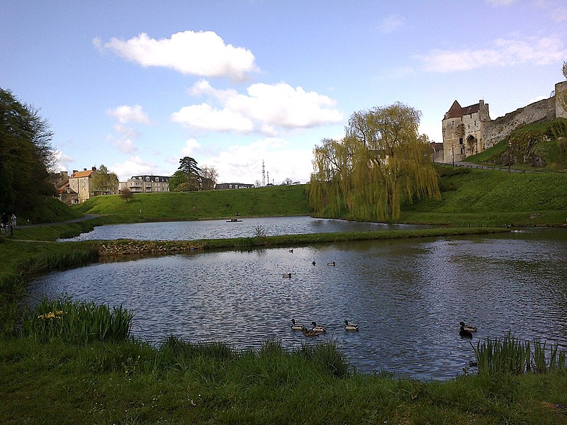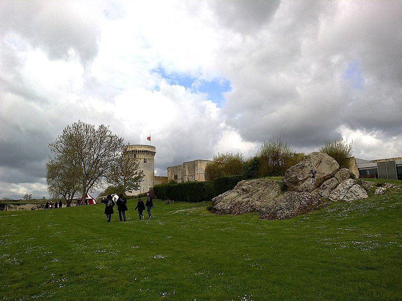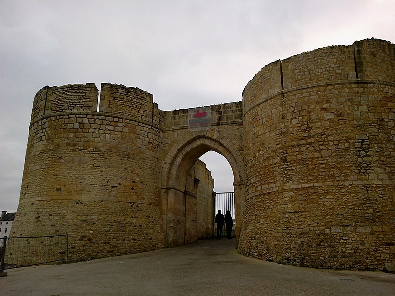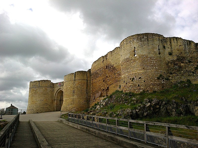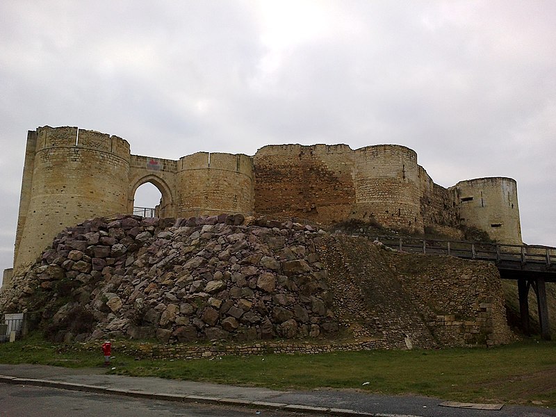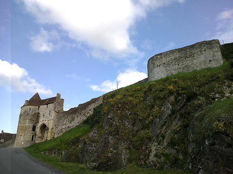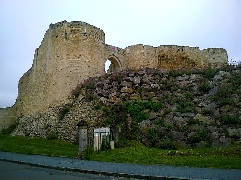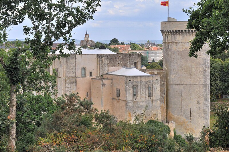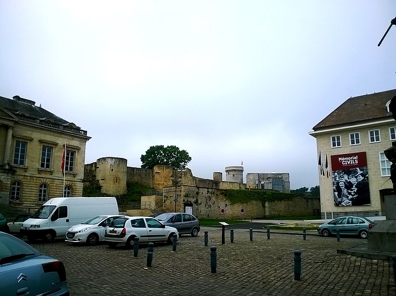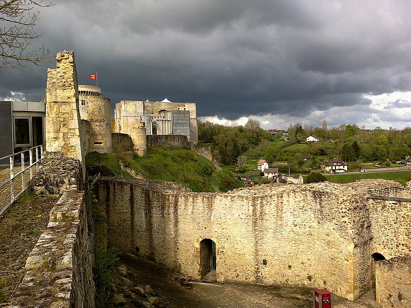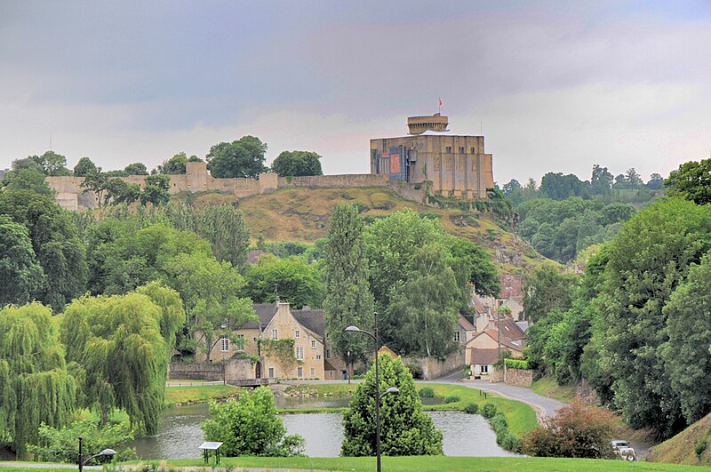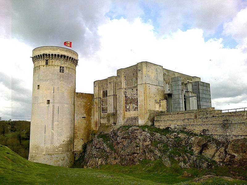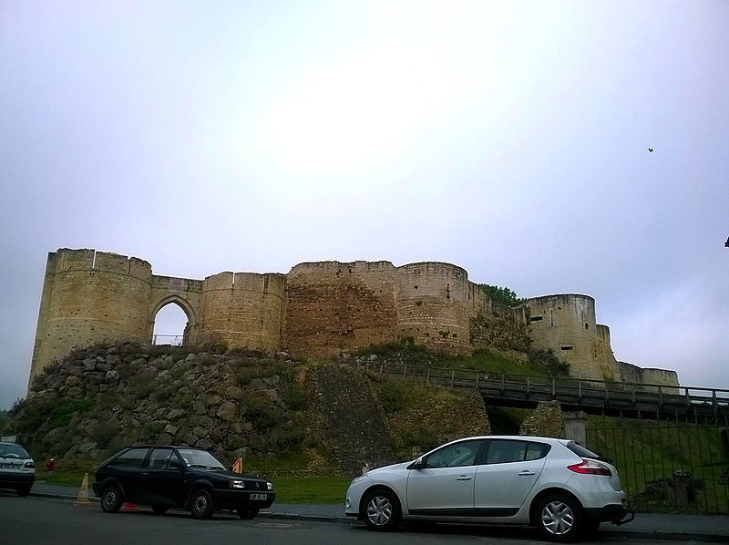 Le château Guillaume-le-Conquérant, perché sur un éperon schisteux dominant la cluse de l'Ante à Falaise (Calvados), est un ancien château fort célèbre comme lieu de naissance de Guillaume le Conquérant et comme résidence princière. Propriété de la commune, il est classé au titre des monuments historiques (liste de 1840). Les premières fortifications en pierre datent du Xe siècle ; les vestiges visibles relèvent surtout des XIIe, XIIIe et XVe siècles. Au XIe siècle une enceinte maçonnée fut établie, puis Henri Ier Beauclerc fit ériger vers 1123 un grand donjon-palais quadrangulaire de tradition anglo-normande. Ce grand donjon repose sur des fondations antérieures, mesure 26,60 m de long sur 22,80 m de large, s'élève à 22 m et présente des murs de 3,15 à 3,50 m d'épaisseur, des contreforts et un accès volontairement difficile. L'organisation intérieure combine fonctions résidentielles et défensives : la grande salle, la chambre seigneuriale et une chapelle palatiale dédiée à saint Prix occupaient l'étage ducale, l'étage supérieur abritait la garnison et la toiture servait de poste de guet. Un second donjon quadrangulaire, dit « petit donjon », ajouté au XIIe siècle, offre environ 14 m sur 10 m pour 14 m de hauteur ; il est davantage domestique, communique avec la grande salle et comporte de grandes baies, une cheminée ornée et une tourelle attenante dont la fonction reste incertaine. Vers 1207, après l'annexion de la Normandie par le roi de France, la tour Talbot, de plan circulaire et strictement défensive, fut élevée ; elle a 15 m de diamètre, 30 m de hauteur et des murs d'environ 4 m d'épaisseur. L'ensemble est complété par une enceinte du XIIIe siècle, d'environ 600 m de périmètre et flanquée d'une quinzaine de tours, précédée autrefois d'étangs défensifs ; l'esplanade accueillait autrefois la chapelle, le logis du gouverneur, des casernes, des ateliers et des écuries. Le château a servi de place forte, de prison d'État et de résidence ; il connut plusieurs sièges pendant la guerre de Cent Ans et les conflits ultérieurs. Abandonné au XVIIe siècle, il fut utilisé comme carrière de pierre et ses étages supérieurs furent arasés ; un collège occupa la basse-cour à partir de 1809 jusqu'à la destruction de certains bâtiments et de la chapelle romane Saint-Nicolas lors des combats de 1944. À partir de 1864 l'architecte Victor Ruprich-Robert mena des travaux de restauration qui contribuèrent à sauver les donjons. Des aménagements destinés au public furent réalisés entre 1987 et 1997 sous la conduite de Bruno Decaris, qui ajouta un avant-corps contemporain abritant un escalier et une réplique de pont-levis, choix ayant suscité des controverses et des procédures judiciaires. Depuis la fin des années 2000 l'enceinte a été restaurée pour restituer l'aspect défensif du site et, en 2013, une nouvelle scénographie a introduit des tablettes HistoPad et des lunettes stéréoscopiques HistoCam permettant de superposer reconstitutions médiévales et vues actuelles. Les donjons, lisibles dans leurs volumes et leurs dispositifs, témoignent des différentes étapes de l'architecture castrale et des usages successifs du lieu. Le château est aujourd'hui ouvert à la visite.