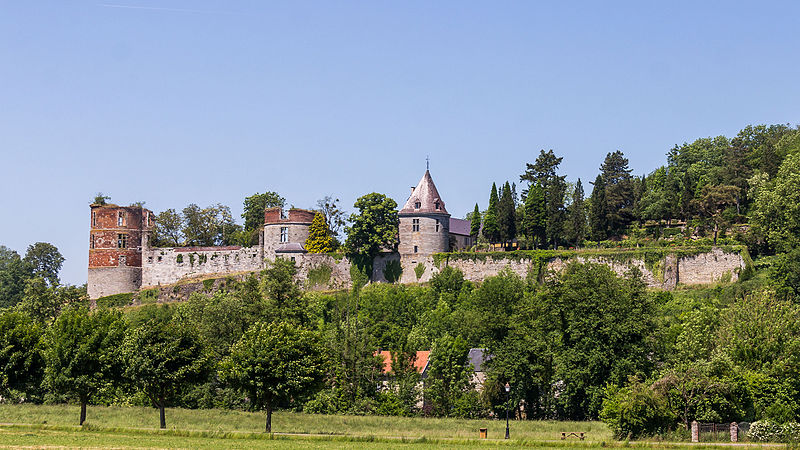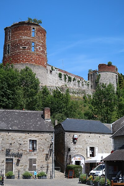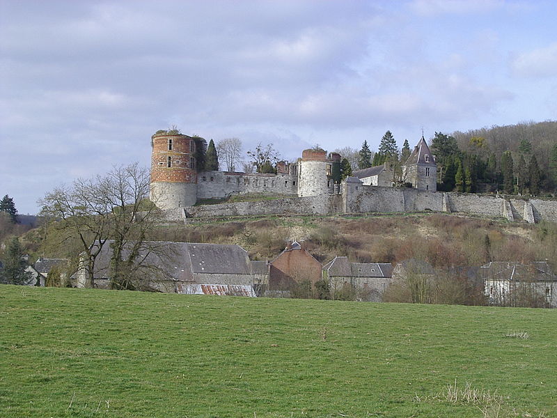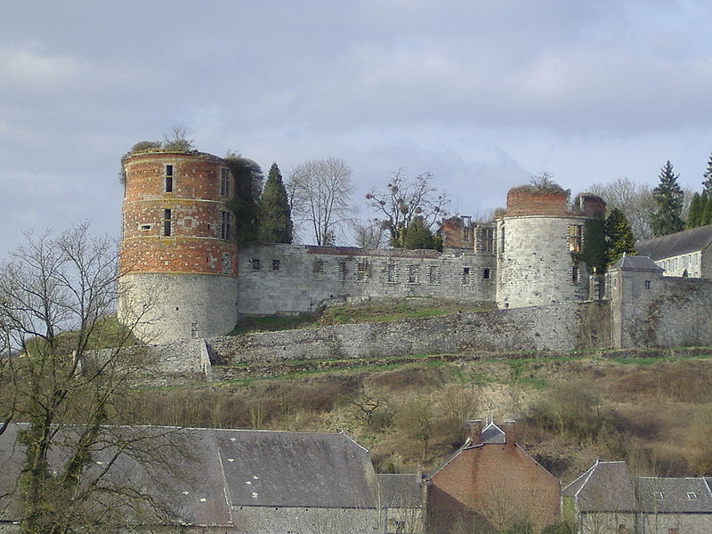 Le château de Hierges est un château fort perché sur un éperon rocheux à la sortie de la vallée de la Joncquière, près de la frontière franco-belge, dans le département des Ardennes. Il contrôlait la voie commerciale reliant Saint-Quentin à Cologne ainsi que la vallée de la Meuse. Les ruines du château, l'ancien commun et le colombier — les ruines datant de la deuxième moitié du XVIe siècle et le commun et le colombier du XVIIIe siècle — sont classés au titre des monuments historiques par arrêté du 30 décembre 1980. Le site est une propriété privée. Le château a été construit sur l'emplacement d'un castrum dont les origines remonteraient au IXe siècle. Au Xe siècle, la seigneurie de Hierges faisait partie des biens de la maison d'Ardenne. À l'époque des croisades, la forteresse fut rattachée à la principauté de Liège puis, au XIIe siècle, le château aurait été détruit. L'édifice est presque totalement détruit au XVIe siècle et reconstruit, à partir de 1560, dans le style Renaissance avec des aménagements de confort et des ouvertures pour armes à feu. Au XVIIIe siècle sont édifiés l'ancien commun et le colombier. Le château est assailli en 1792 par les révolutionnaires, puis détruit par un incendie le 18 novembre 1793. Des murs d'enceinte et trois grosses tours rondes de flanquement, datées des XIIIe–XVIe siècles, subsistent partiellement en ruines. Ces constructions sont en brique rouge et en pierre bleue, tandis qu'une quatrième tour semi-circulaire, couverte et en pierre bleue de Givet, est habitée par le propriétaire actuel. Le positionnement des bouches à feu sur les tours permettait le croisement des tirs pour assurer une protection mutuelle. Certaines fenêtres présentent des traverses ou des croisées. Les jardins extérieurs ont été remis en état pour retrouver l'aspect qu'ils avaient à la Renaissance. Parmi les personnages liés au château, Héribrand II de Hierges, mort en 1117, était fils d'Héribrand Ier de Saussure, seigneur de Hierges, et d'Hedwige d'Orchimont ; il épousa Hodierne de Rethel, sœur du roi Baudouin II de Jérusalem, et eut un fils, Manassès, qui fut connétable du royaume de Jérusalem de 1144 à 1152. D'autres noms associés au lieu sont Mélusine de Hierges, Albert II de Hierges et Jacques Pirenne. La légende veut que la fée Mélusine ait bâti le château en une nuit et que celui-ci comptât 365 fenêtres ; Mélusine de Hierges, appelée aussi Sybille de Lusignan, est présentée comme une descendante de la fée et aurait été châtelaine de Samson. Selon certaines sources, Mélusine serait morte de la peste en 1190 devant Saint-Jean-d'Acre ou en 1187 en ses terres de Samson. Une autre tradition raconte que, lors de la première croisade, les épouses infidèles des fils du seigneur de Hierges furent changées en pierre et devinrent les « Dames de Meuse », trois énormes rochers qui surplombent la Meuse à Laifour.