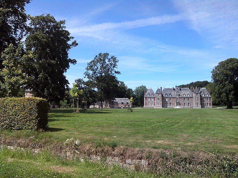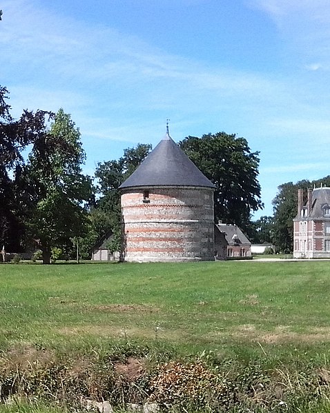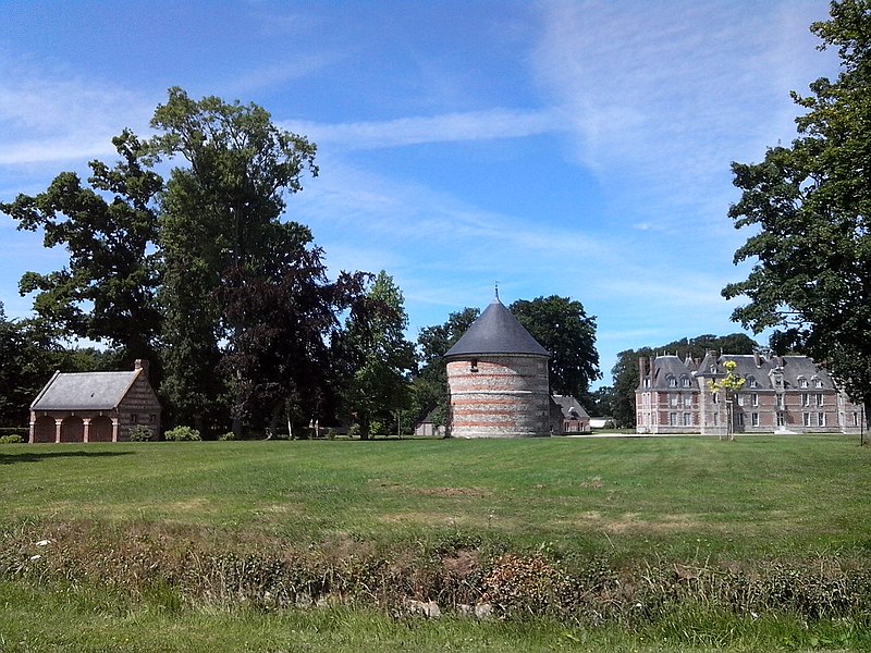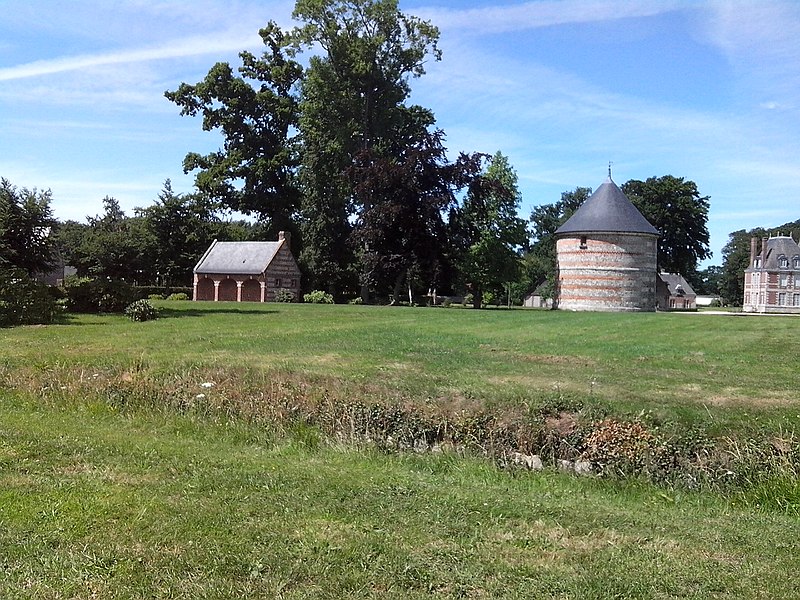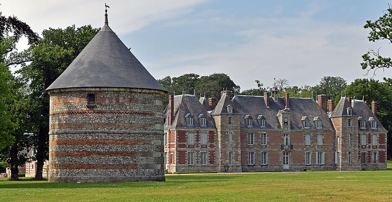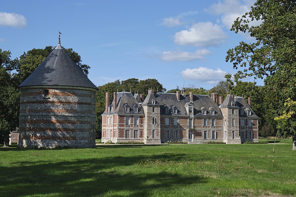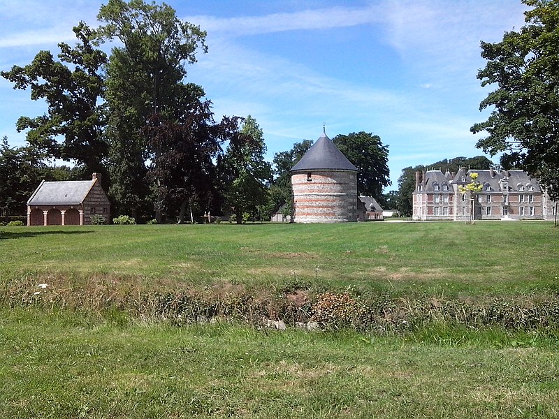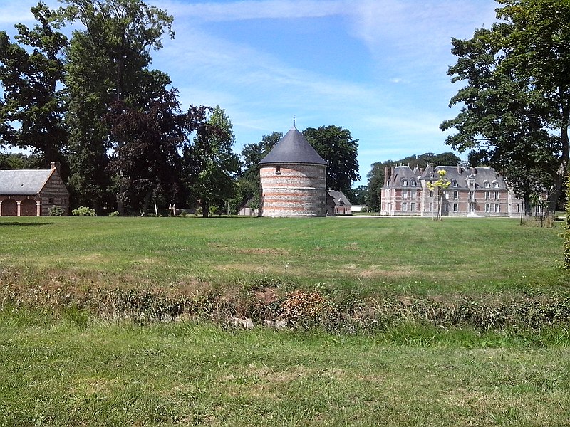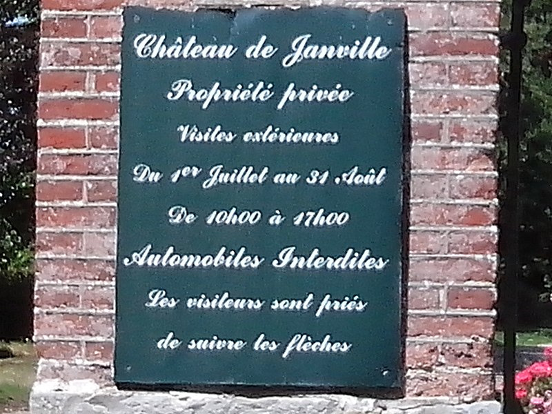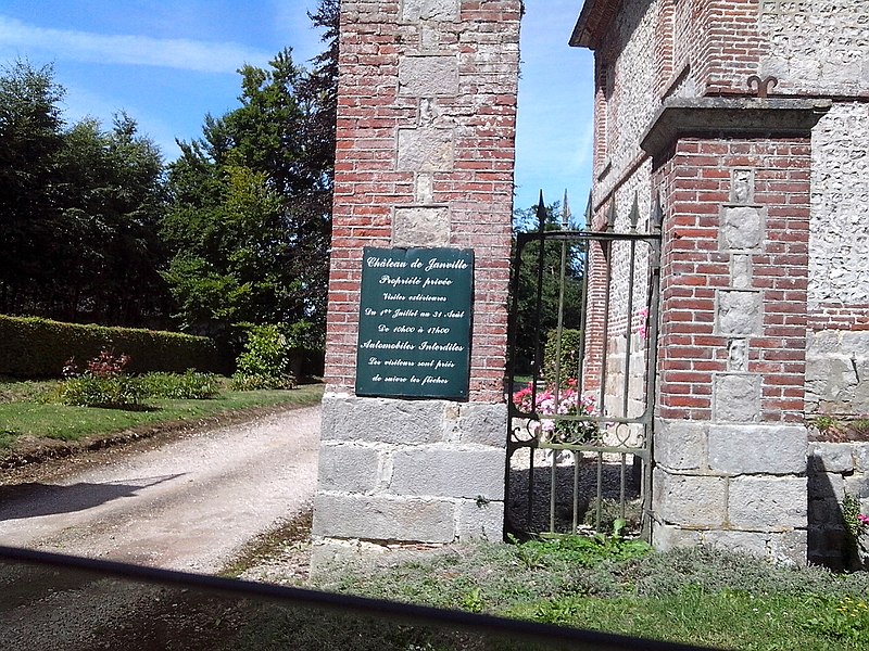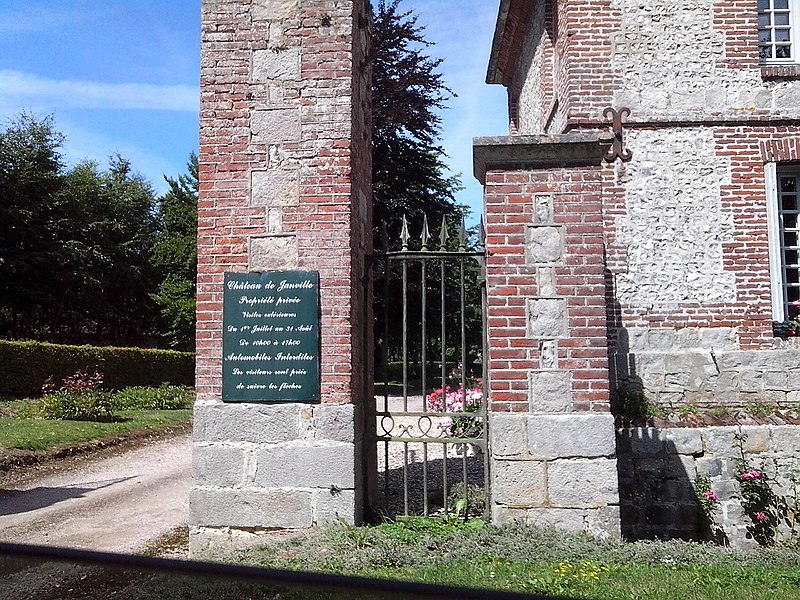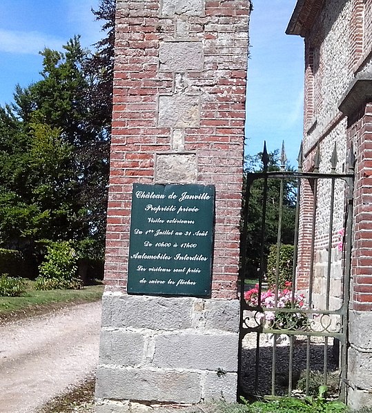 Le château de Janville, situé dans le hameau éponyme de la commune de Paluel (Seine‑Maritime), est une demeure privée du début du XVIIe siècle, partiellement inscrite au titre des monuments historiques et non ouverte au public. Le fief de Janville a été érigé en 1582. La demeure actuelle a été construite au premier quart du XVIIe siècle par Jean Louvel, conseiller‑secrétaire du roi à la chancellerie du Parlement de Rouen, qui avait acquis la terre de l'abbaye de Fécamp et avait été anobli par lettres patentes de décembre 1576. Le château est resté dans la famille Louvel jusqu'à la fin du XIXe siècle. Parmi ses occupants figurent Louis‑François‑Pierre Louvel de Janville, maire de Caen et président du conseil général du Calvados, et Sybille Gabrielle Riquetti de Mirabeau, comtesse Martel de Janville, romancière connue sous le pseudonyme de Gyp. En 1890, le domaine fut acquis par le baron de Sancy de Rolland. Vers 1895, les ailes et les tourelles postérieures ont été reconstruites, apportant des adjonctions au style plus classique. Pendant la Seconde Guerre mondiale, le château fut occupé successivement par une Kommandantur allemande puis par la 89e division d'infanterie américaine. Le corps de logis conserve un style Renaissance ; la maçonnerie mêle grès, silex et brique et présente des décors en brique émaillée. Le bâtiment, entouré d'un parc et cantonné d'étroits pavillons saillants, est complété par un colombier portant la date de 1781. Les façades et toitures du bâtiment central, à l'exclusion des pavillons d'extrémité, le grand salon avec son décor et le colombier ont été inscrits aux monuments historiques par arrêté du 19 août 1975. Le parc, accessible sous conditions par un portail en fer monté sur des piliers en briques, comprend un pavillon d'entrée, des bâtiments annexes à usage agricole et divers aménagements ; il n'est pas entièrement ceint de murs, ce qui permet d'observer le domaine depuis l'extérieur en en faisant le tour à pied.