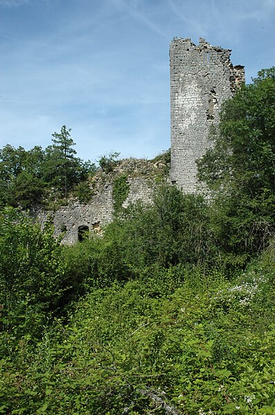 Les ruines du château de Jasseron se dressent sur une crête du Revermont, à 1 kilomètre au nord‑est de l'église, sur la commune de Jasseron (Ain, Auvergne‑Rhône‑Alpes). Édifié au Xe siècle, reconstruit au XIIIe siècle et ruiné à la fin du XVIe siècle, il fut le centre de la seigneurie de Jasseron. Vers 980–990, Richier de Coligny en fit don à l'abbaye de Saint‑Claude, qui le conserva jusqu'au début du XIIIe siècle ; vers 1212 l'abbé Bernard III de Thoire l'engagea à Étienne II de Thoire‑Villars, puis il fut inféodé en 1231 à Amé de Coligny, qui l'aurait fait reconstruire vers 1230. Une fondation de prieuré et d'une chapelle fut établie dans la basse‑cour (la chapelle a été arasée au XIXe siècle) ; en 1300 l'abbaye céda tous ses droits sur la moitié du château et la seconde moitié fut vendue après 1304 au comte de Savoie Amédée V, tandis que des réparations furent attaquées en septembre 1307 par le sire de Thoire‑Villars. Le fief connut d'autres transferts (notamment Joachim de Rye, Ferdinand de Longwy, François de Créquy de Bonne, Rostain d'Urre, la famille Perrachon puis les Grollier) et le château était déjà en ruine en 1601. L'ensemble se compose d'un donjon en forme de fer à cheval dominant une enceinte quadrangulaire, de logis organisés autour d'une cour et, au sud, d'une vaste basse‑cour ceinte de braies et renforcée par des tours carrées et hexagonales attribuées peut‑être au XIVe siècle. Le site illustre le type classique de motte castrale bipartite, avec un tertre tronconique artificiel, une grande basse‑cour et, dans celle‑ci, des vestiges d'un prieuré médiéval, d'une grange ou cellier voûté et les soubassements d'une chapelle. Les restes du château sont inscrits au titre des monuments historiques par arrêté du 22 février 1927.