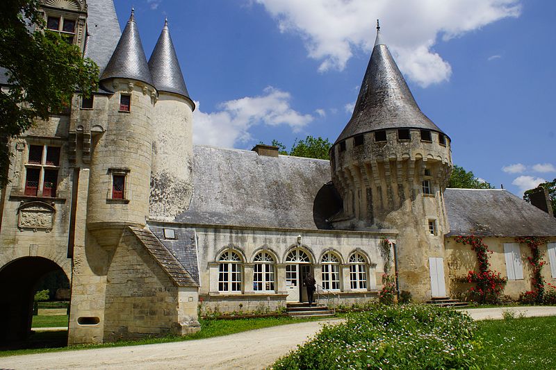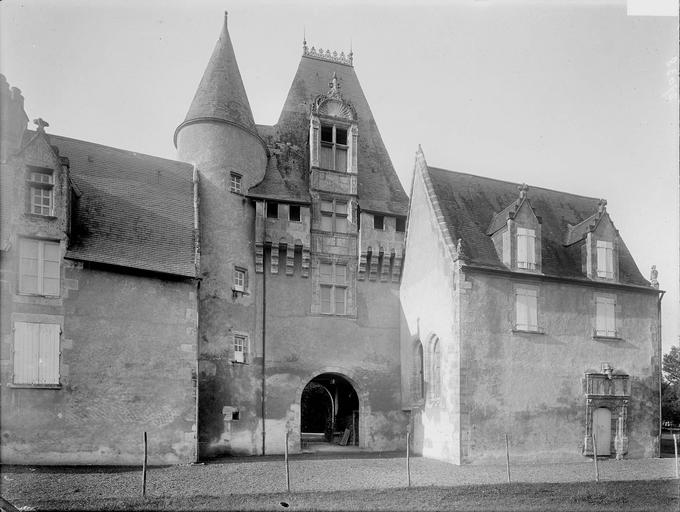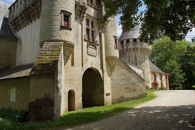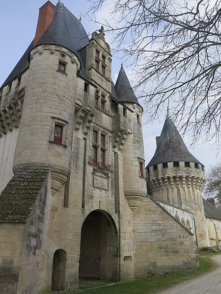 Édifié au XVIe siècle par un architecte tourangeau en pierres de tuffeau et couvert d’ardoises, il rappelle la silhouette des petits châteaux de la Loire. Le châtelet d’entrée combine des traits féodaux et des éléments Renaissance : une tour carrée flanquée de tourelles domine le site et ses environs, tandis que des fenêtres à meneaux aux décors Renaissance ornés interrompent les coursives sur les façades. Le porche conserve les traces de l’ancien pont‑levis et des nombreux passages de charrettes et de piétons et donne accès à la cour intérieure, aujourd’hui symbolisée par une haie d’ifs évoquant quelques‑unes des tours originelles. Une unique tourelle d’escalier en vis dessert l’ensemble des pièces, la chapelle offre une porte sculptée de style Renaissance et de beaux vitraux récemment restaurés, et la grosse tour d’angle, entourée d’un chemin de ronde à larges créneaux et surmontée d’une haute toiture conique, présente des mâchicoulis remarquables. La visite fait également ressortir l’exceptionnelle charpente d’origine. Accolée au corps de l’ancien logis seigneurial entre les deux tours, l’orangerie du XIXe siècle accueille les visiteurs, et l’aile droite ajoutée en 1820 offre un espace d’expositions pour artistes et associations locales.