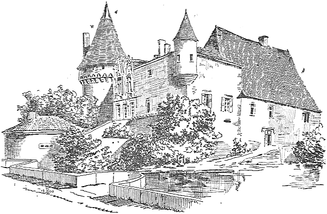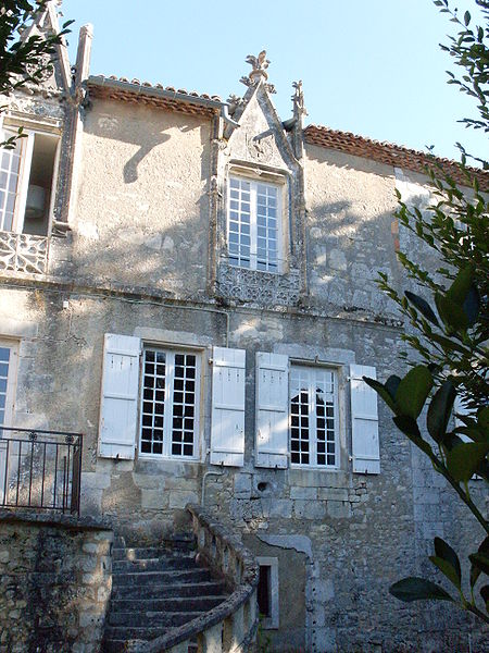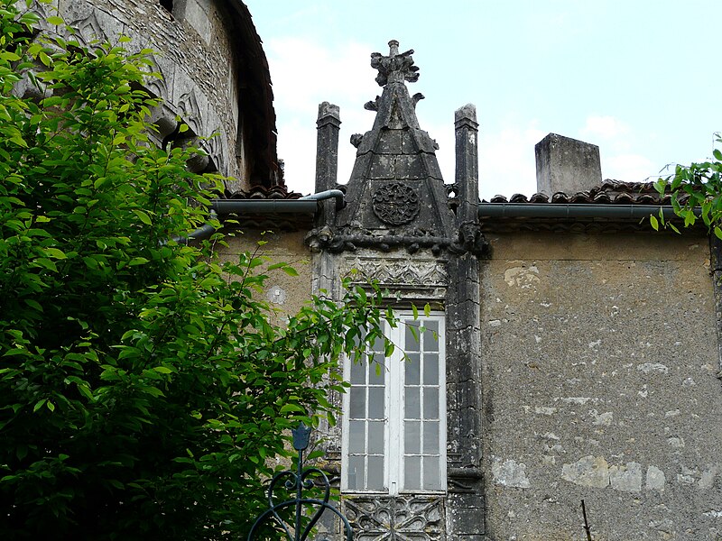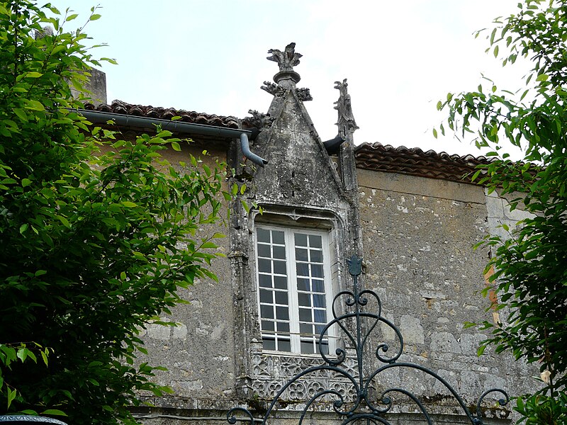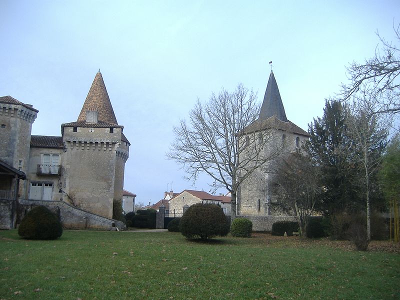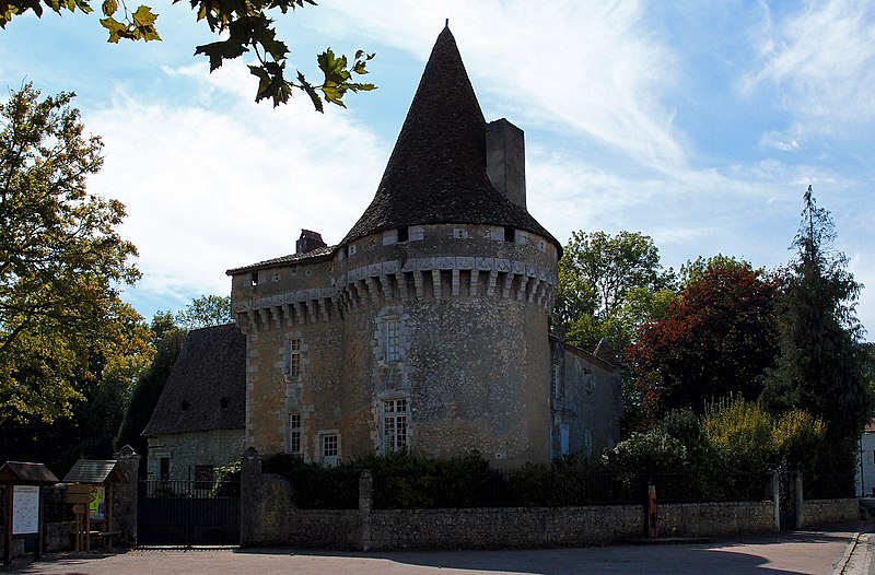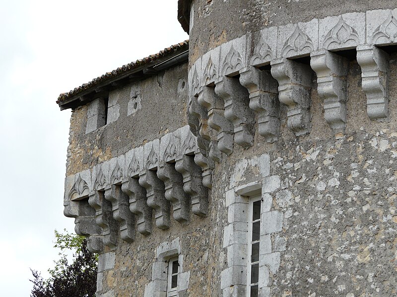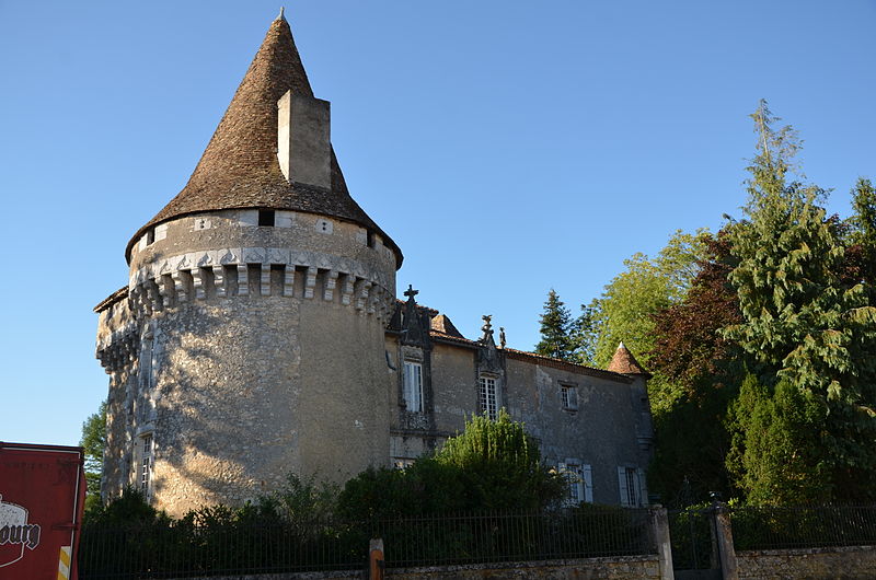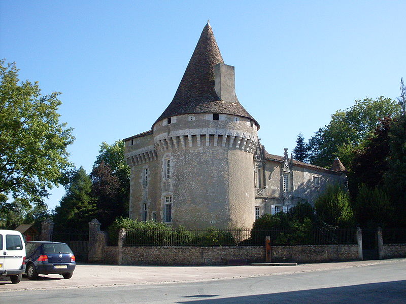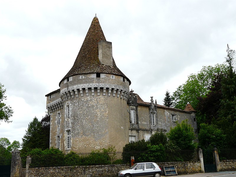 La seigneurie dépendait de la baronnie de Nontron et avait pour suzerains les vicomtes de Limoges. Le château a été reconstruit vers 1498 par Dauphin Pastoureau, maître de forge à Nontron. Une description de 1730 indique qu'il comportait alors trois tours, carrées et rondes. En 1888, le donjon, haute tour carrée, n'existait déjà plus. L'édifice actuel se compose de deux corps de logis en retour d'équerre, reliés par une tour polygonale à mâchicoulis qui renferme l'escalier desservant les deux bâtiments. Le logis ouest, rehaussé à la fin du XIXe siècle, devait à l'origine posséder un chemin de ronde qui prolongeait celui de la tour ronde. À l'angle nord-ouest de ce logis s'élève une grosse tour ronde à mâchicoulis ornés de trilobes et appuyés sur des corbeaux à trois redans.