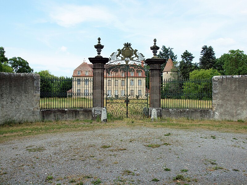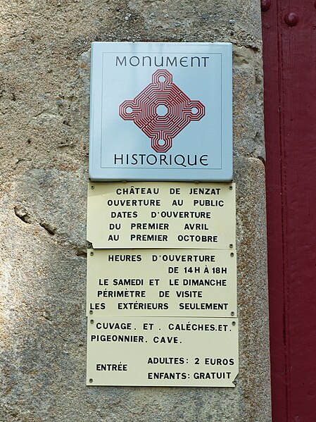 Le château de Jenzat, situé au cœur de la commune de Jenzat (Allier, Auvergne-Rhône-Alpes), occupe un parc accessible par une grille monumentale qui ouvre sur une allée menant au château classique. Le site comprend deux corps de logis distincts implantés dans le même parc : le « vieux château », dont la façade regarde vers l’est, et le château du XVIIIe siècle, orienté à 90° avec une façade donnant au sud. Trois états successifs se sont succédé sur ce lieu : un château primitif du XIIIe siècle dont subsiste une grosse tour ronde, une maison forte des XIVe–XVe siècles et le château classique de la seconde moitié du XVIIIe siècle. Le château classique, auquel on associe la famille de Jouvenel, possède des décors intérieurs remarquables — escalier à ferronnerie, boiseries et dessus-de-porte. Vers 1651, Blain de Chauvigny de Blot vendit un tiers du château à Gilbert de Champfeu, seigneur de Riage. En 1744, Guillaume du Jouhannel (1695-1772), magistrat et conseiller à la sénéchaussée d’Auvergne et au siège présidial de Riom — dont le père avait été anobli par une charge de secrétaire du roi — acheta la seigneurie. Son fils, Jean-Baptiste Julien, conseiller au parlement de Paris, fit construire le nouveau château et aménager des jardins à la française entre 1760 et 1780. Le domaine reste la propriété des descendants de cette famille, la famille de Roquefeuil. L’édifice a été classé au titre des monuments historiques en 1995.