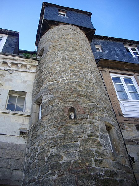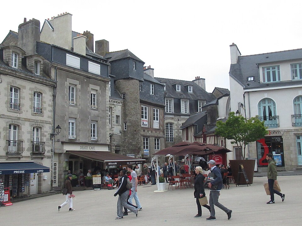 Le château de l'Hermine occupe l'emplacement de l'ancienne résidence des ducs de Bretagne, édifiée par Jean IV dans les années 1380 face au parc de la Garenne. Il s'appuyait sur une enceinte agrandie et comprenait un corps de logis flanqué de deux grosses tours. Dans une cave transformée en chaufferie, sont conservés les vestiges de la base du passage de la poterne qui se trouvait entre ces deux tours. Au XVe siècle, le chantier se poursuit avec la construction des écuries ducales à l'ouest de la basse-cour, de la tour du Connétable sur l'enceinte et de la chapelle des Lices à l'ouest de la place des Lices. Les archives et les fouilles de la halle des Lices en 2000 ont révélé en partie la configuration de la basse-cour, ses écuries et les services de l'hôtel ducal, situés au nord du corps de logis. Après 1460, le départ de l'administration ducale pour Nantes entraîne l'abandon du projet de logis au pied de la tour du Connétable et, plus largement, le recul de l'entretien du château. En 1697, Louis XIV cède l'édifice à la communauté de Vannes, qui réemploie ses pierres pour restaurer les murailles près de la porte de Calmont et pour construire le quai Billy sur le port. La basse-cour est afféagée en 1637 au sieur de Rosmadec, qui y fait édifier son hôtel entre 1643 et 1649 en s'appuyant sur le soubassement des anciennes écuries datées d'environ 1450. Julien Lagorce, traiteur pâtissier, achète en 1784 les deux tours déjà partiellement arasées ; en 1798 il fait démolir l'ancien château et construit à leur emplacement un hôtel dans lequel il tient un restaurant réputé sous le Consulat, établissement qui ferme en 1803. Le bâtiment change de mains en 1854 puis est acquis par l'État en 1876 pour y installer l'École d'Artillerie du XIe corps d'armée. À cette époque sont effectuées des modifications : surélévation des combles et du pavillon central avec transformation des toitures et réaménagements intérieurs, dont probablement les escaliers. De 1926 à 1974, le château de l'Hermine accueille la Trésorerie générale du département. En 1976, la ville de Vannes devient propriétaire et affecte le bâtiment successivement à l'École de droit du Morbihan, puis à diverses activités associatives et culturelles. Par ailleurs, une maison située au 11 place des Lices, inscrite aux monuments historiques, est construite autour d'un escalier à vis inclus dans une tour extérieure ; cette tour fait l'objet d'une inscription au titre des monuments historiques depuis le 17 avril 1931. L'édifice se présente ainsi comme un corps de logis enserrant une tour cylindrique.