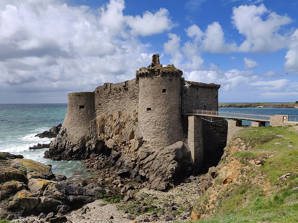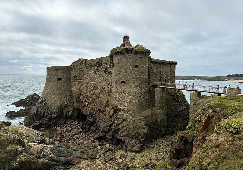 Le Vieux Château est un château fort édifié au XIVe siècle sur l'île d'Yeu ; il couvre trois siècles de l'histoire insulaire et a été classé au titre des monuments historiques en 1900. Le site avait été occupé longtemps par des fortifications en bois. Vers la fin du Xe siècle, des moines clunisiens construisent une forteresse en bois à cet emplacement, alors sous la domination des seigneurs de La Garnache. Au début du XIVe siècle, les sires de Belleville contrôlent la région et en 1320 Jeanne de Belleville hérite des fiefs. Jeanne, réputée femme de caractère selon le chroniqueur Froissard, a probablement décidé de remplacer la forteresse en bois par un château de pierre établi sur le roc. En 1330 elle épouse Olivier IV de Clisson, grand chef de guerre et constructeur, qui apporte des aménagements au château pour compléter son réseau défensif et assurer la sécurité des habitants en cas d'invasion. En 1355 le corsaire anglais Robert Knolles s'empare du château et occupe l'île pendant trente-sept ans, avant que l'île ne soit reprise aux Anglais en 1392 lors de la reconquête du Poitou par le connétable Olivier V de Clisson. À la Renaissance, Jean V de Rieux fait entourer le château d'enceintes bastionnées réalisées par des ingénieurs italiens ramenés par François Ier, suivant des modèles italiens ensuite perfectionnés par Vauban. En 1550 plusieurs milliers de soldats espagnols venus du nord sont repoussés par la garnison sous ces fortifications. Devenu obsolète avec la construction de petits forts côtiers entre 1654 et 1660, le Vieux Château est démantelé à la fin du XVIIe siècle sur ordre de Louis XIV, qui craint qu'il ne serve de point d'appui à l'ennemi. Dans les années 1970, Maurice Esseul, natif de l'île, entreprend des fouilles puis la restauration du château ; il y donne régulièrement des conférences et organise des visites quotidiennes. Le château est implanté sur un rocher abrupt et isolé du rivage ; aux grandes marées l'eau monte jusqu'à ses murs et forme une douve naturelle. Il est flanqué de quatre tours circulaires et l'accès se fait par un pont dormant suivi d'un pont-levis. À l'entrée, une grosse tour cylindrique domine le pont-levis ; à droite se trouve une tour en fer à cheval et une tourelle engagée encadre la porte avec la grosse tour. Derrière la courtine s'étendaient le logis seigneurial et un chemin de ronde couvert sur mâchicoulis. Sur la pointe face à la mer se trouvait le donjon, une large tour cylindrique orientée au sud et munie d'un escalier extérieur au niveau des rochers ; une petite tour quadrangulaire l'accompagnait à l'intérieur des fortifications. Une tour octogonale flanquait l'angle ouest. Dans la cour, une forge adossée à la courtine sud-est faisait face à un bâtiment appuyé contre la tour octogonale qui abritait la cuisine, la boulangerie et le four, et une cuve souterraine y recueillait les eaux pluviales. Selon Charles Dierick, membre des Studios Hergé, l'île et le château présentés dans L'Île Noire ne correspondent pas à l'île d'Yeu ni au Vieux Château. Le Vieux Château a également servi de décor à des scènes du film Les Vacances du petit Nicolas (2014).