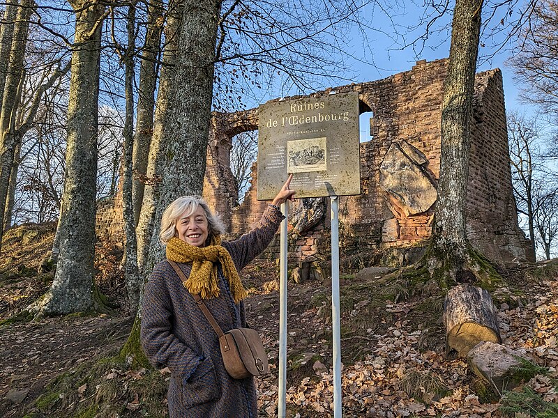 Le château de l’Œdenbourg, parfois appelé Petit-Koenigsbourg, est un monument historique situé sur la commune d’Orschwiller, dans le Bas-Rhin, à quelques centaines de mètres et à environ 200 m du Haut-Koenigsbourg. Consolidé au début du XXe siècle par Bodo Ebhardt lors de la restitution du Haut-Koenigsbourg, il dépendait autrefois de l’État (ministère de la Culture) avant que la propriété ne soit transférée au département le 1er janvier 2007. Le site est classé depuis le 9 novembre 1937 ; les ruines ont été inscrites à l’inventaire supplémentaire des monuments historiques par arrêté du 10 septembre 1991 puis classées par arrêté du 11 février 1993. Installé sur un promontoire qui permet de surveiller le val de Villé, le val d’Argent et la plaine du Rhin vers l’est, il offre cependant une vue partiellement obstruée par le rocher du Haut-Koenigsbourg, dont la position est plus avantageuse. Le nom Œdenbourg est la contraction de l’allemand der oden burg, « le château abandonné », appellation attestée pour la première fois en 1417. Le site fortifié est mentionné dès 1147 par le moine Eudes de Deuil sous le nom d’Estuphin, puis apparaît sous les formes Kunigesberg ou Königsburg à partir de 1187, dénominations qui, au Moyen Âge, pouvaient désigner l’ensemble du complexe fortifié et non une partie précise. Avant la construction du château actuel, le lieu avait déjà été occupé au moins depuis le IXe siècle par une fortification située quelques dizaines de mètres à l’est, dont le fossé pourrait être plus ancien. Le château connu aujourd’hui a été édifié au XIIIe siècle : ses caractéristiques et les céramiques retrouvées lors de fouilles indiquent un donjon construit dans la première moitié du XIIIe siècle et le reste de l’enceinte bâti dans la seconde moitié, probablement vers 1250 pour la bastille destinée à dédoubler ou à servir de siège au Haut-Koenigsbourg. Vers 1300, il a été agrandi par l’adjonction d’un logis dont les murs faisaient partie de l’enceinte ; il est en ruine depuis le XVIIe siècle. Des transformations postérieures, mal datées, ont modifié notamment la partie occidentale pour changer l’accès au château. Des carreaux de poêle datés du début du XVe siècle montrent que le site était encore habité à cette époque, mais il est signalé comme abandonné dès 1417, lorsque la famille de Rathsamhausen se voit confirmer la propriété, et l’archéologie n’a mis au jour aucun élément postérieur à 1420. En 1504, Albrecht von Berwangen signale l’Œdenbourg comme un emplacement intéressant pour installer de l’artillerie en cas d’attaque contre le Haut-Koenigsbourg, ce qui entraîna l’occupation de la ruine par la garnison de ce dernier. Côté assaillant, le château présente un mur-bouclier — une muraille plus épaisse et plus haute que les autres — destiné à protéger les bâtiments intérieurs. Certaines parties de la ruine nécessitent des travaux urgents.