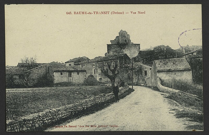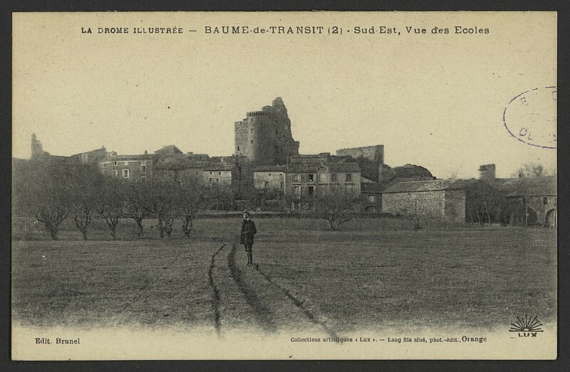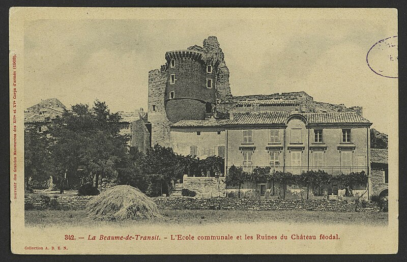 Le château de La Baume-de-Transit, situé dans la Drôme, est un édifice médiéval construit en plusieurs étapes entre le XIIe et le XVIe siècle. Les premières traces remontent au XIIe siècle. Lors des guerres contre Aymar de Poitiers, au siècle suivant, Simon de Montfort détruit une partie du château et du village. La reconstruction reprend à la demande de Diane de Poitiers ; le donjon est alors édifié au XVe siècle. En 1574, le château est de nouveau le théâtre de combats opposant le comte de Suze aux huguenots. Il est classé au titre des monuments historiques le 22 juillet 1980. Pour compléter l'information, on peut consulter la notice Mérimée, les images sur Wikimedia Commons et les listes consacrées à La Baume-de-Transit, aux châteaux et aux monuments historiques de la Drôme.