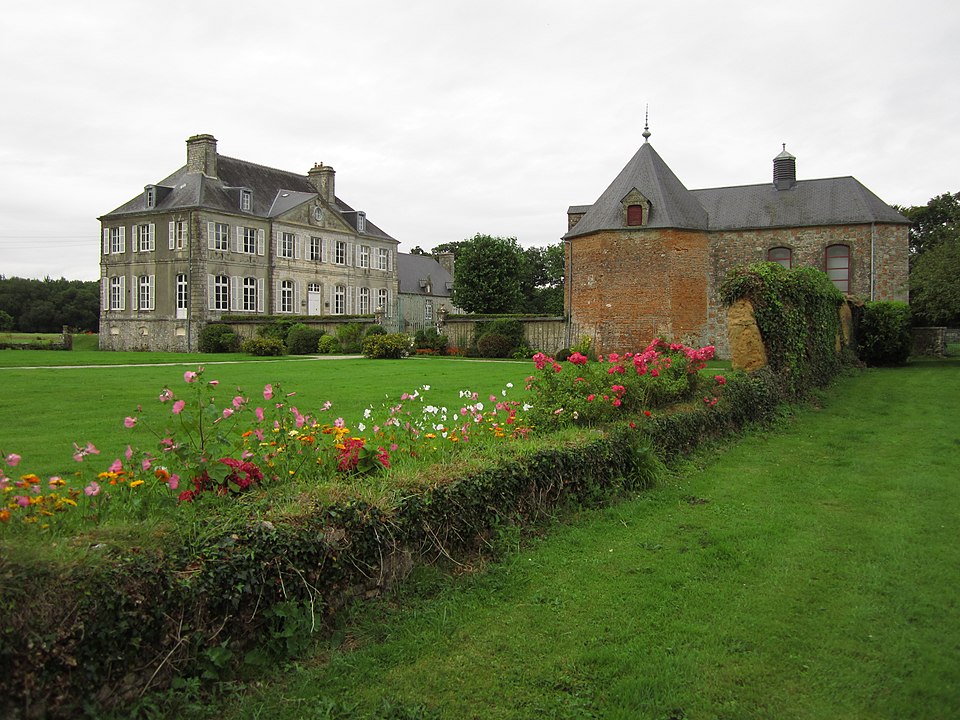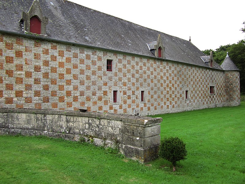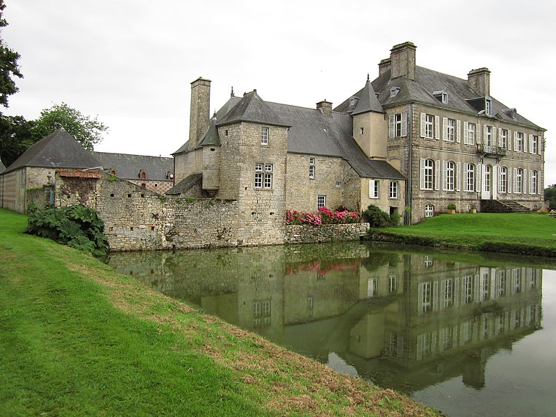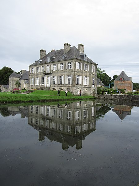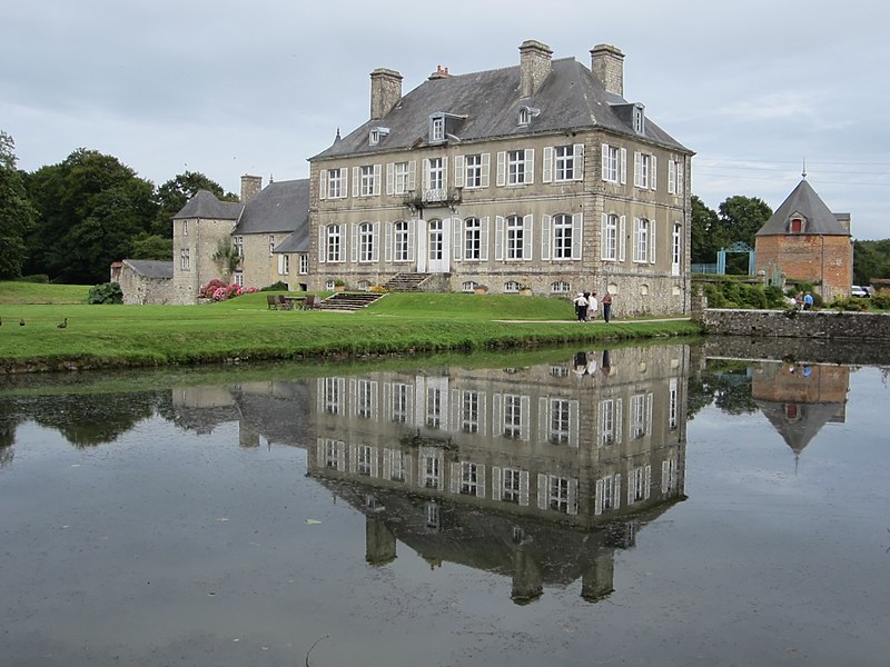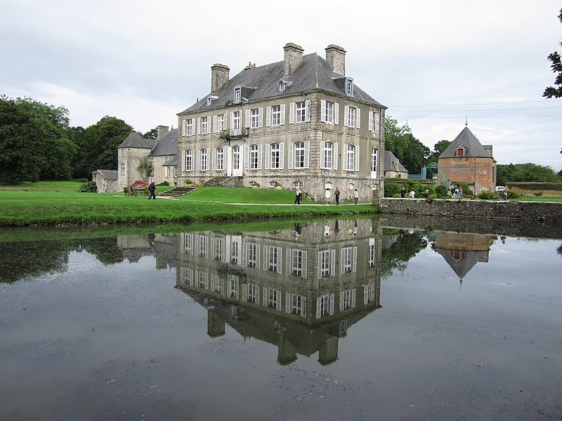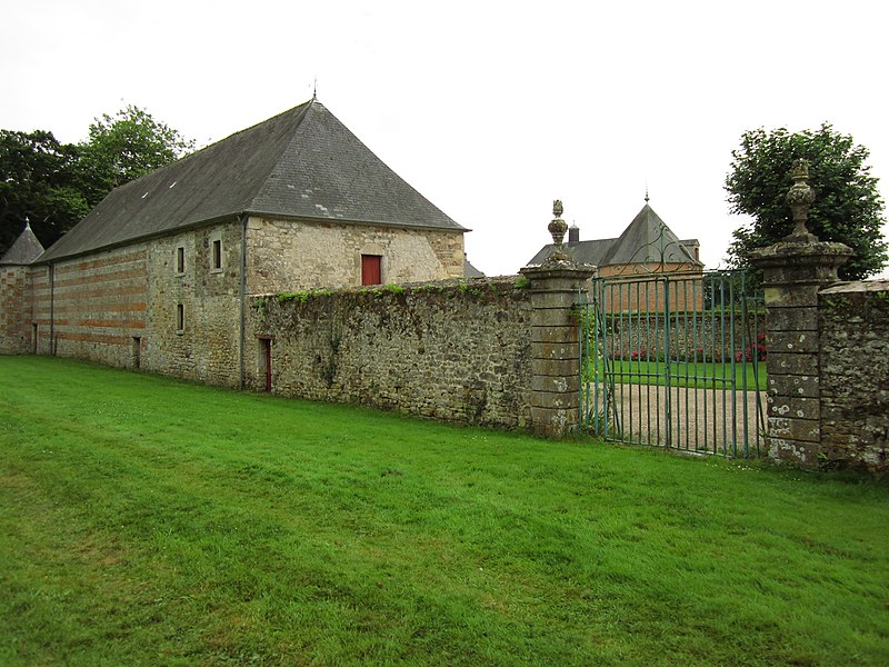 les façades et les toitures du logis, ainsi que, dans la partie du logis du XVIIIe siècle, l'escalier avec sa cage et les pièces de réception du rez-de-chaussée ; la chapelle en totalité ; le colombier en totalité ; le grand commun en totalité ; la cour d'honneur ; les façades et les toitures des deux pavillons de jardin et de la maison du jardinier ; l'ensemble des murs du domaine ; l'ensemble du système hydraulique ; l'assiette du jardin potager et du jardin d'agrément ; l'allée d'accès et les haies doubles talutées telles qu'elles figurent sur le plan annexé à l'arrêté (cad. C 95, lieudit Le Taillis, 96, lieudit La Croûte, 97, lieudit La Grande Bergerie, 98, lieudit L'Herbage du Bois, 202-203, lieudit Le Château, 204, lieudit L'Etang du Château, 206, lieudit Les Jardins, 207, lieudit Le Château, 222, lieudit La Longue Pièce, 225, lieudit Le Pré du Milieu de l'Aven, 226, lieudit L'Avenue, 227, lieudit Le Buisson de l'Avenue, 228, lieudit La Cour des Buissons, 388-389, lieudit Le Bois, 390, lieudit La Pépinière, 419-420, lieudit Le Grand Herbage du Château, 431, lieudit La Pièce du Moulin, 456, lieudit La Ferme du Château) : inscription par arrêté du 15 mars 2010