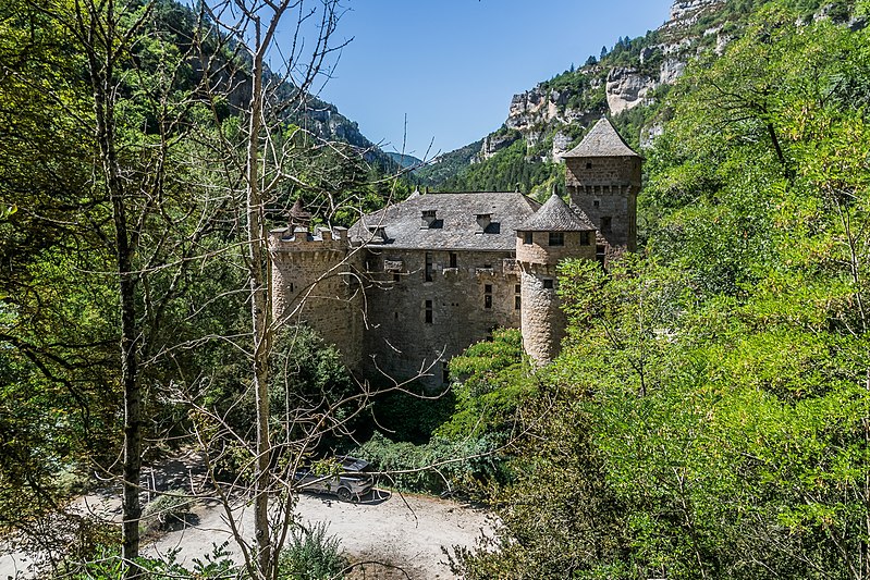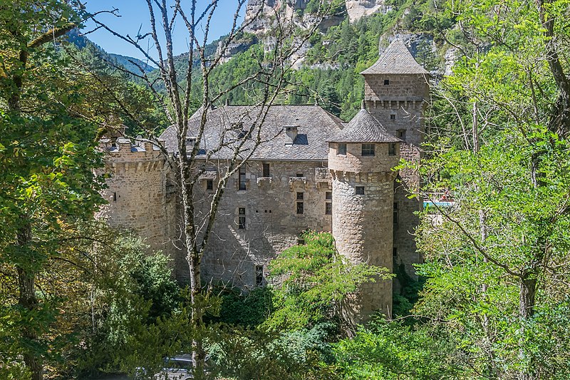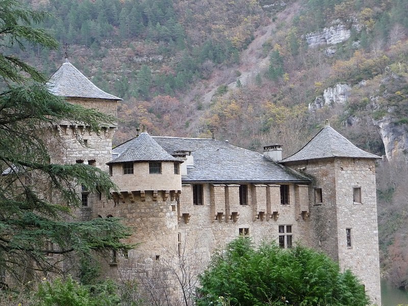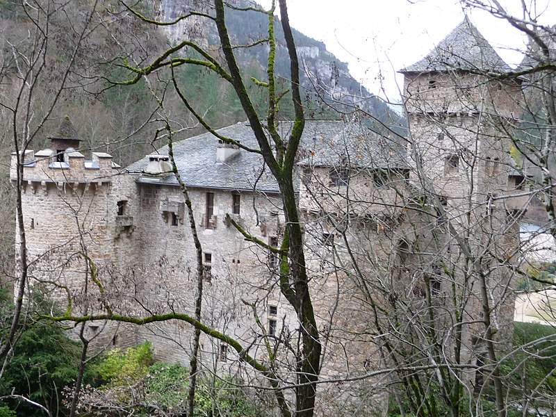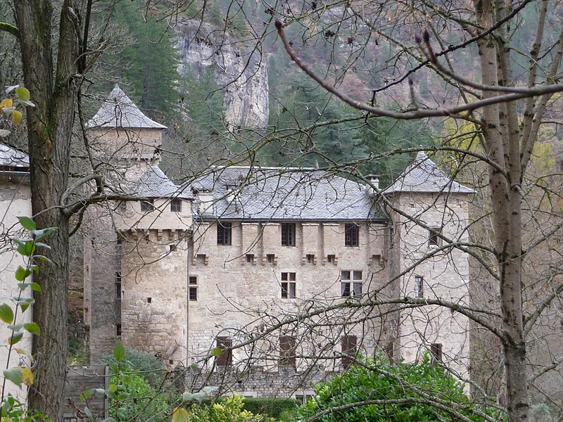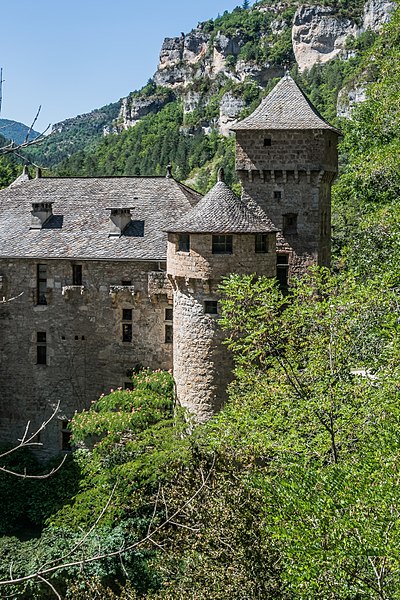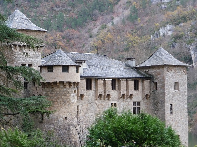 Le château de la Caze, de style Renaissance, se situe dans les gorges du Tarn en Lozère, sur la commune de Laval-du-Tarn, entre La Malène et Sainte-Enimie. Il présente un corps de logis sensiblement carré dont la façade sud est baignée par le Tarn et les autres côtés entourés d'un fossé. Les angles nord-est et nord-ouest sont cantonnés de tours circulaires entre lesquelles s'avance une tour carrée plus élevée. L'angle sud-ouest comprend une tour carrée incluse dans la façade, attribuée au XVIIe siècle, et le sud-est une tour en fer à cheval reliée à la façade sud par un pan coupé. Toutes les superstructures ont été restaurées ou refaites aux XIXe et XXe siècles, mais la construction d'origine est entièrement englobée dans l'édifice actuel. La tour sud-ouest conserve un cabinet peint, dit "des nymphes du Tarn", dont le plafond daté de 1637 et signé Prunier est divisé en huit panneaux comportant chacun le portrait d'une femme en médaillon ; ce décor constitue un jalon important pour l'étude des motifs ornementaux de tradition maniériste. L'édifice prend sa source au XVe siècle comme petite maison forte voulue par Soubeyrane Alamand et Guillaume de Montclar ; l'oncle de Soubeyrane, François Alamand, prieur du monastère de Sainte-Énimie et prévôt de la cathédrale de Mende, finança une grande partie de la construction. Aux XVIe et XVIIe siècles, l'édifice a été agrandi et aménagé : on attribue au XVIe siècle l'agrandissement vers le nord et la création de l'escalier principal, et au XVIIe siècle l'ouverture de baies à croisée et à traverse ainsi que la réalisation du plafond peint de la chambre des nymphes. Ces travaux ont vraisemblablement été conduits pour la famille de Maillan, riches marchands anoblis de La Canourgue, qui constitua à partir du XVIe siècle un vaste domaine agricole sur le causse de Sauveterre autour des châteaux de La Caze et de Grandlac. Les parties hautes de l'élévation ouest, notamment les mâchicoulis, ainsi que certaines tours, ont été reconstruites au XIXe siècle, et la galerie sud-est est une adjonction du même siècle. La belle porte d'entrée de la tour principale provient du château de Saint-Saturnin ; les armoiries sculptées au‑dessus du linteau seraient celles des Frayssinet, propriétaires de Saint-Saturnin au milieu du XVIIe siècle. Durant la Révolution française, le château a servi de prison. Il a ensuite été transformé en hôtel de luxe (4 étoiles). En 1988, le château de la Caze a été inscrit au titre des monuments historiques.