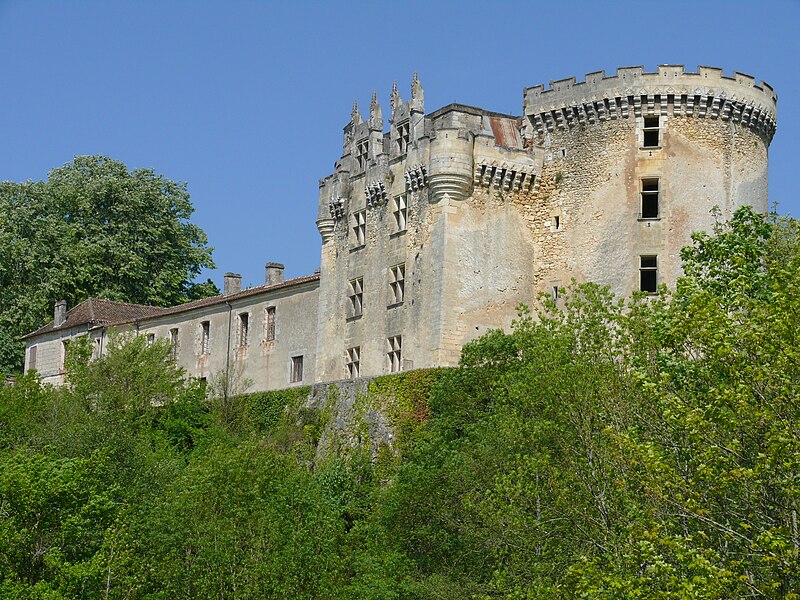 Le château, le châtelet, les dépendances, les terrasses, le pigeonnier (cad. A 1365, 1366, 1350) : inscription par arrêté du 13 février 2001 - Le corps de logis ancien et les deux tours rondes qui lui sont accolées (cad. A 1366) : classement par arrêté du 29 mai 2001