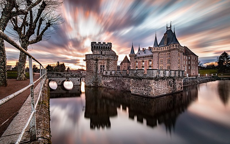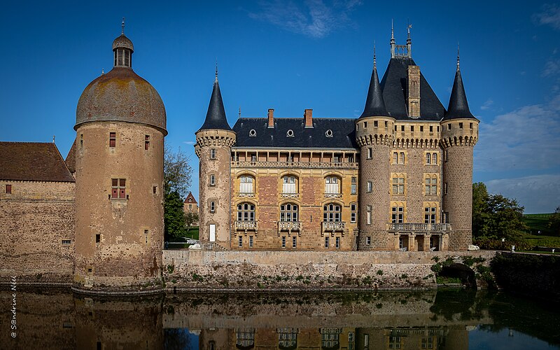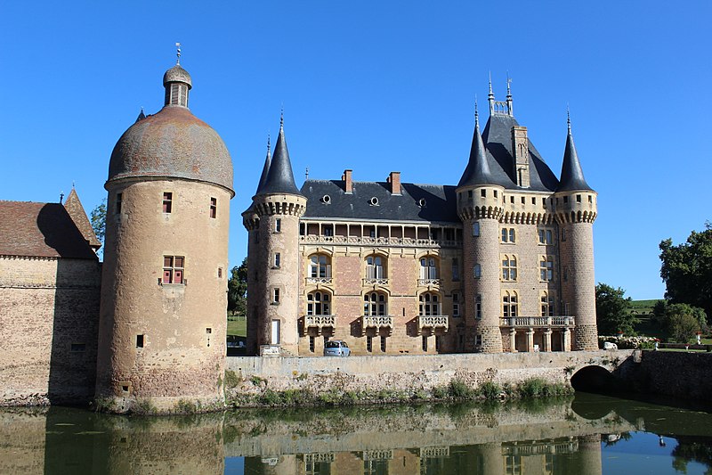 Le Château de La Clayette est un château fort situé sur la commune de La Clayette, en Brionnais (Saône‑et‑Loire, Bourgogne‑Franche‑Comté). Originellement lié à un péage, la maison forte a été transformée en château vers 1830, avec des travaux importants en 1871 puis entre 1903 et 1906. Le monument occupe une plate‑forme rectangulaire irrégulière entourée d'eau, ses douves étant reliées à un étang de 30 hectares. L'ensemble comprend des dépendances à l'ouest, deux bâtiments parallèles dotés chacun d'une tourelle en surplomb, et un château en L avec une grosse tour carrée d'angle, des tourelles sur l'aile sud et un ancien donjon intégré à l'aile est. La tour carrée au centre du bâtiment nord est adossée à une tourelle d'escalier, tandis que l'aile sud est flanquée de la tour ronde dite de Paray, équipée d'une tourelle d'escalier circulaire. La partie orientale, la plus récente, se compose d'un corps de logis rectangulaire accolé à une grosse tour carrée ; au sud, le chemin de ronde a été transformé en galerie. En retour d'équerre subsistent des bâtiments du XVIIIe siècle, dont un corps de logis et un pavillon alignés ; dans le parc se trouvent une orangerie du XVIIIe siècle et une tour isolée. À l'est, une chaussée longe les façades et relie le château à une porte fortifiée formée d'une tour carrée percée d'une porte charretière. La chapelle du rez‑de‑chaussée, dédiée à saint Jean l'Évangéliste et à saint Étienne, conserve des peintures murales du XVe siècle représentant un concert d'anges musiciens et divers instruments. Au titre des monuments historiques, la porte d'entrée, les poternes, les façades et les toitures ont été classées en 1946, la chapelle classée en 1950 et le reste du château inscrit en 2002. Du XIVe siècle à la Révolution, le site fut le centre d'une des seigneuries les plus importantes de la région et a connu de nombreuses transformations et transmissions de propriété. Jean de Lespinasse y fit édifier une maison forte près de l'étang et du moulin attenant; Philibert de Lespinasse le transforma ensuite en château cantonné de grosses tours rondes; le domaine passa ensuite aux familles de Chantemerle, de Damas et des Palatin de Dyo avant d'être acheté en 1722 par Bernard de Noblet. La baronnie fut érigée en comté en 1730 et des aménagements aux XVIIIe et XIXe siècles ont ajouté des bâtiments, une orangerie, une tour de guet et un pont‑levis de style néo‑gothique. Depuis 1722, le château appartient à la famille de Noblet d'Anglure, dont plusieurs membres se sont succédé à la tête de la propriété. Le parc accueille depuis 2019 le festival Saint Rock chaque juillet ; il est possible de visiter les extérieurs et les dépendances en visite guidée avec l'Office de Tourisme du Sud Brionnais. Le site a également accueilli des manifestations ponctuelles, parmi lesquelles un spectacle son et lumière, un concours hippique et une campagne touristique en 2021. Les visiteurs peuvent découvrir la cour d'honneur, les écuries, l'orangerie, les cuisines médiévales, la tour de Paray, les façades et la fresque de la chapelle.