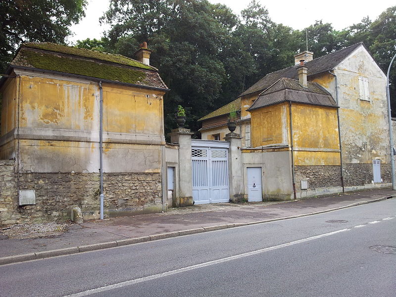 Le domaine apparaît avec le pavillon d'entrée et le ruisseau.