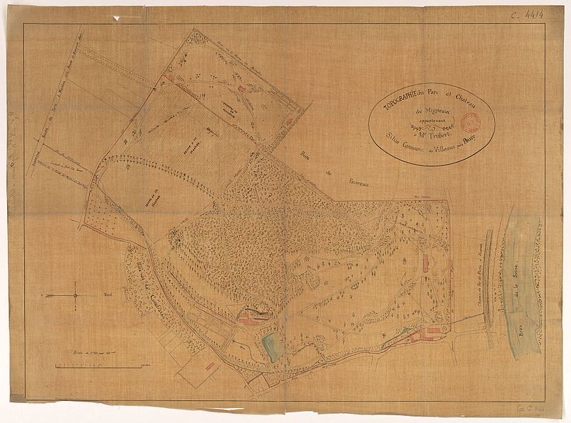 Le domaine des Migneaux apparaît, dans sa configuration actuelle, sur un plan terrier de 1787, qui montre notamment le pavillon d'entrée et le ru traversant le fond du vallon. Le logis actuel a été édifié en 1898 par l'architecte Pierre‑Antoine Lucien Tropey‑Bailly. Le parc, qui s'étend de part et d'autre du ruisseau, est aménagé en fonction des cônes de vue depuis la demeure et depuis certains points du parc vers la maison. Les espèces végétales choisies visent à offrir des perspectives sur divers sujets disposés sur de grandes pelouses.